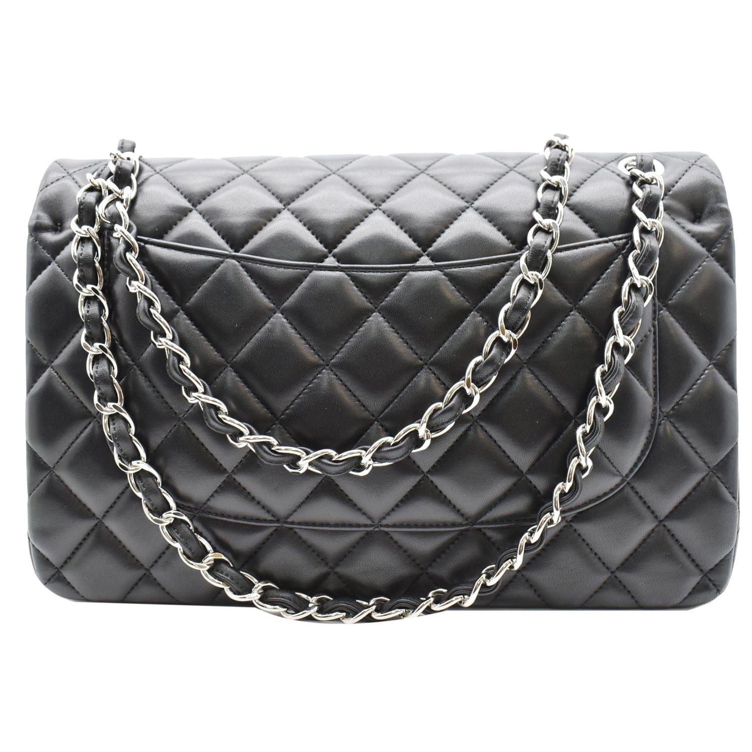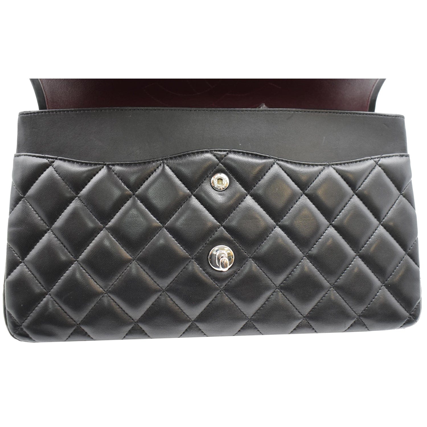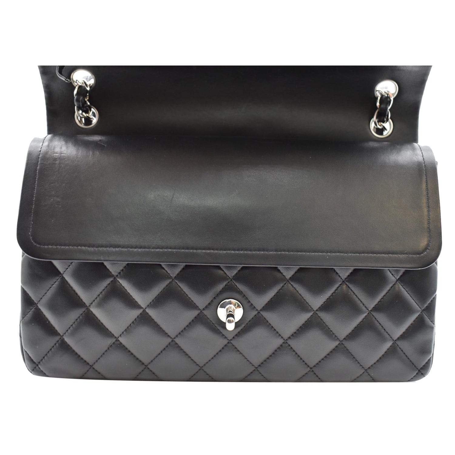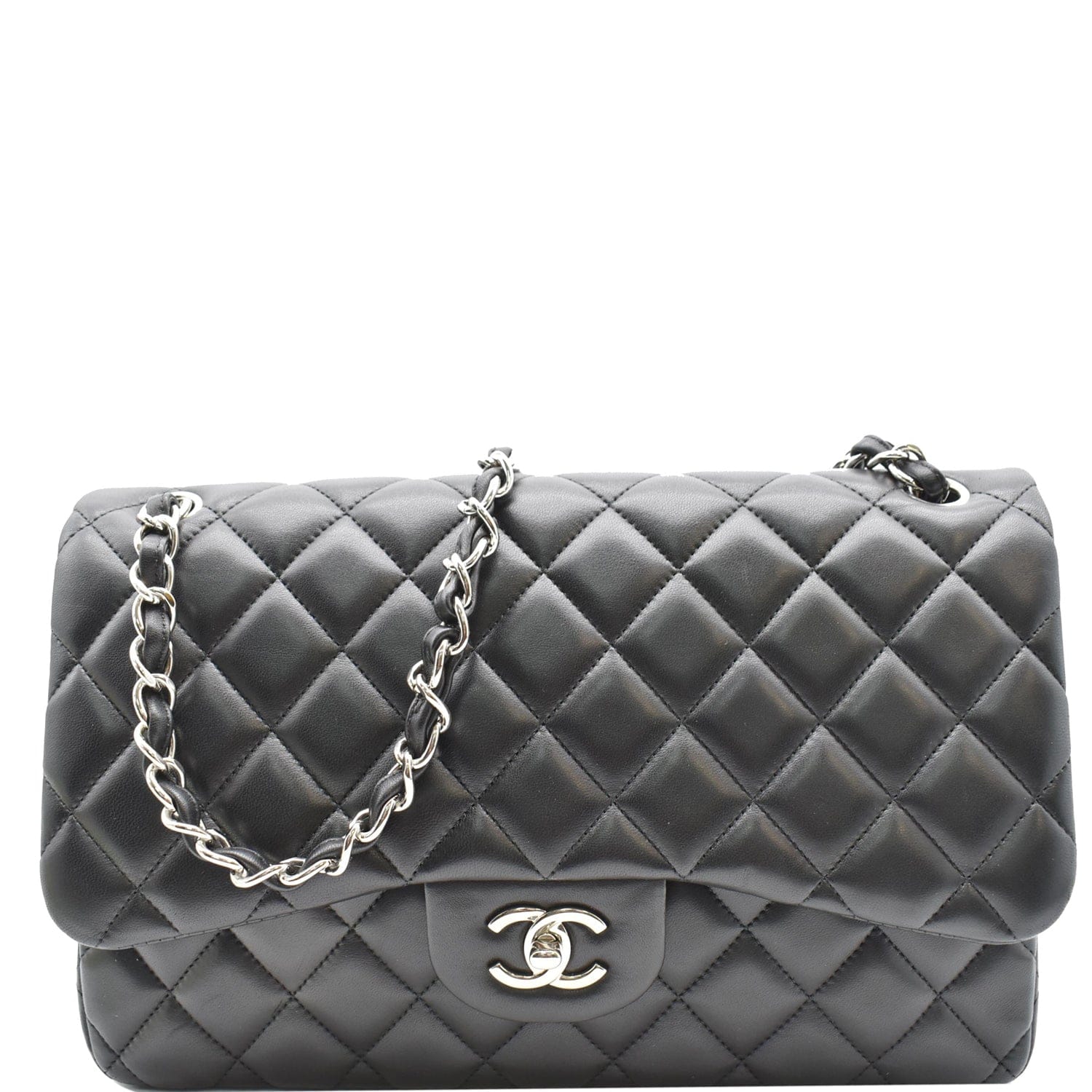 Classic Jumbo Double Flap Lambskin Leather Shoulder Bag Black