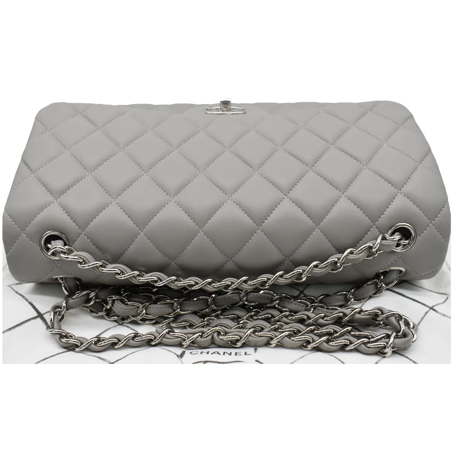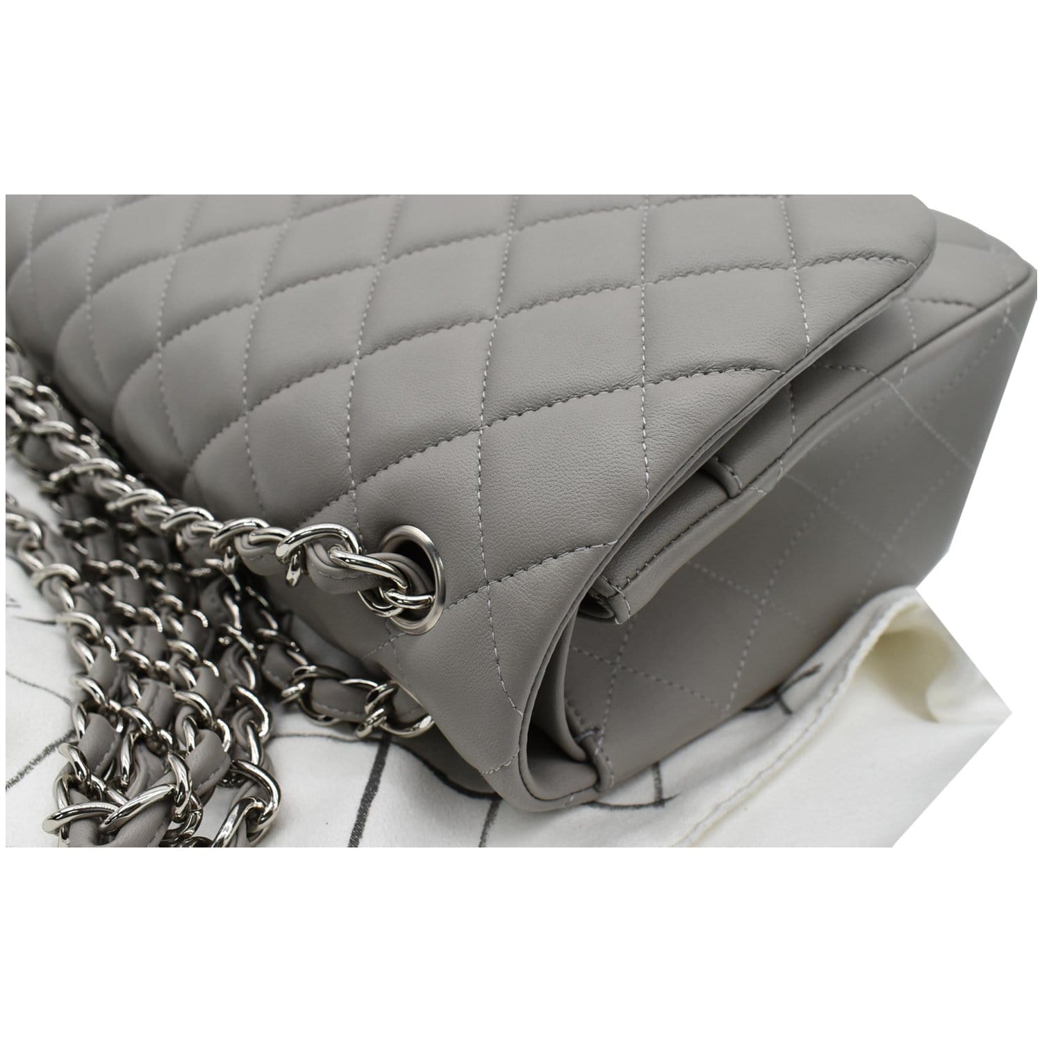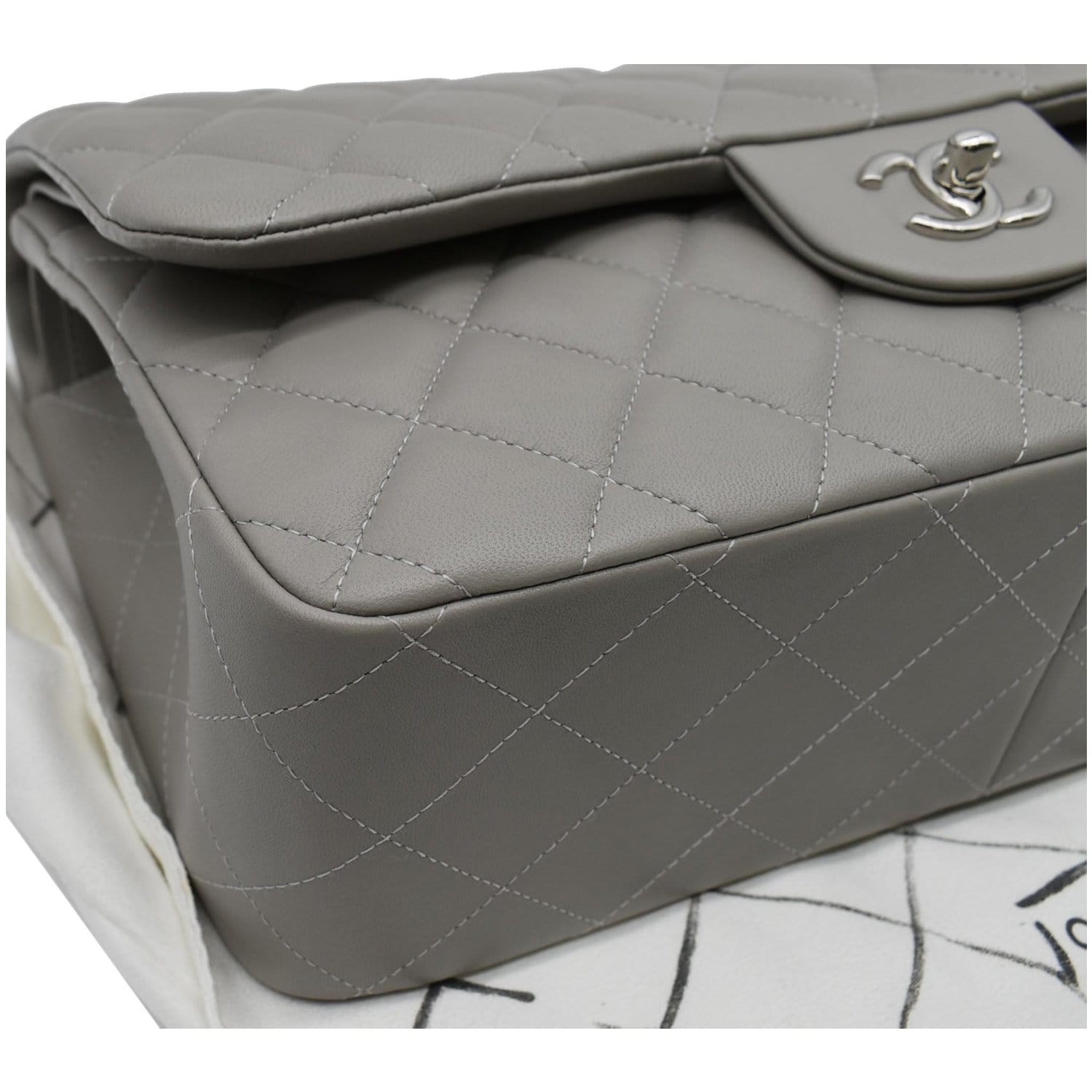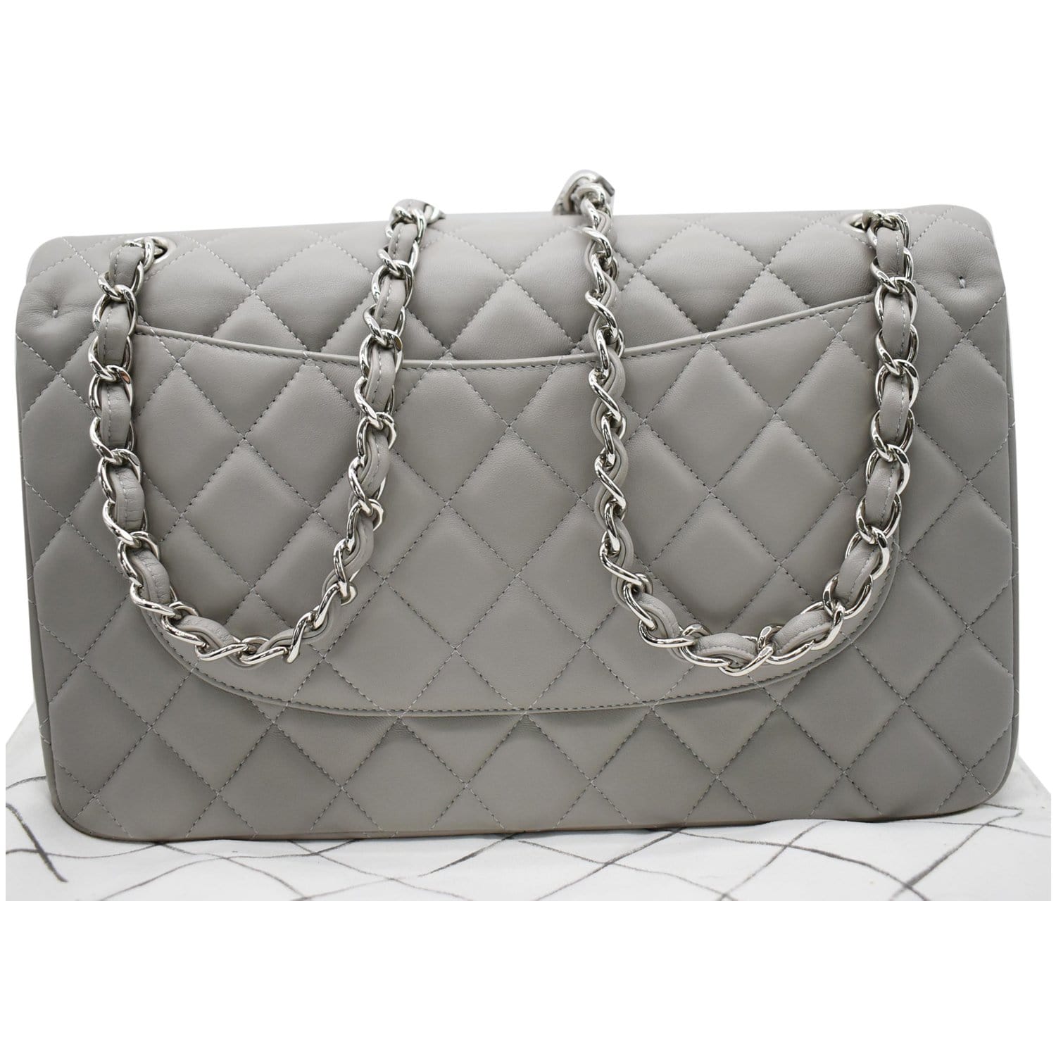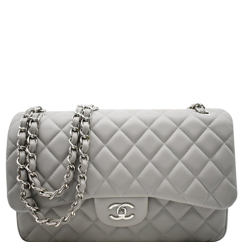 Classic Jumbo Double Flap Lambskin Leather Shoulder Bag Grey