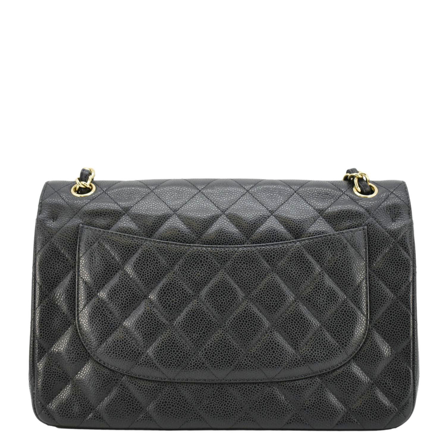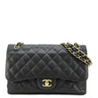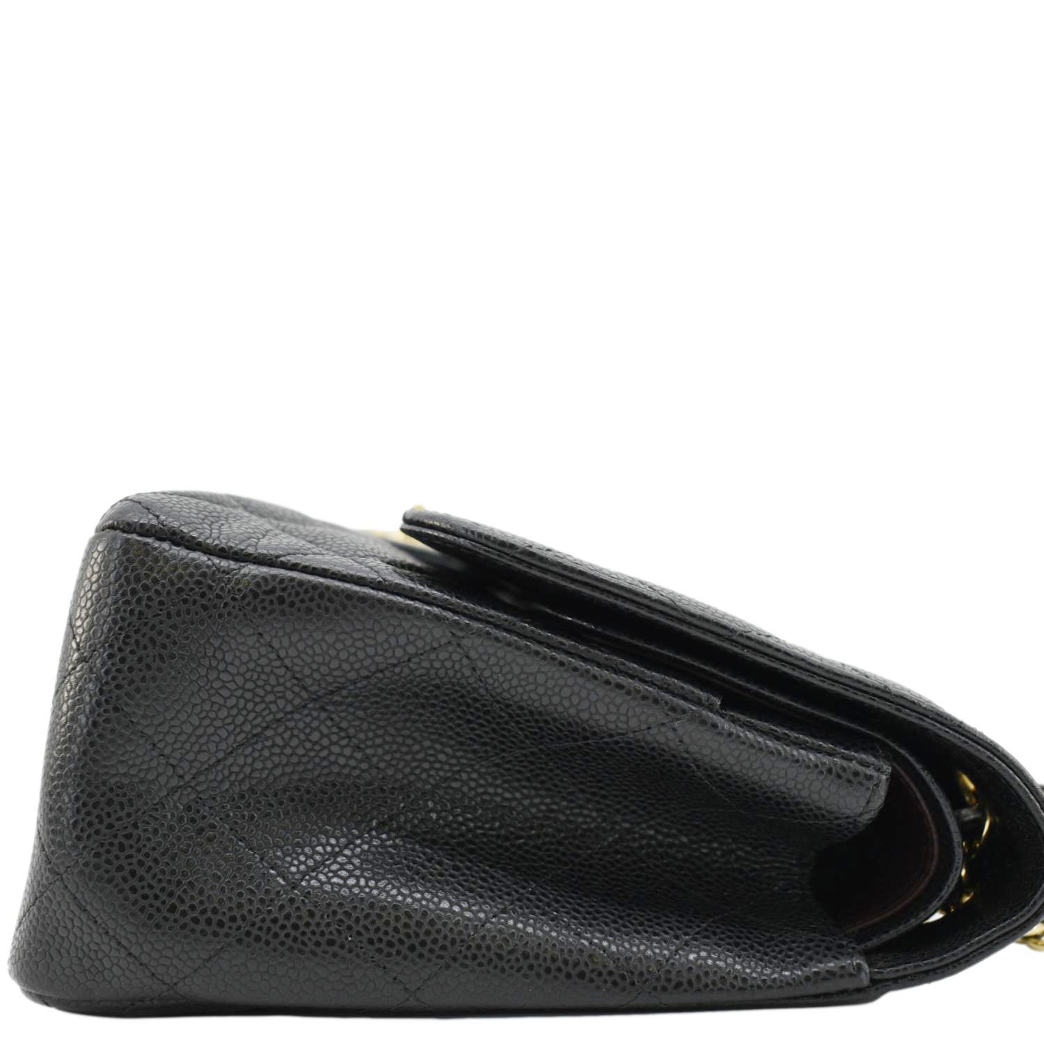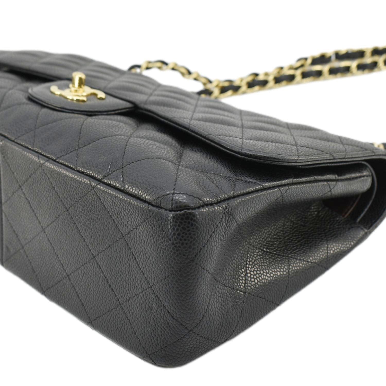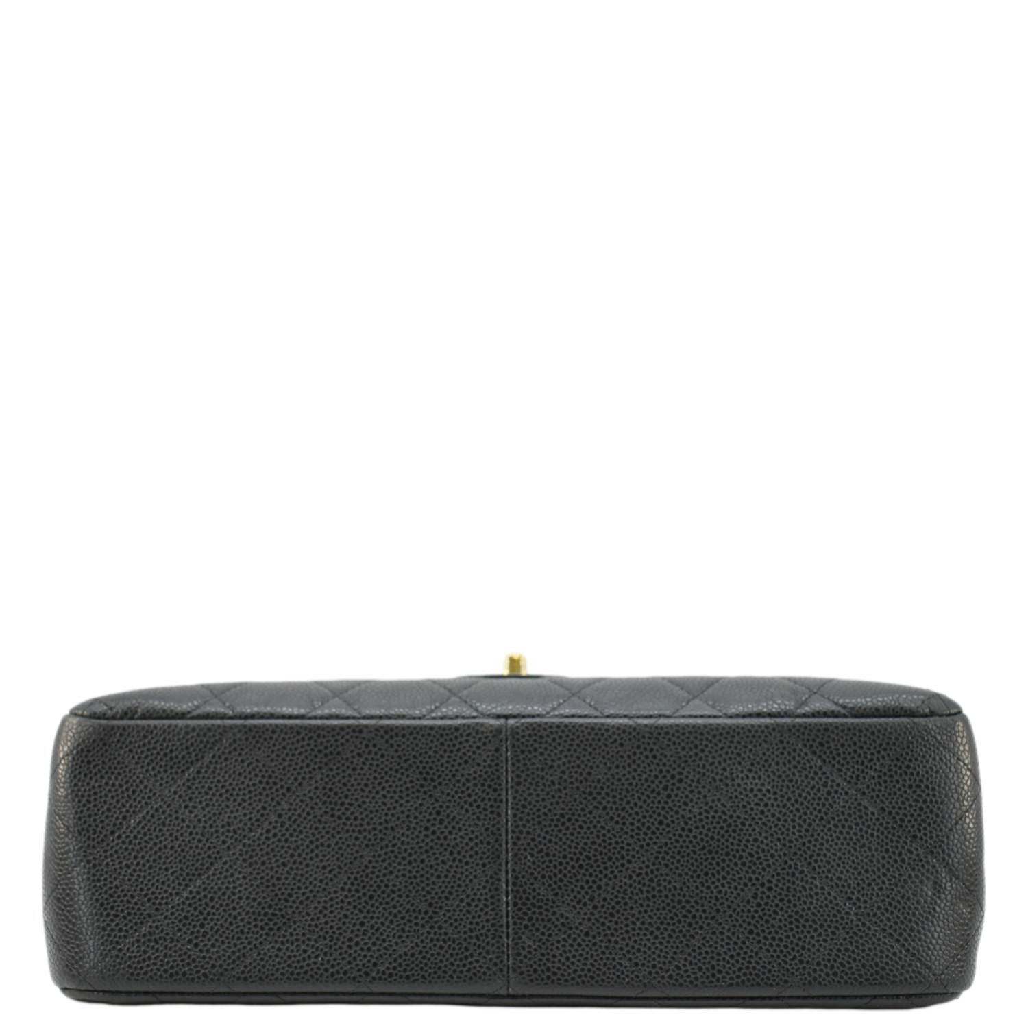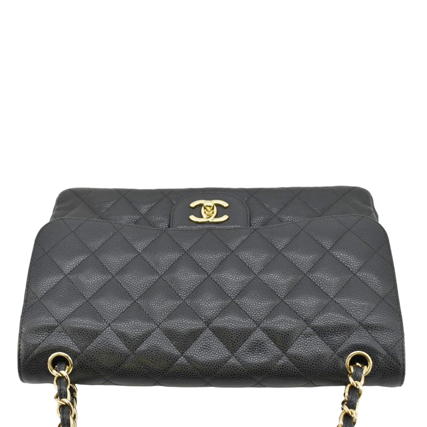 CHANEL Classic Jumbo Double Flap Quilted Caviar Leather Shoulder Bag Black