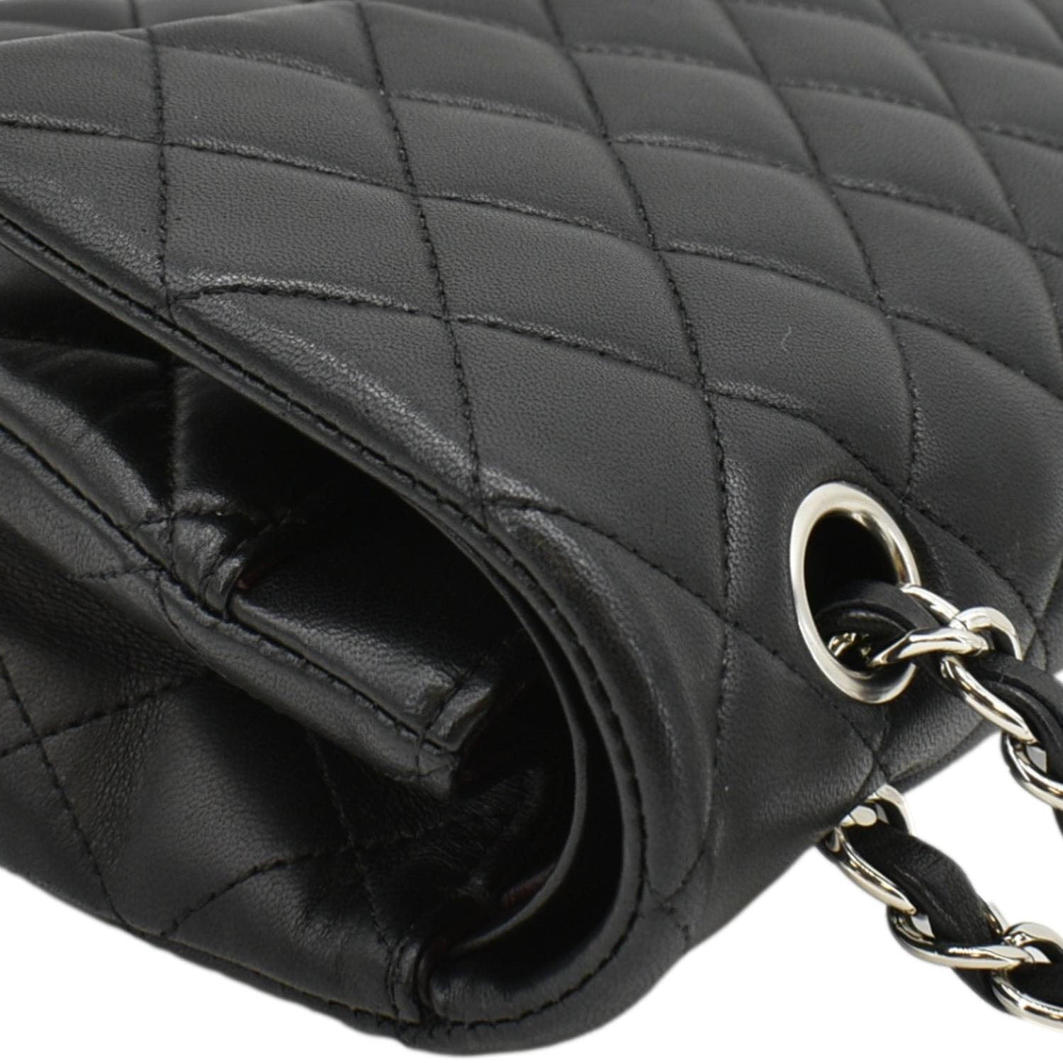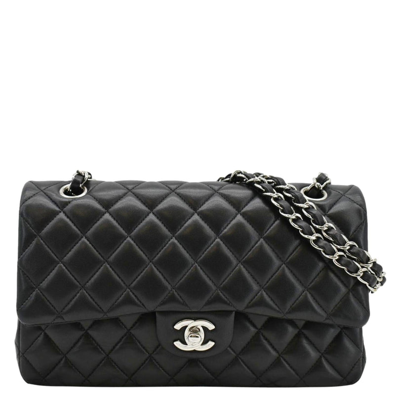 CHANEL Classic Medium Double Flap Quilted Leather Shoulder Bag Black