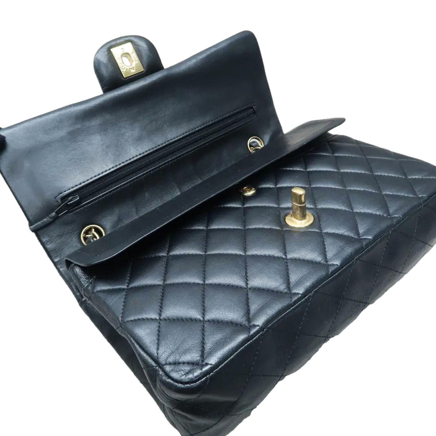 CHANEL Classic Medium Double Flap Quilted Leather Shoulder Bag Black