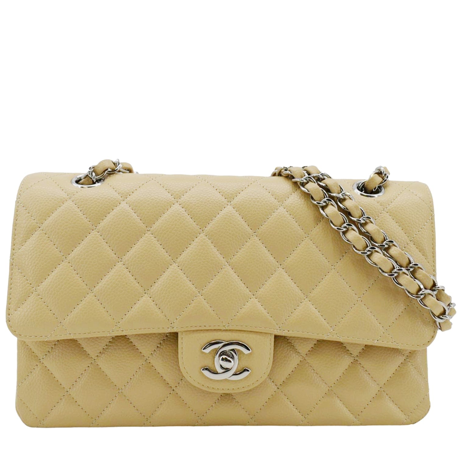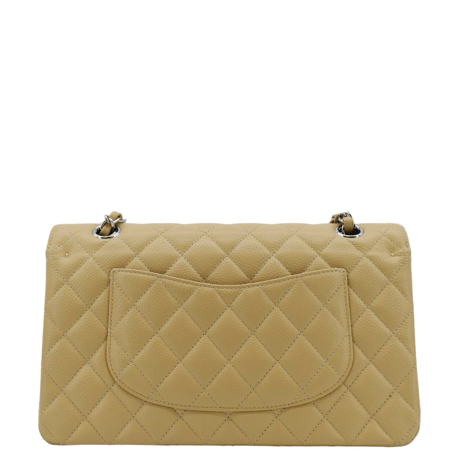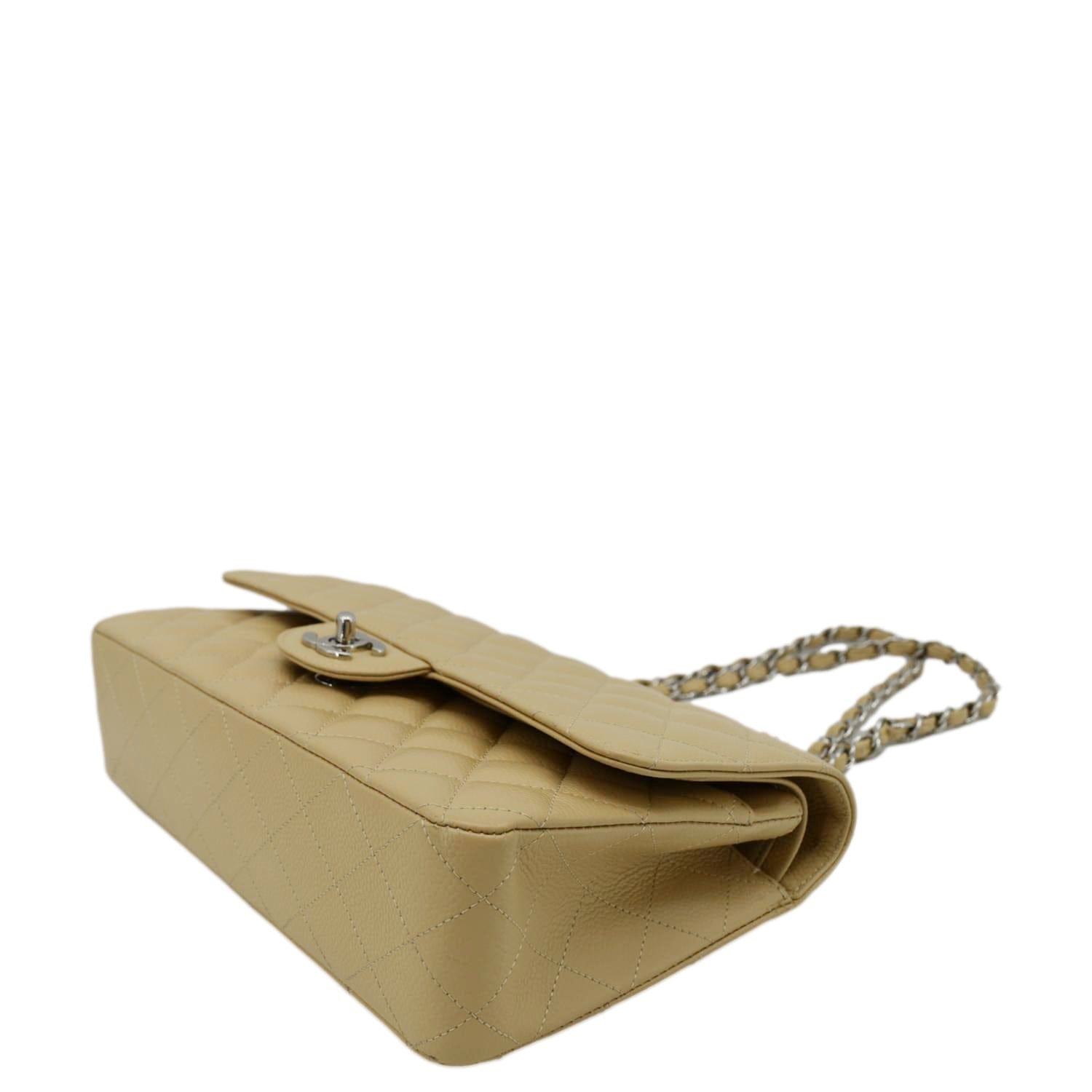 CHANEL Classic Double Flap Medium Quilted Caviar Leather Shoulder Bag Beige