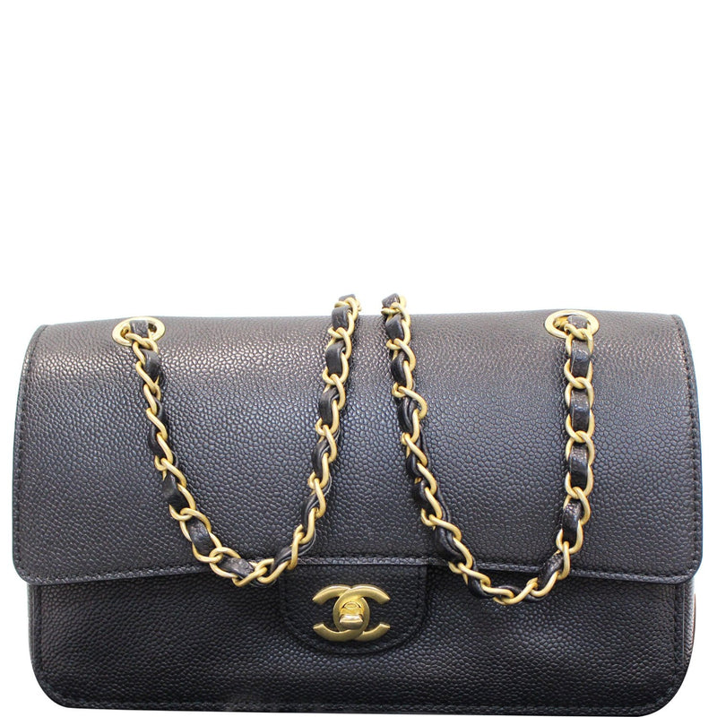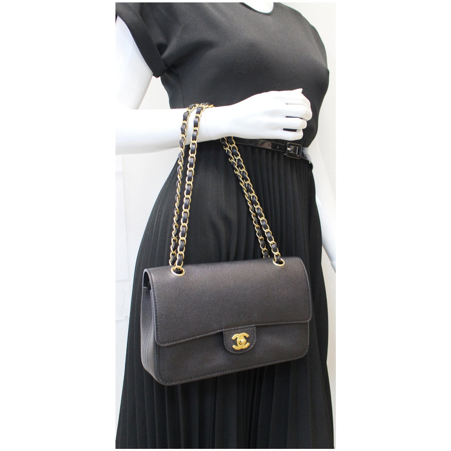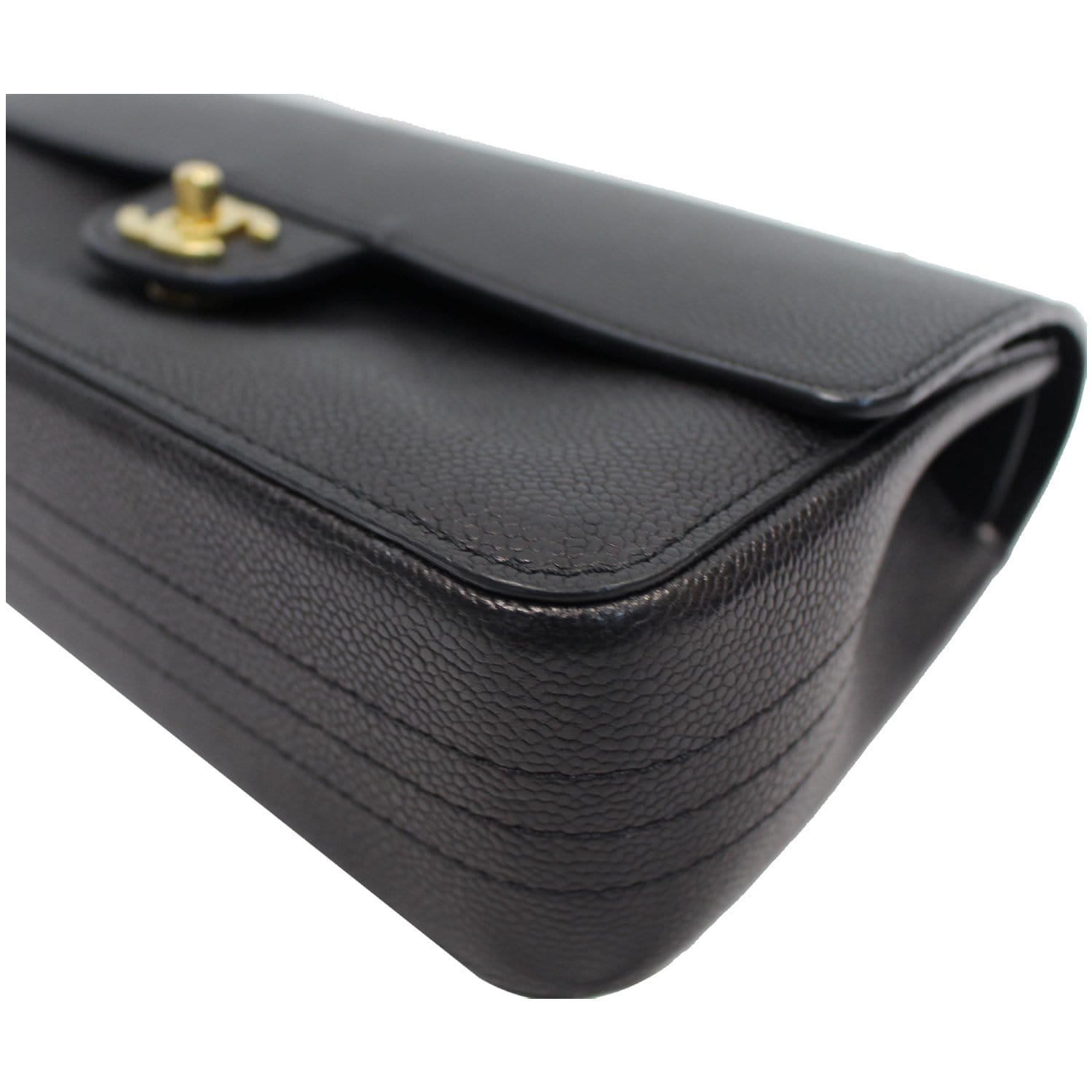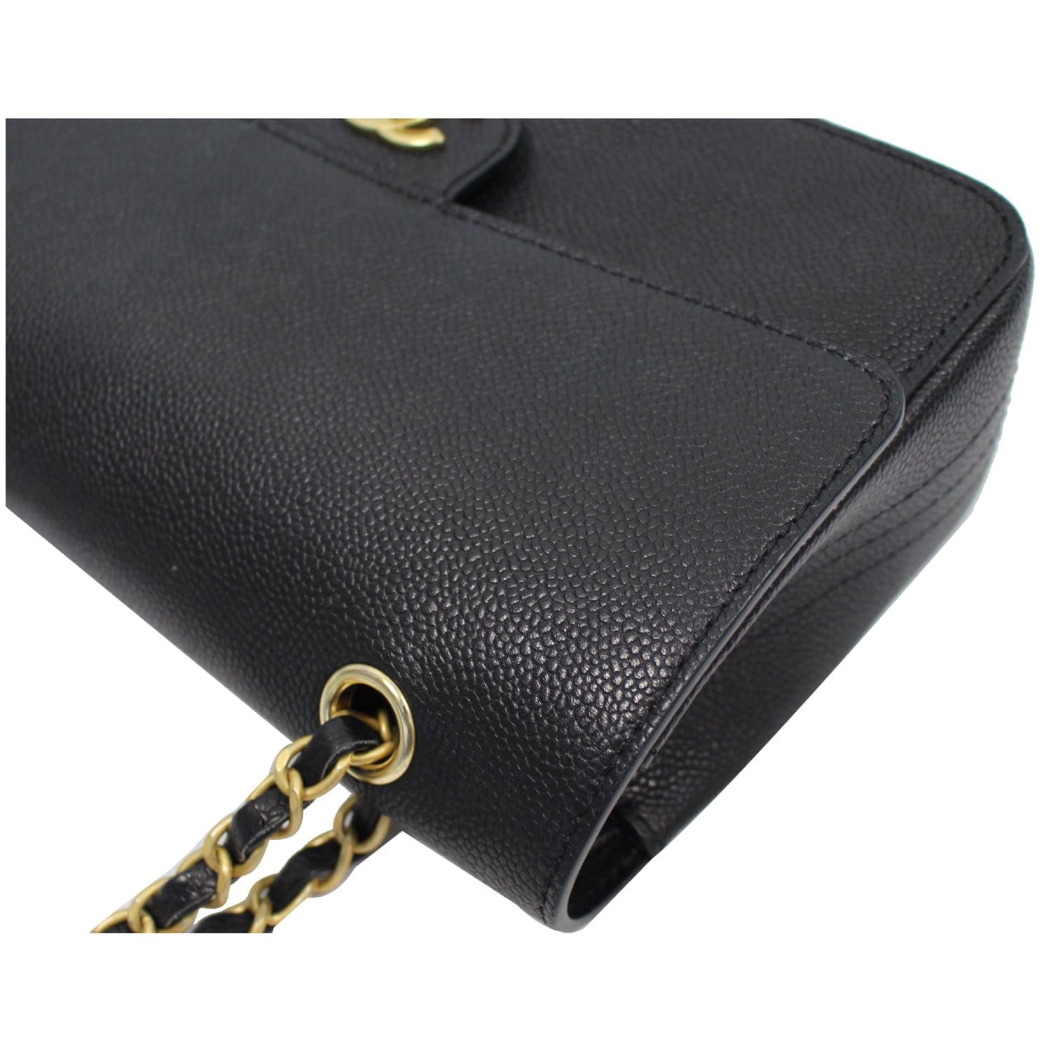 CHANEL Classic Pure Caviar Medium Double Flap Leather Shoulder Bag Black
