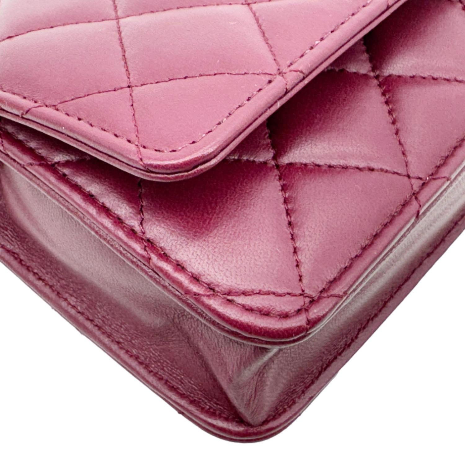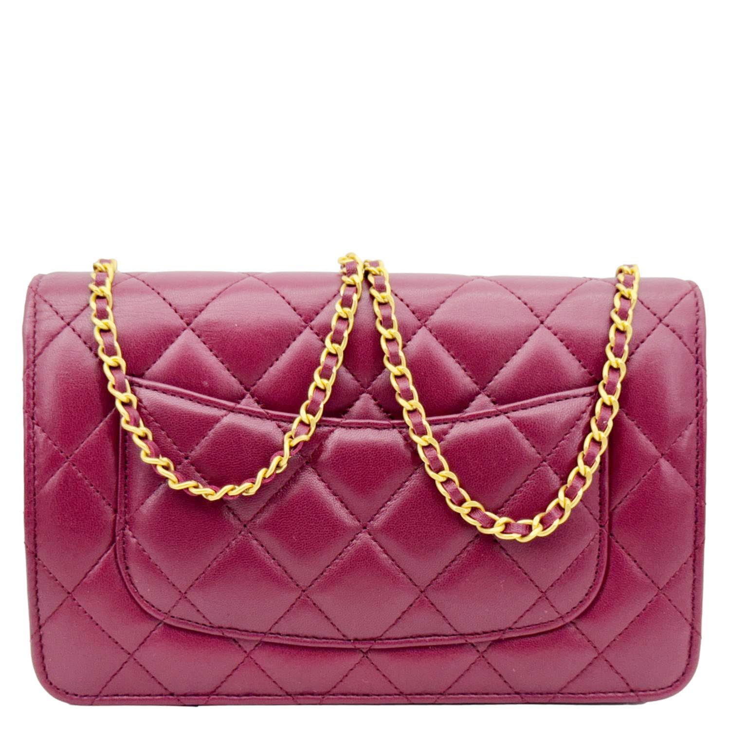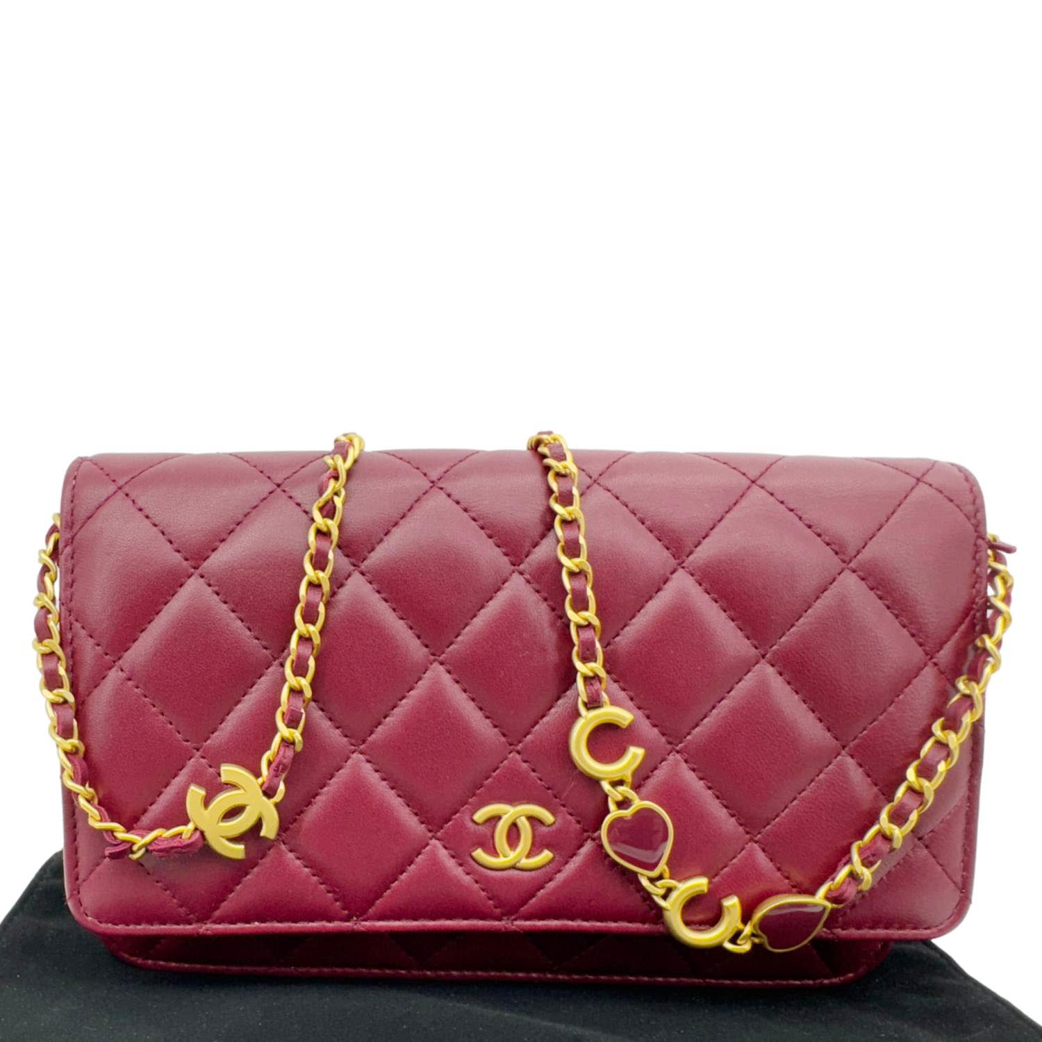 CHANEL Coco Hearts Quilted Leather Wallet On Chain WOC Burgundy