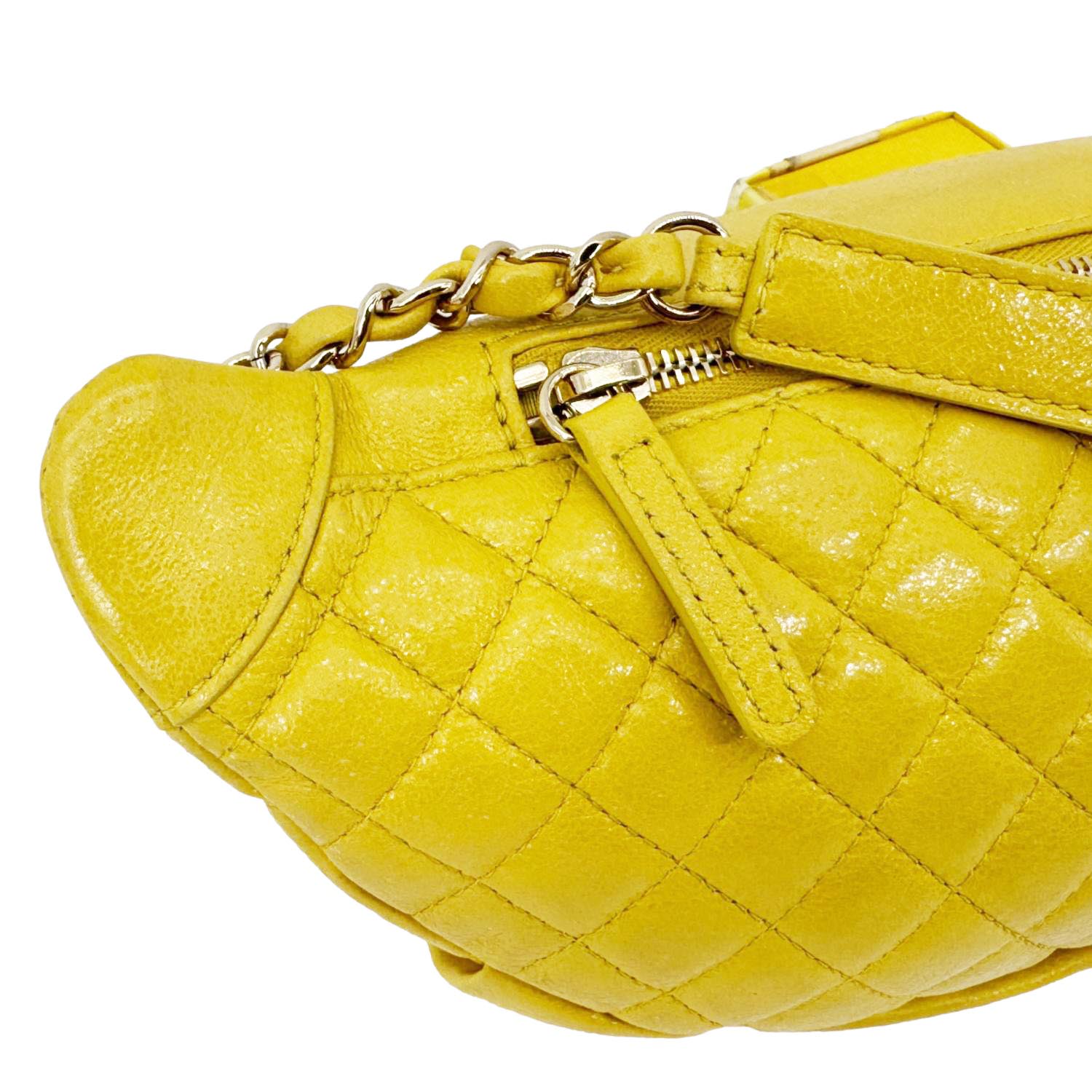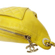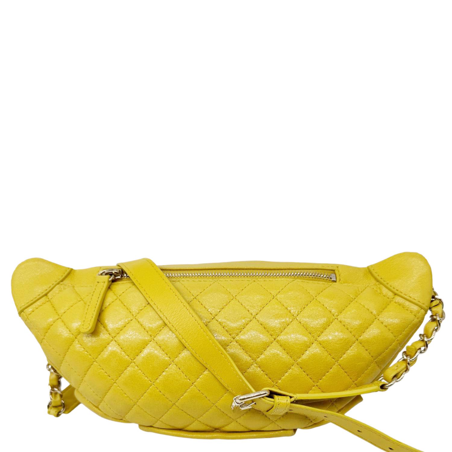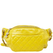 The CHANEL Crumpled Glazed Lambskin Waist Bag in Yellow showcases a vibrant, fashion-forward design with signature quilted leather and a crumpled, glossy finish. Featuring the iconic CC logo and an adjustable belt strap, it's a bold, hands-free statement piece.