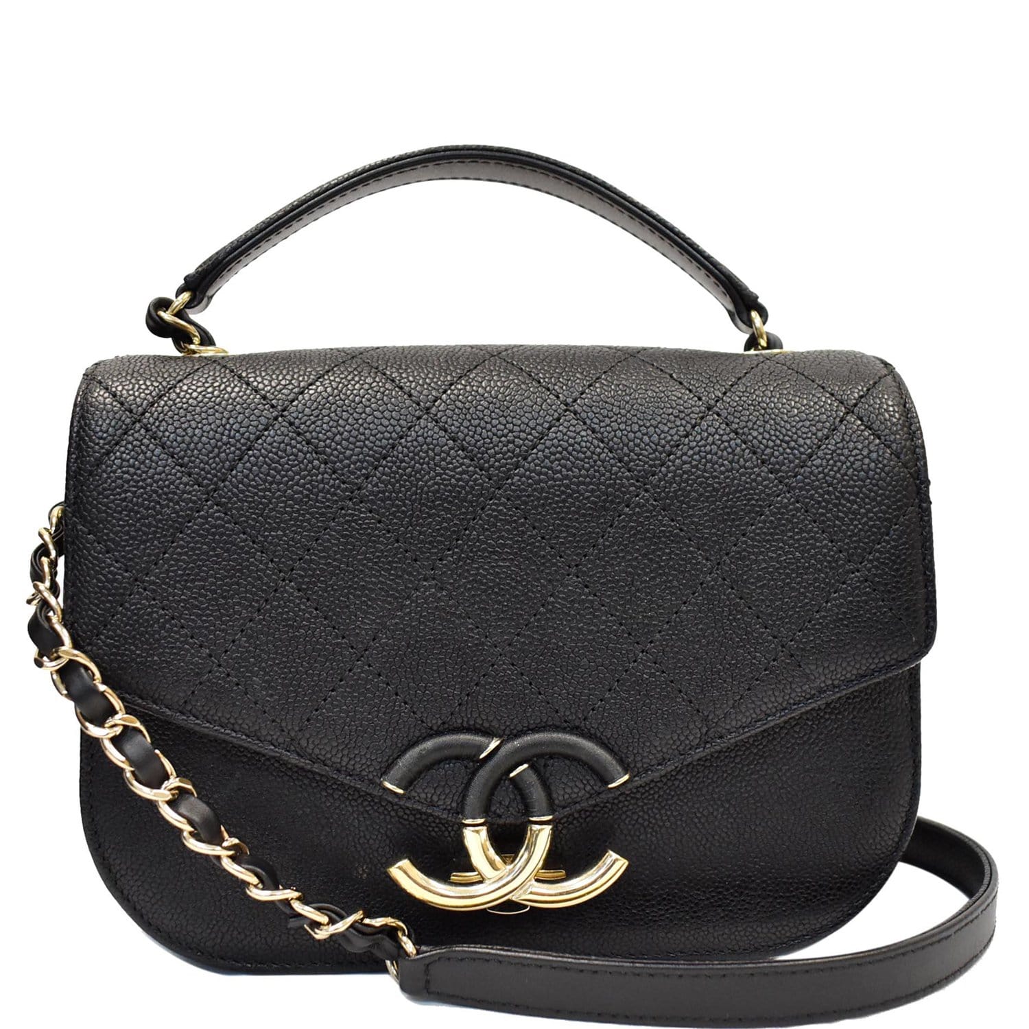 Coco Cuba Quilted Grained Calfskin Leather Top Handle Bag Black
