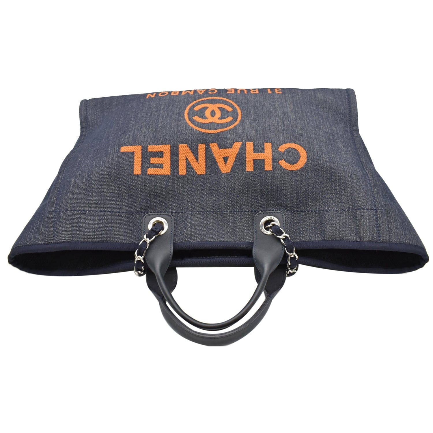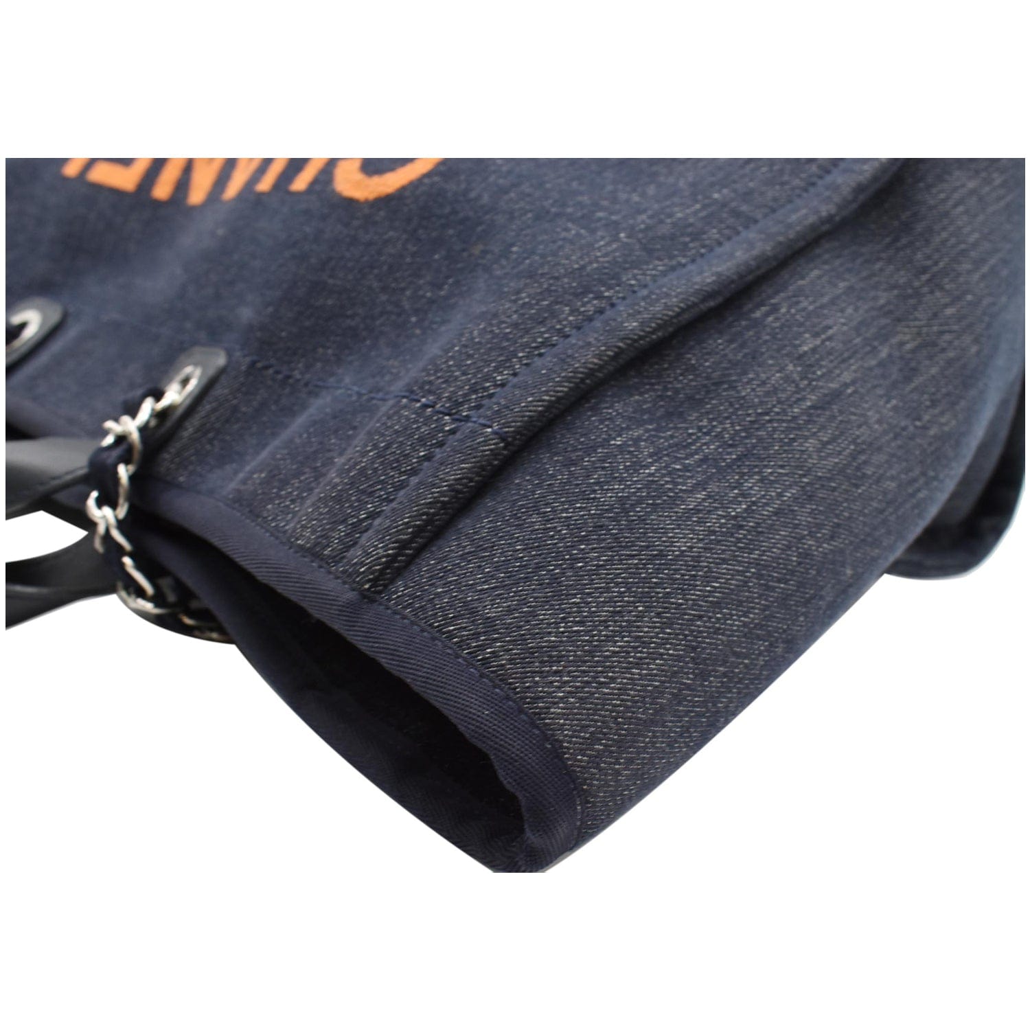 Chanel Deauville Large Denim Shopping Tote Bag Dark Blue