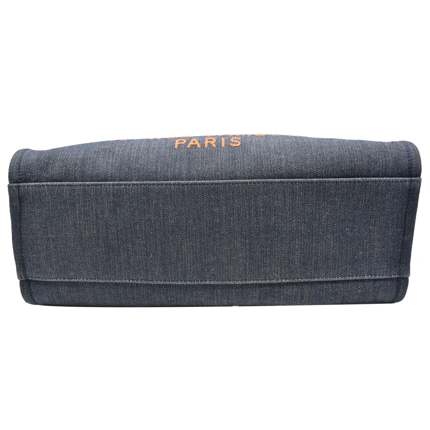 Deauville Large Denim Shopping Tote Bag Dark Blue