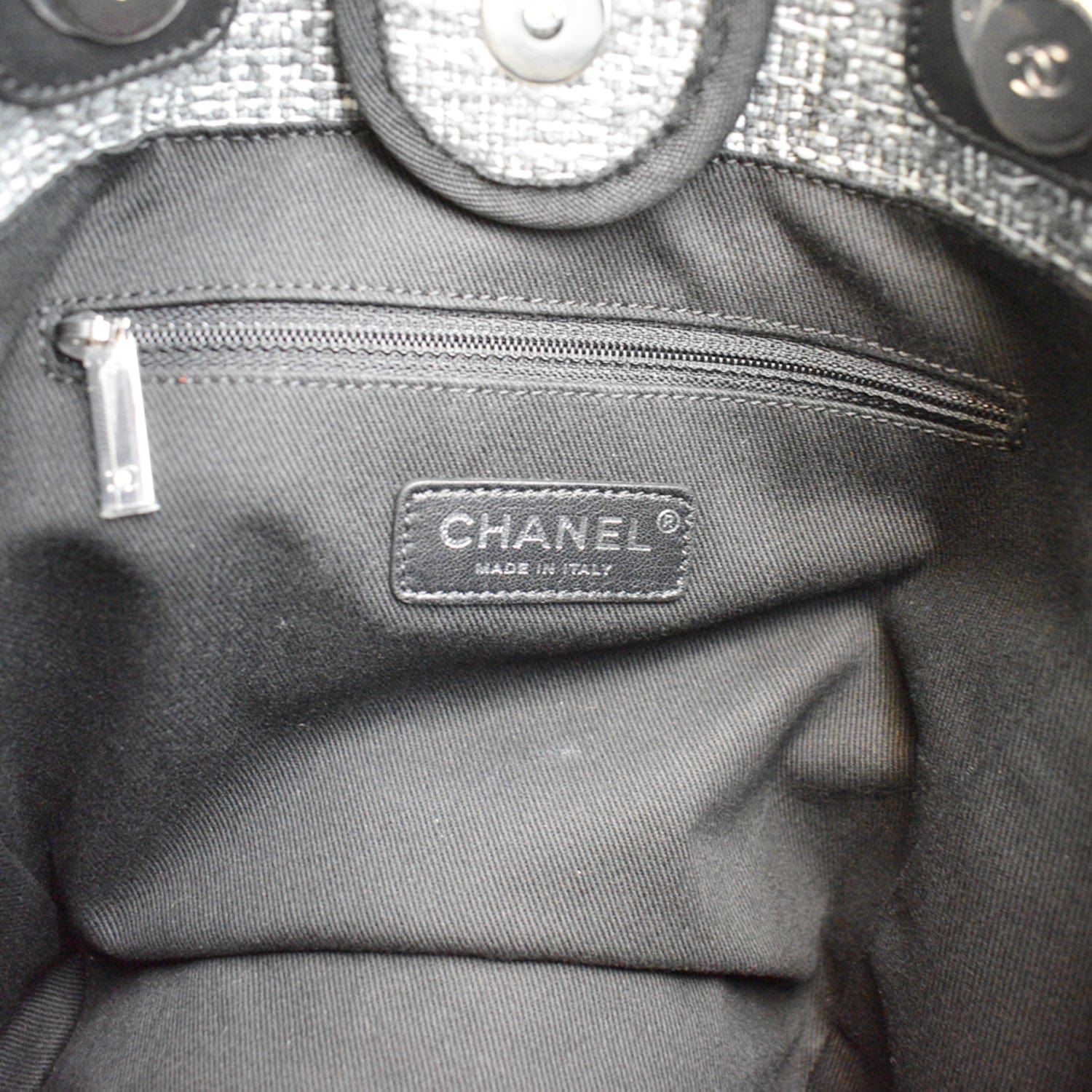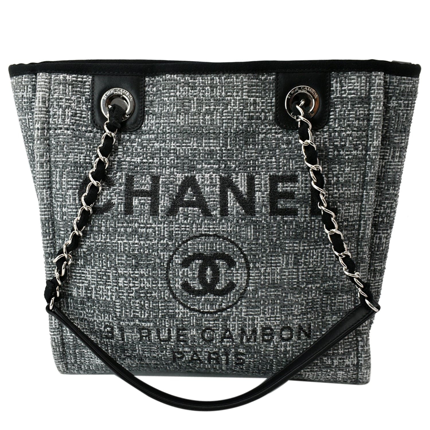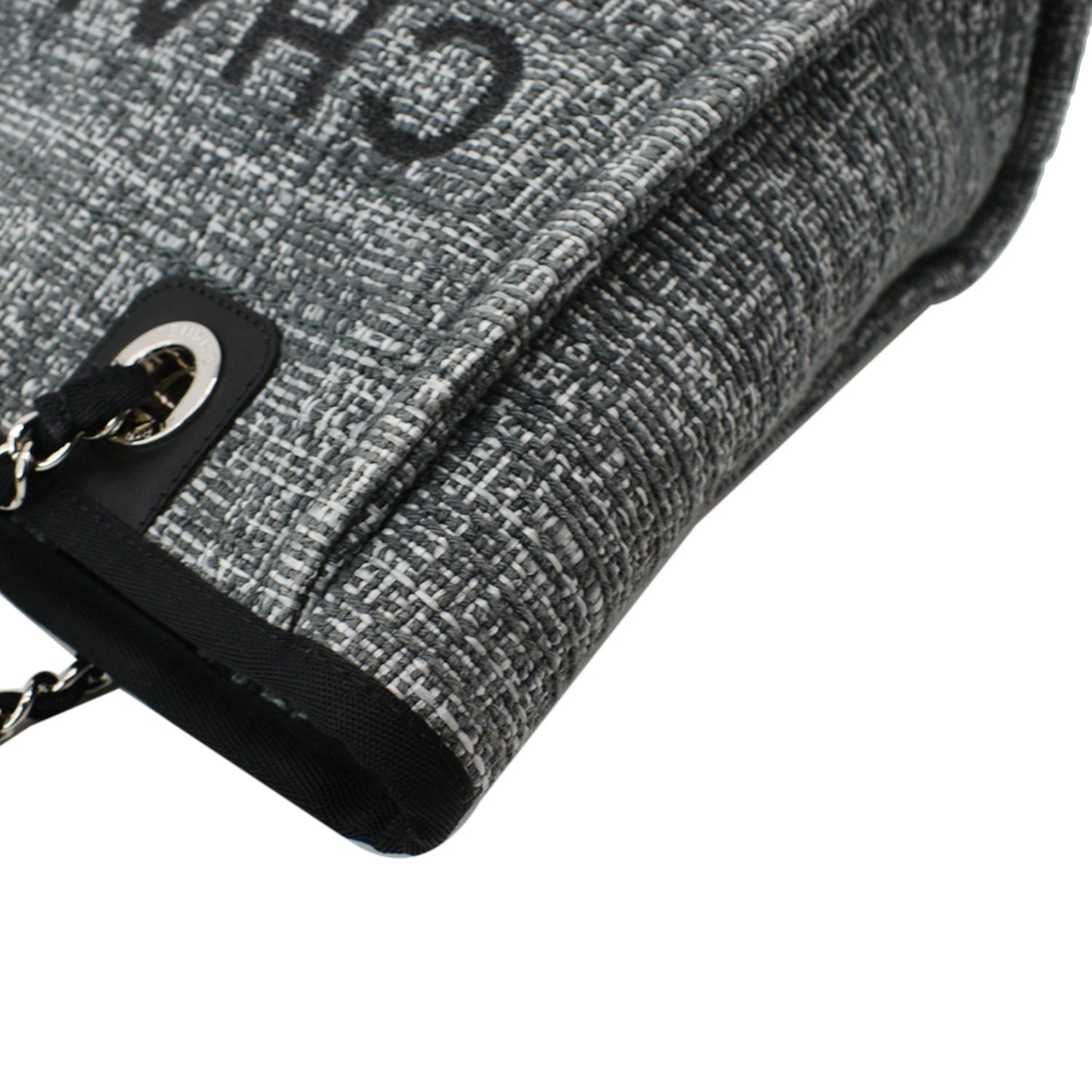 CHANEL Deauville Small Lurex Boucle Canvas Tote Bag Grey