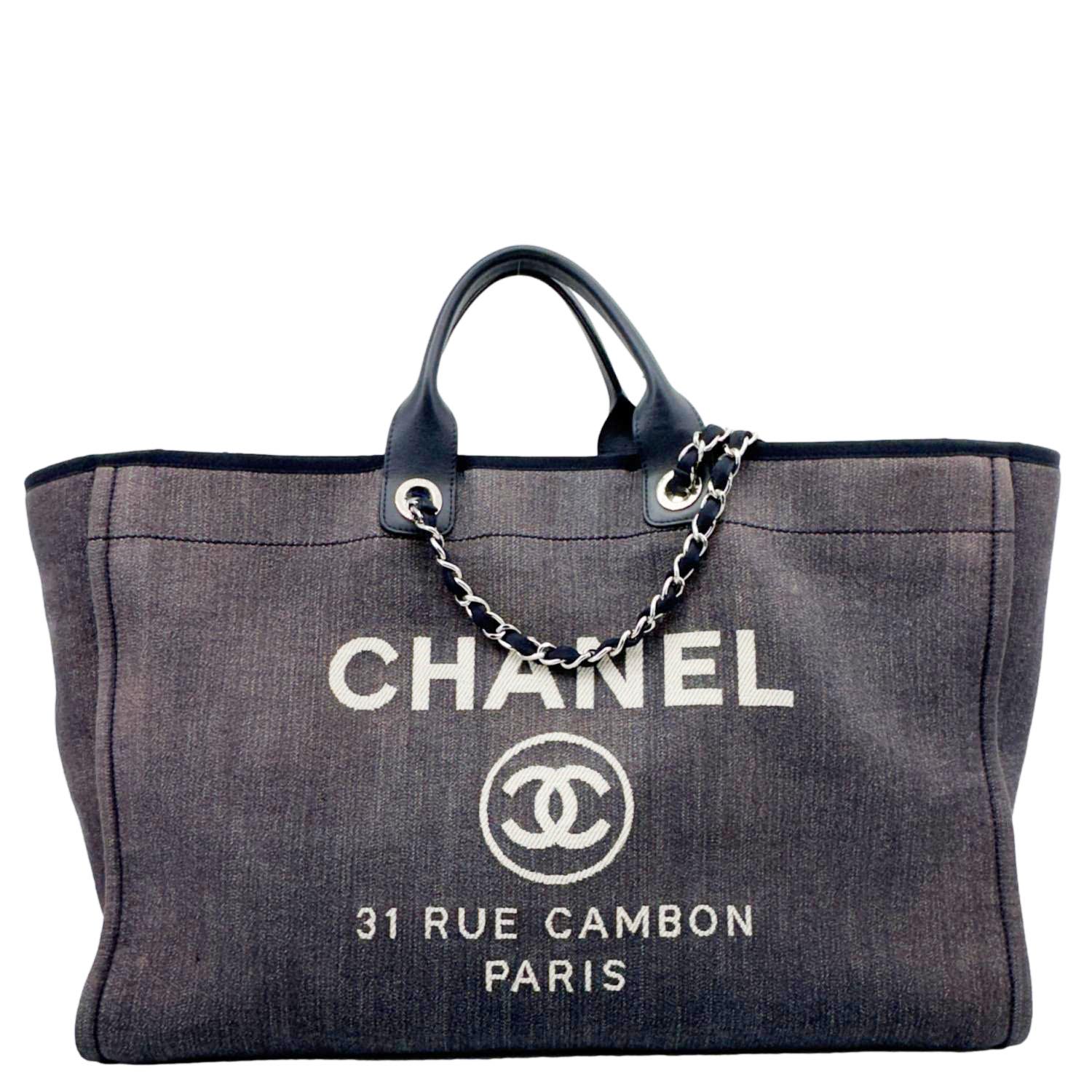 Crafted from durable denim, it features the signature CHANEL logo detailing and spacious design.