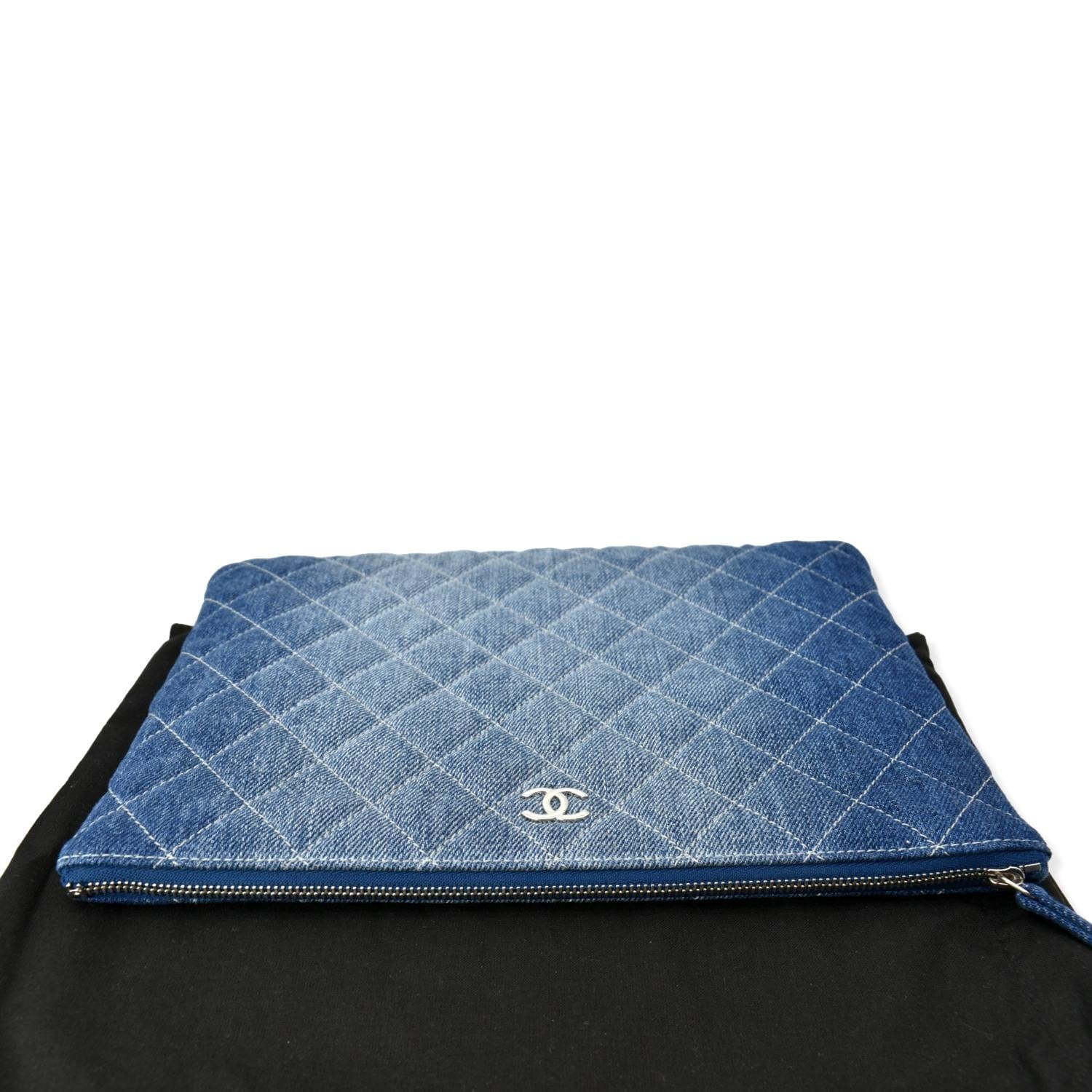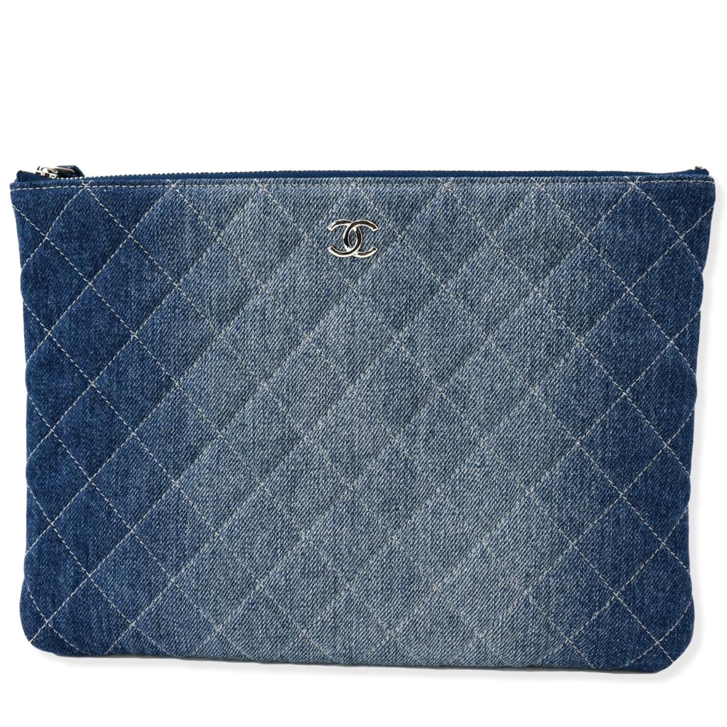 CHANEL Quilted Denim O Case Medium Pouch Blue
