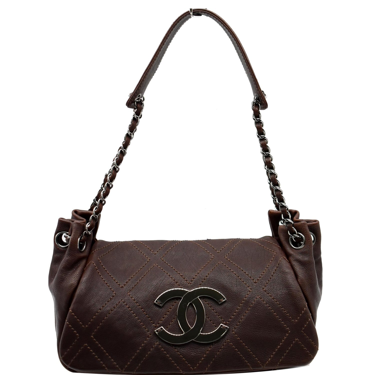 Accordion Flap Calfskin Diamond Stitch Shoulder Bag Brown