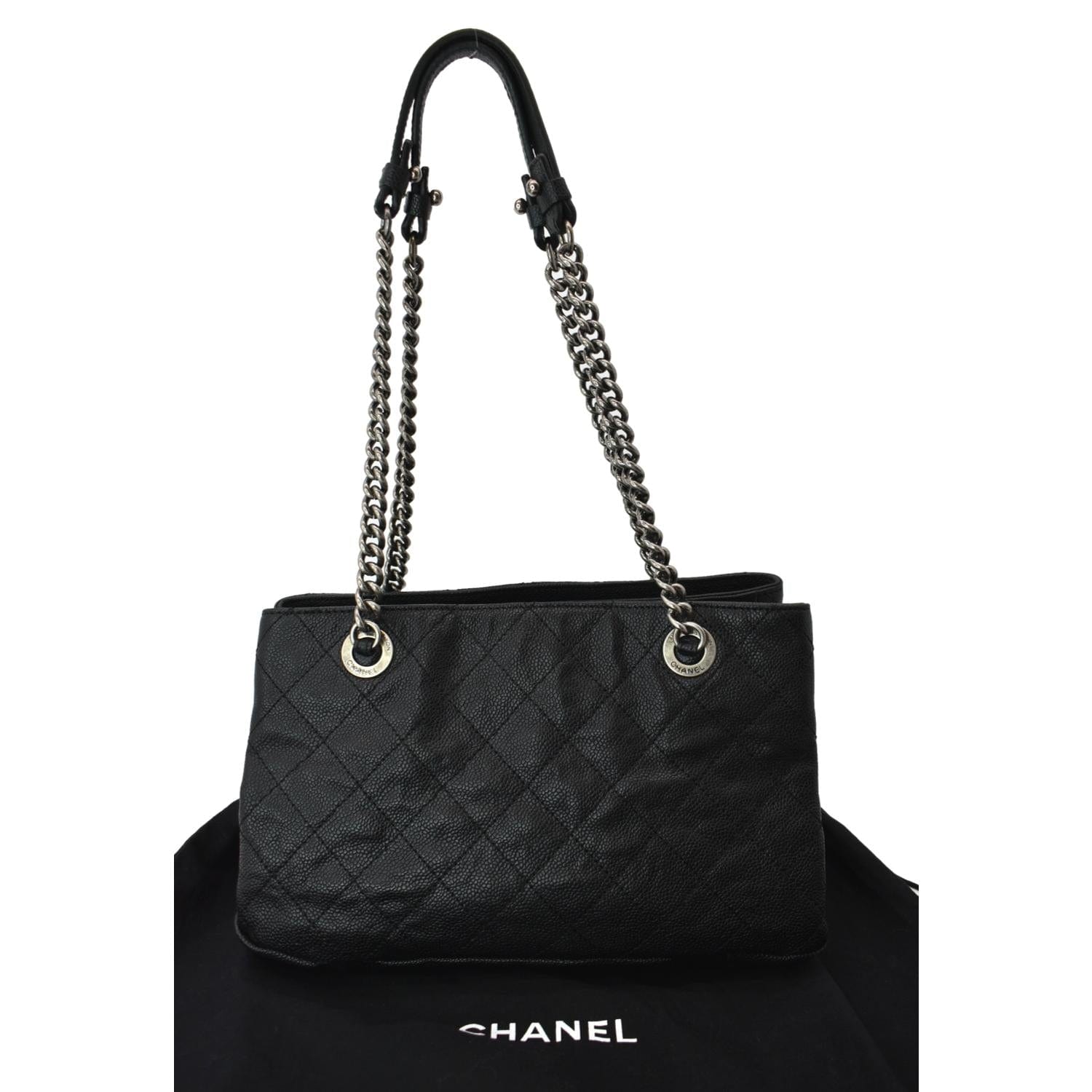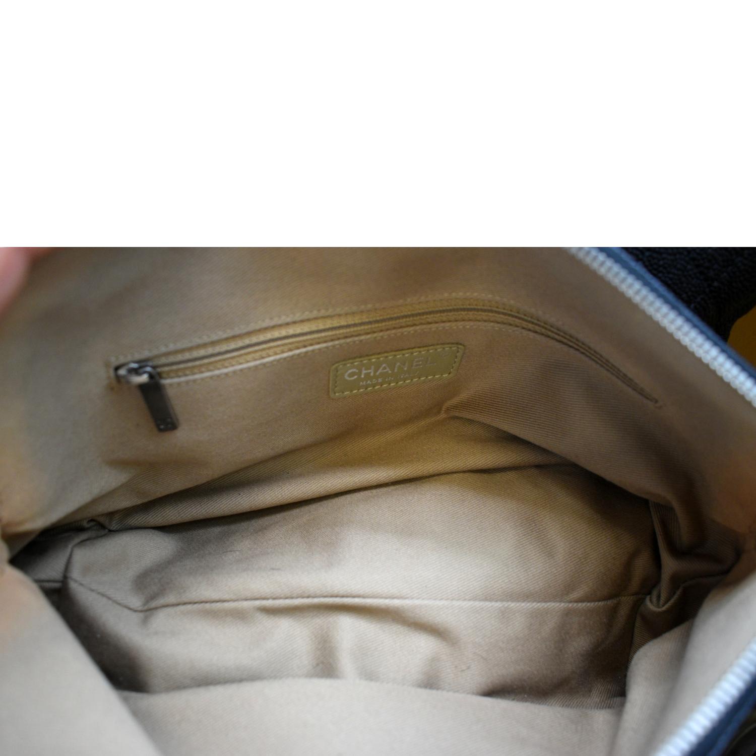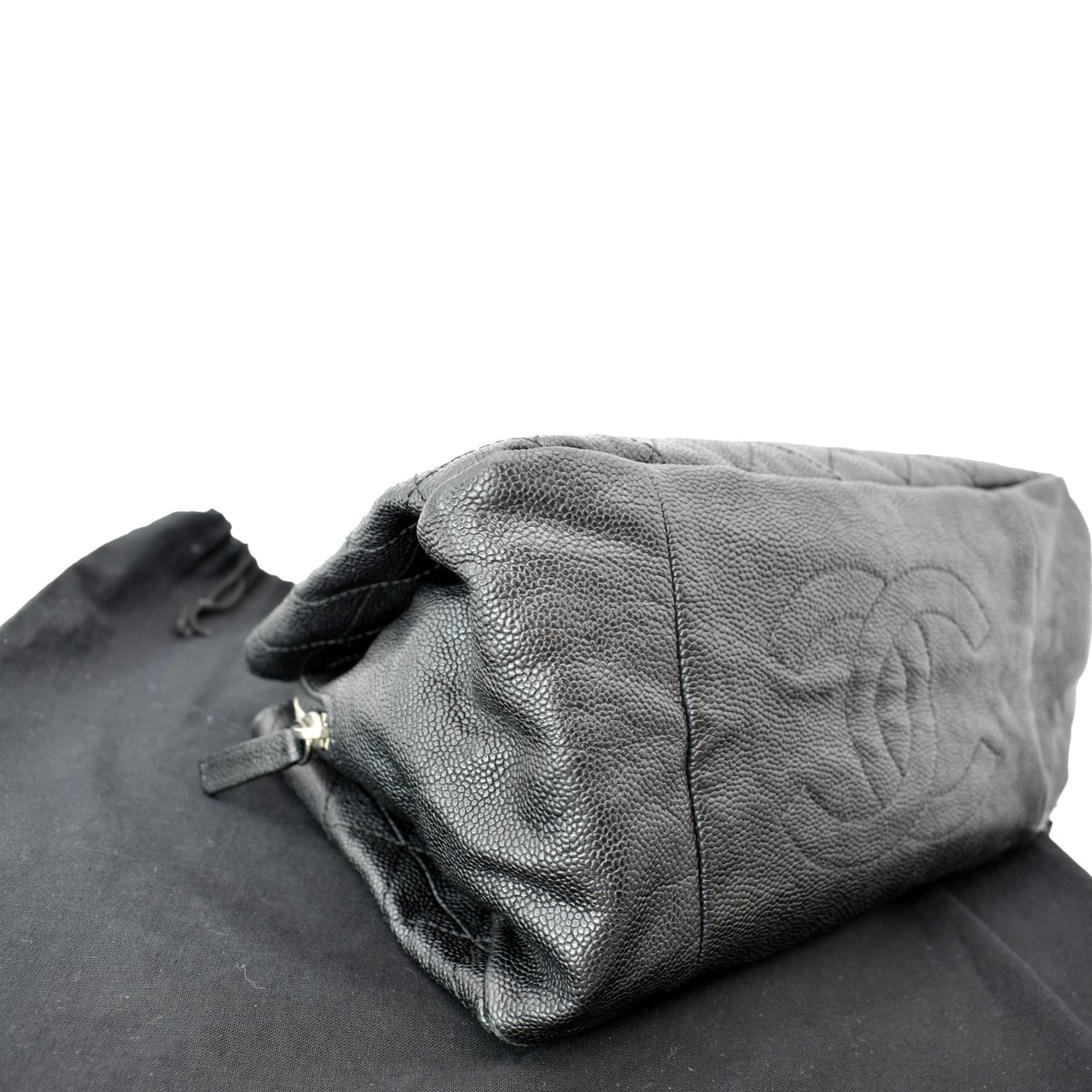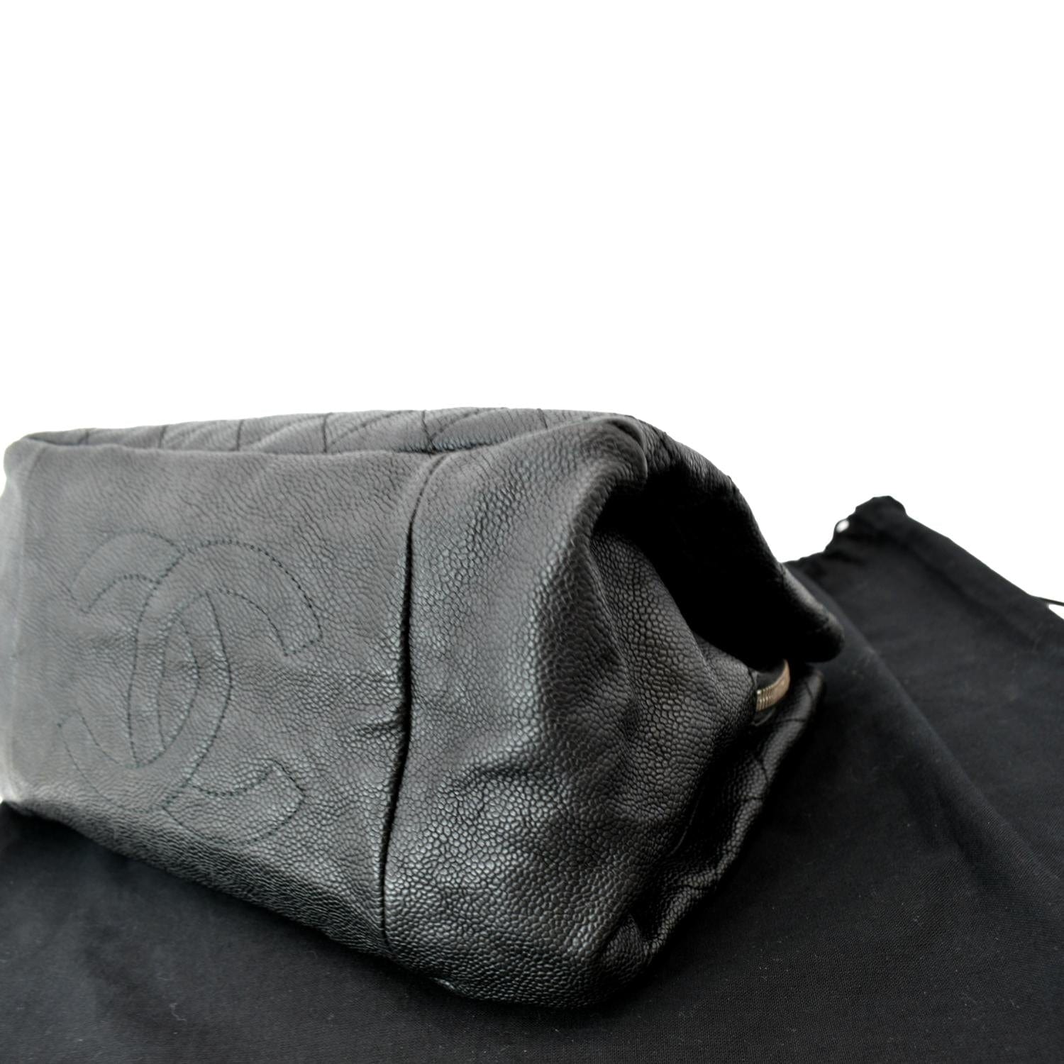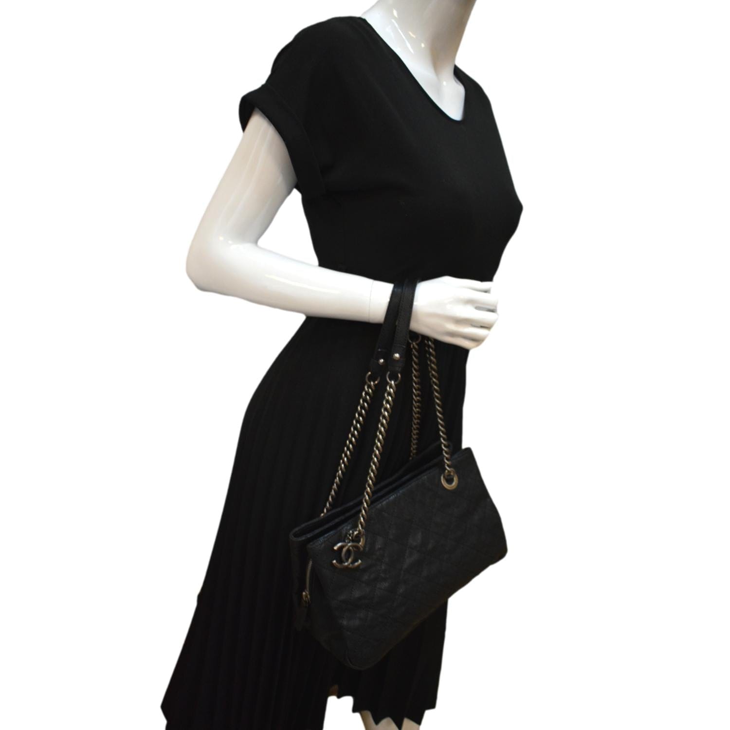 CHANEL CC Zip Diamond Embossed Leather Shopping Tote Shoulder Bag Black