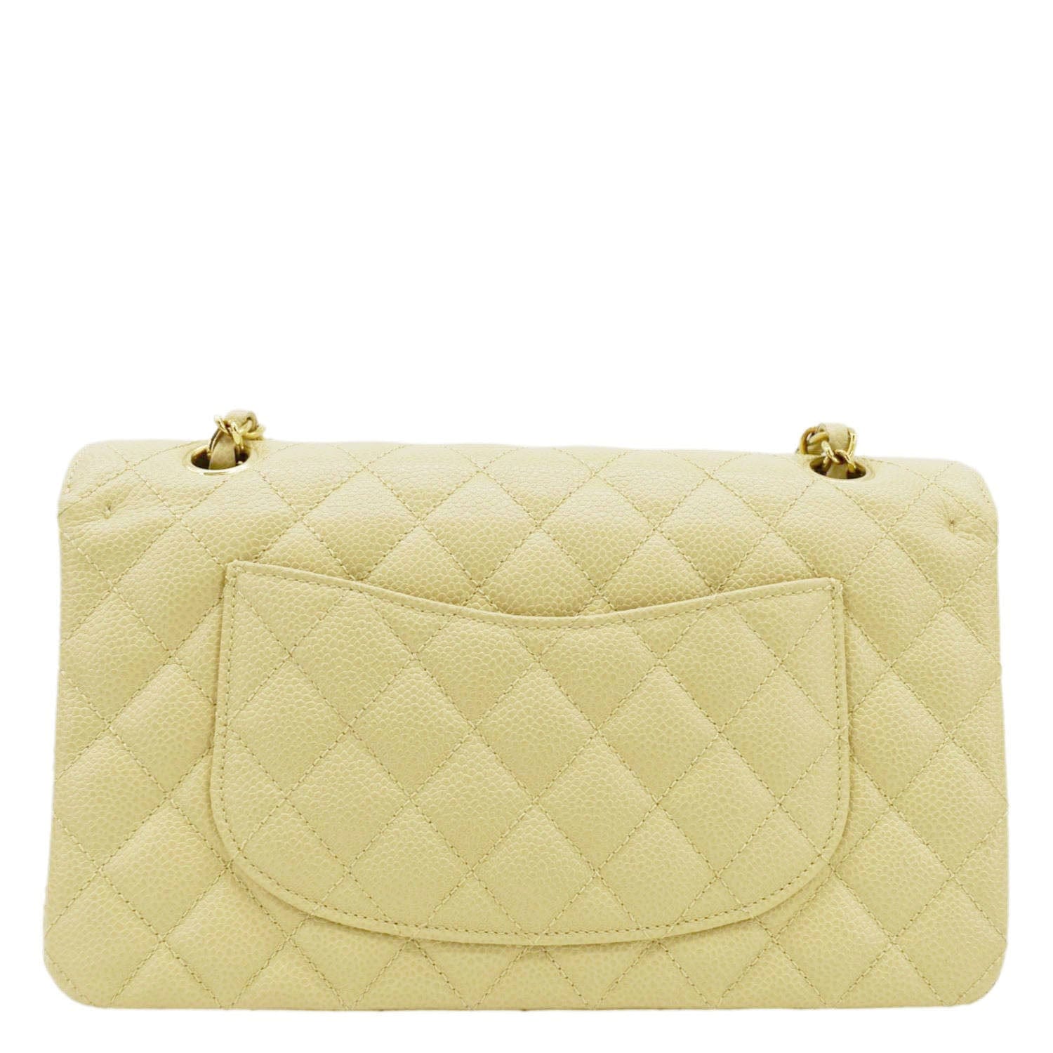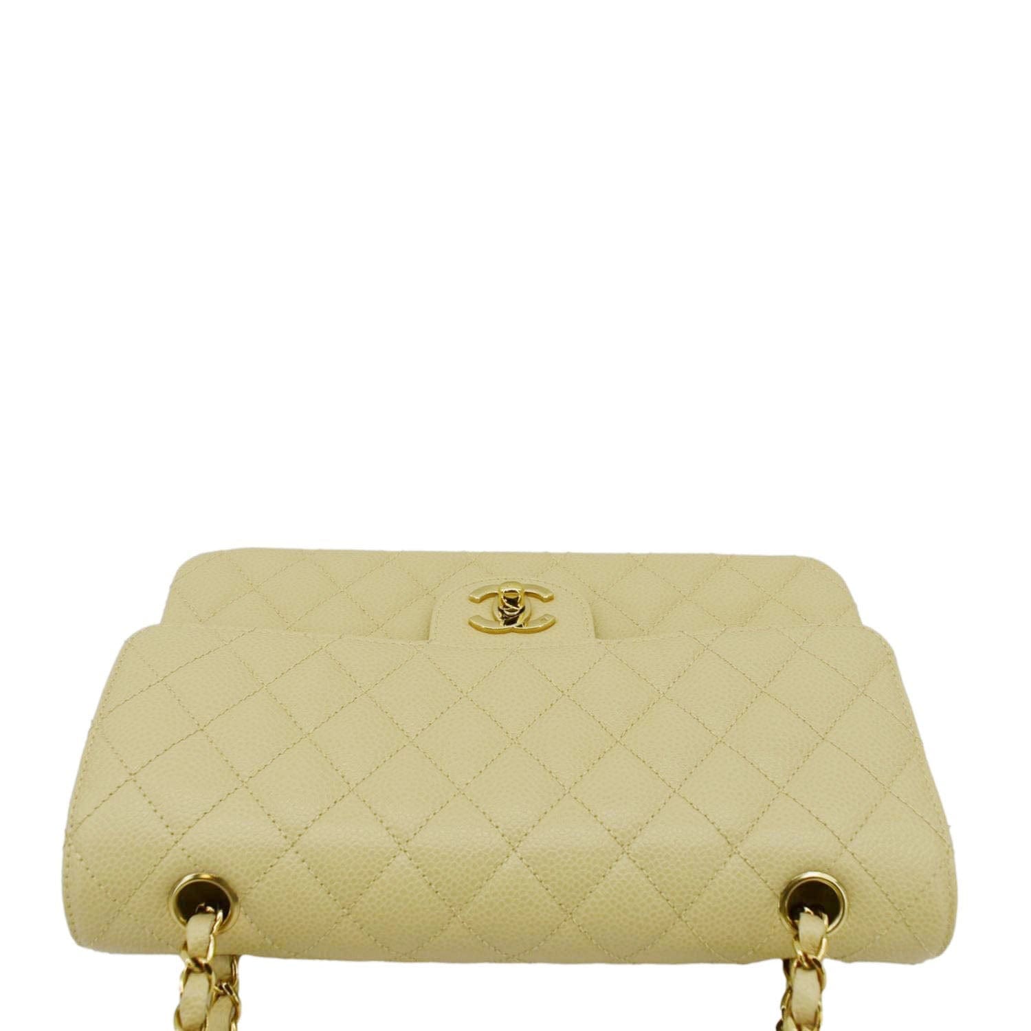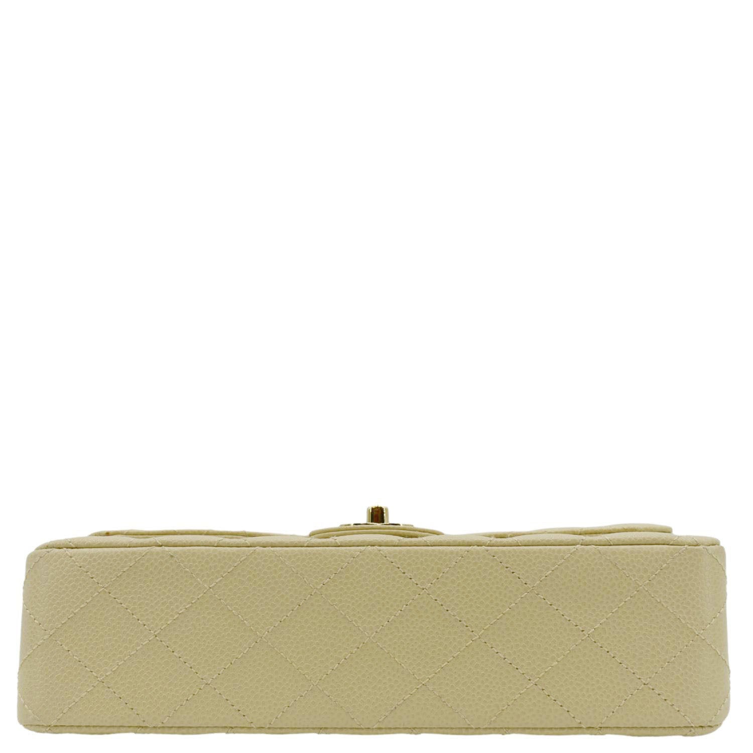 CHANEL Classic Double Flap Quilted Caviar Leather Shoulder Bag Cream