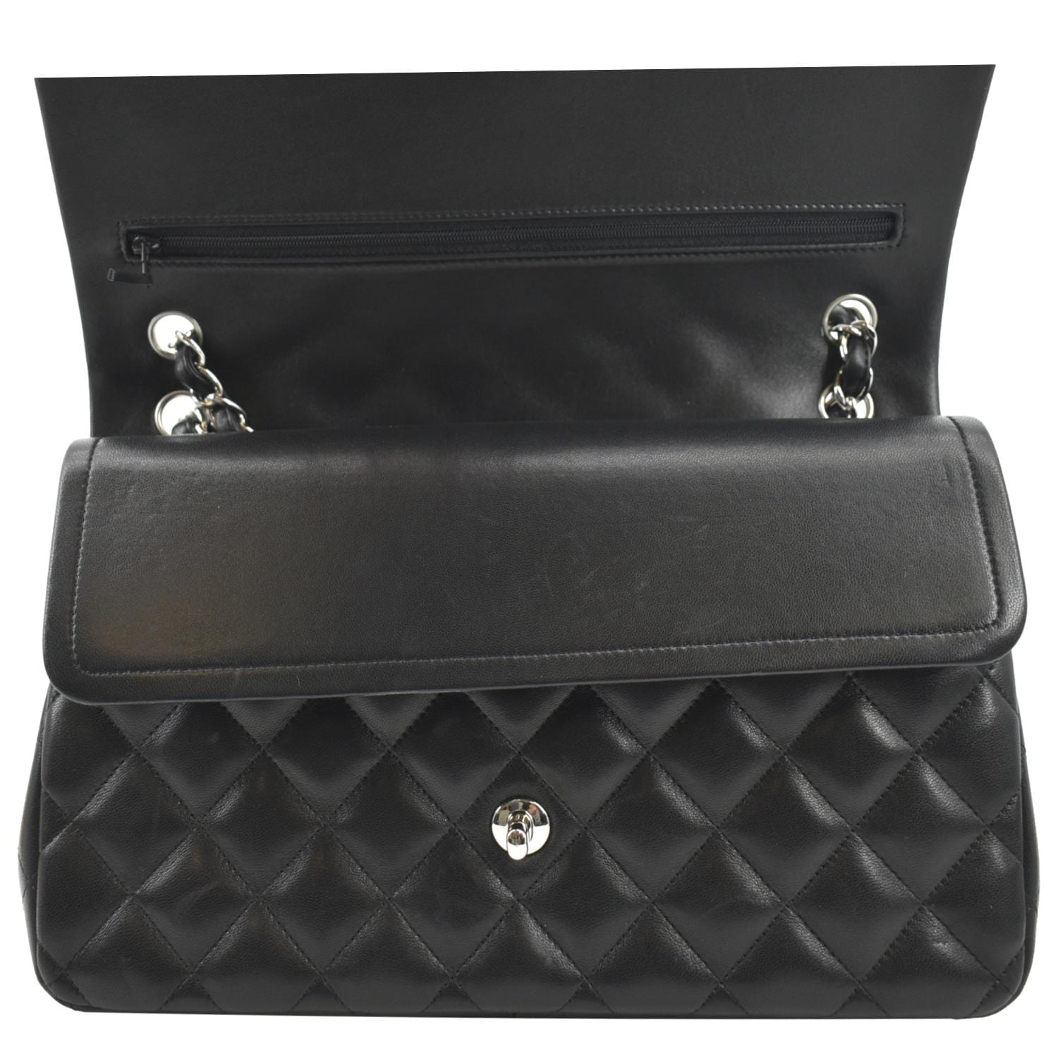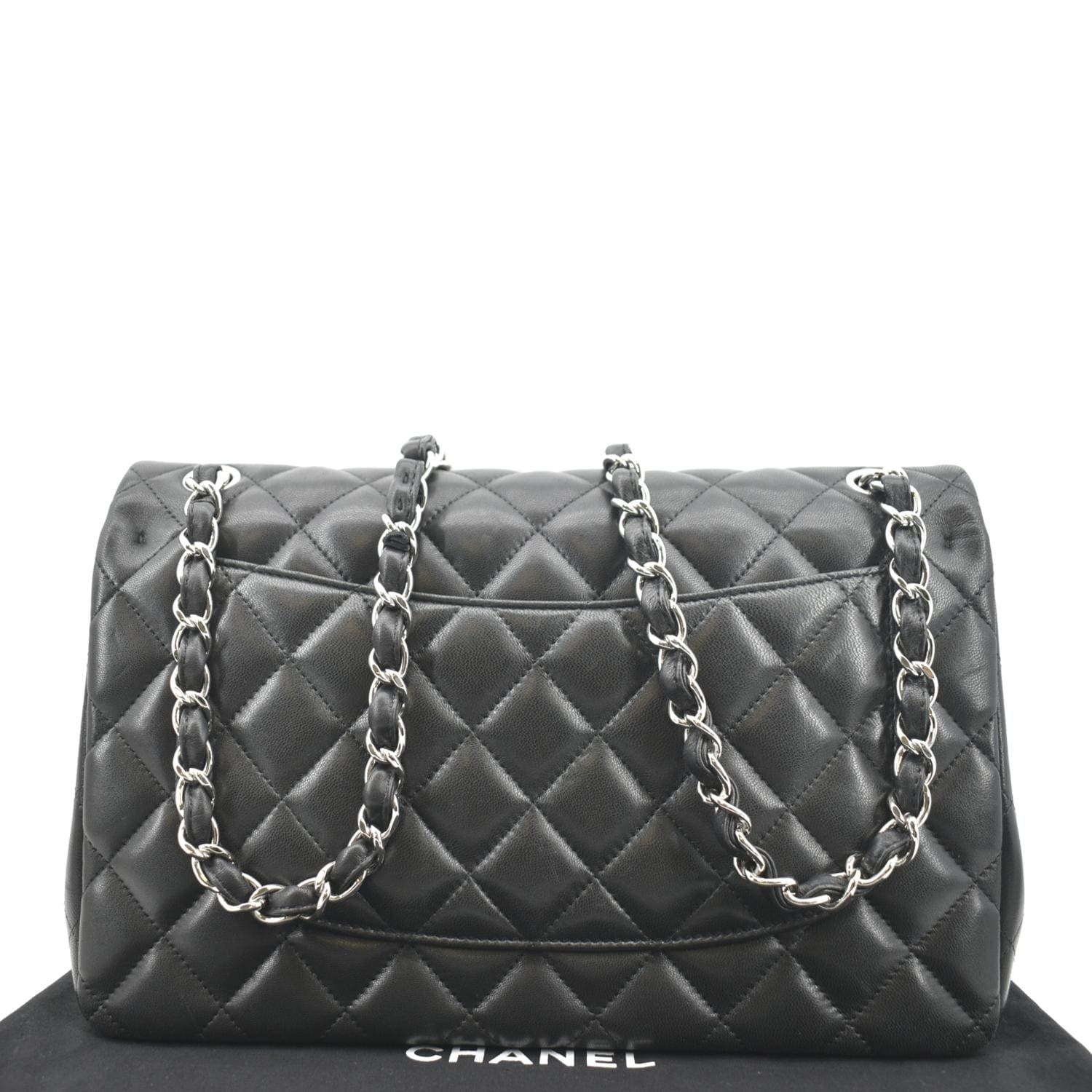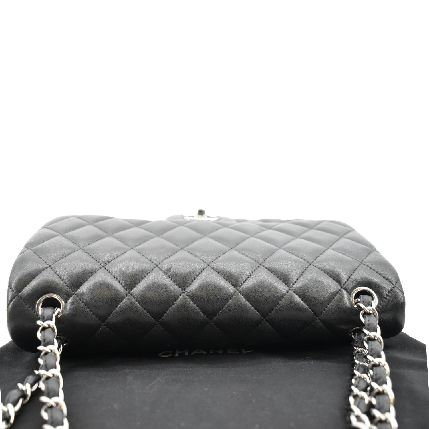 CHANEL Classic Medium Double Flap Quilted Lambskin Leather Shoulder Bag Black