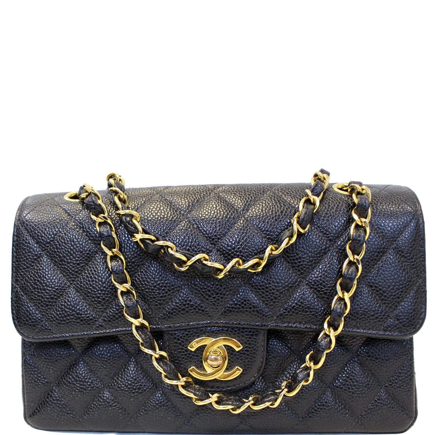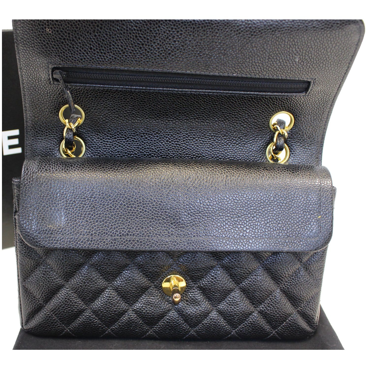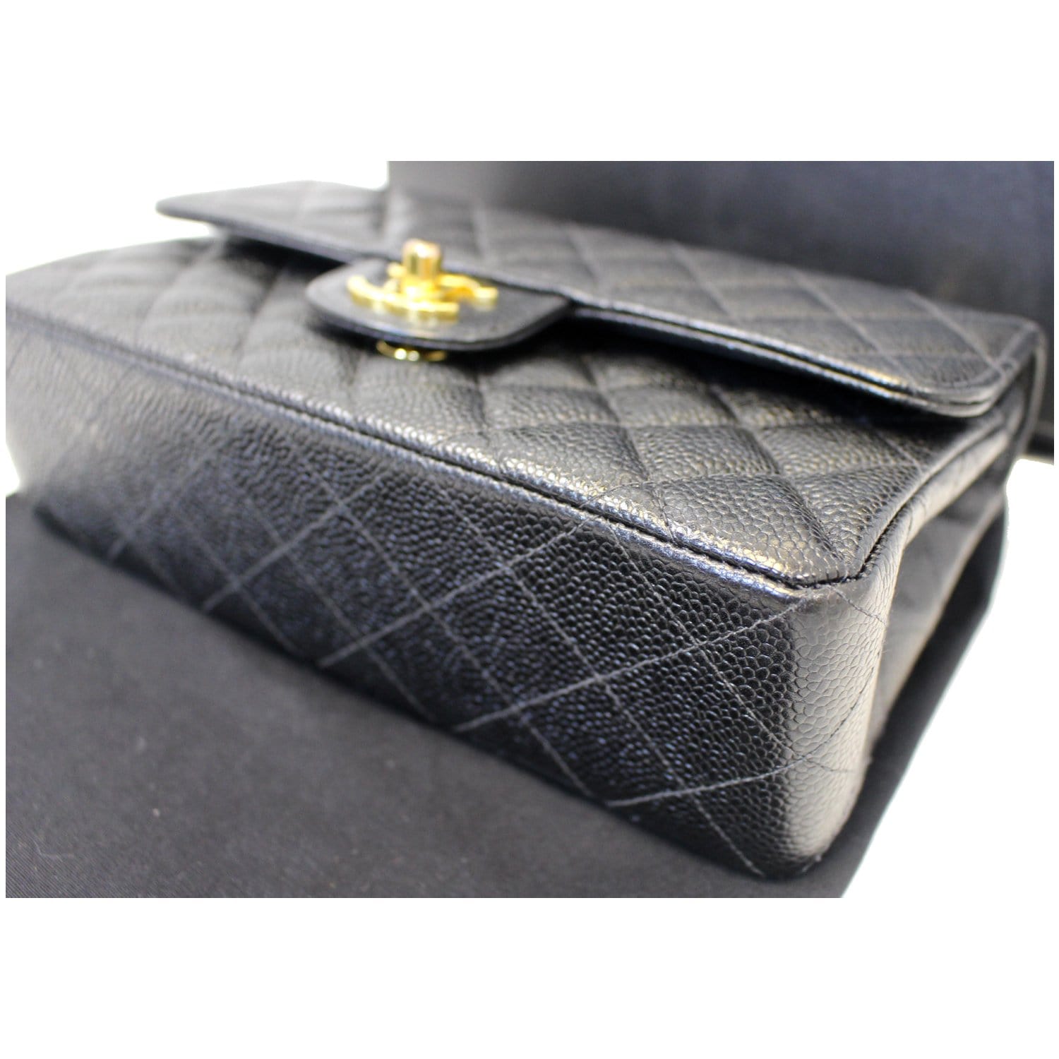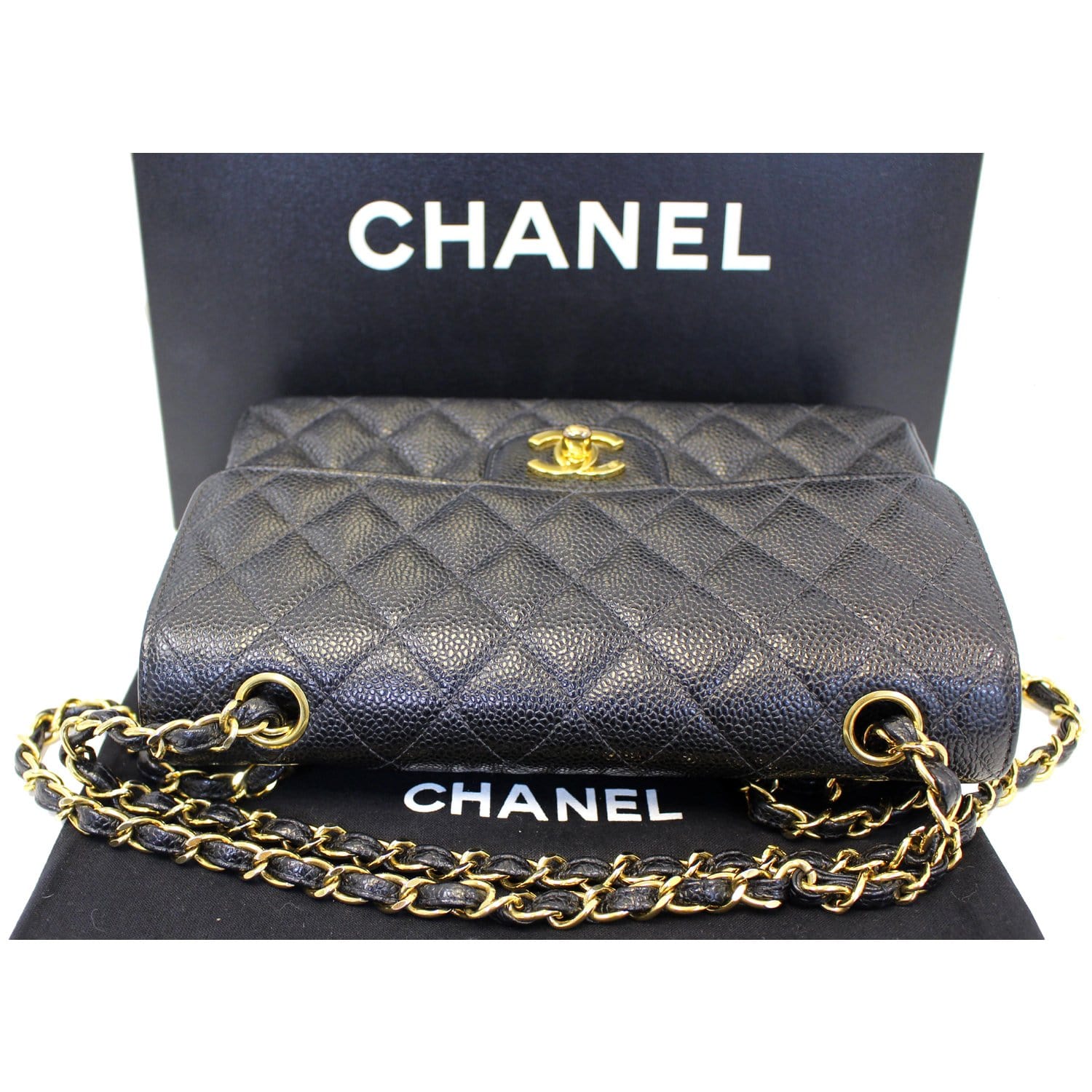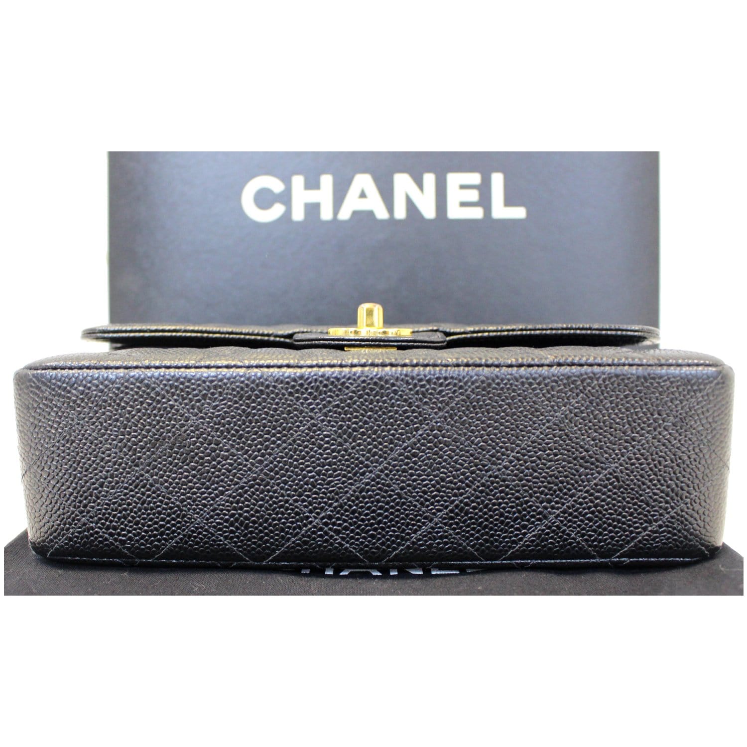 CHANEL Double Flap Small Caviar Leather Shoulder Bag Black