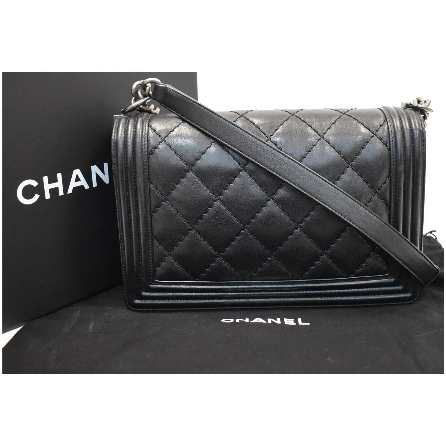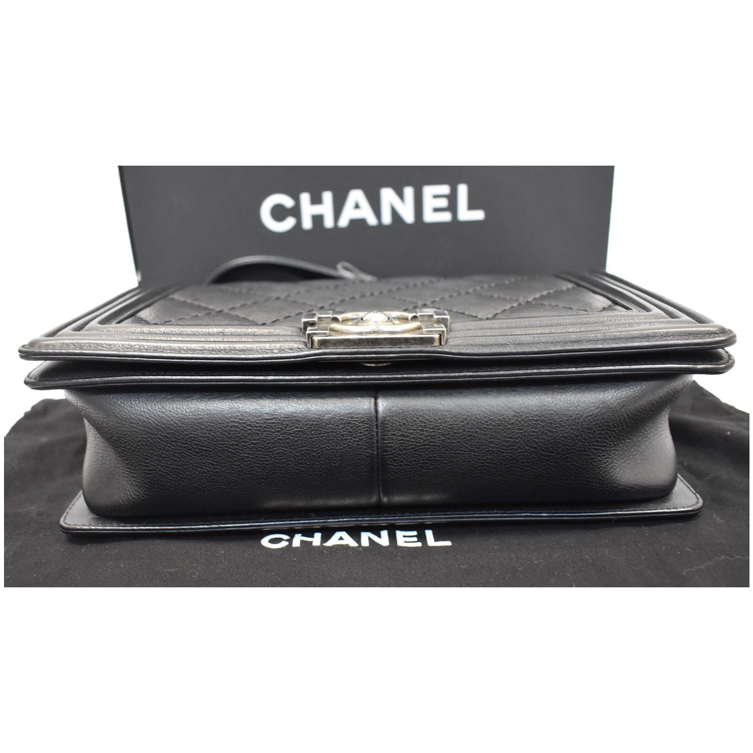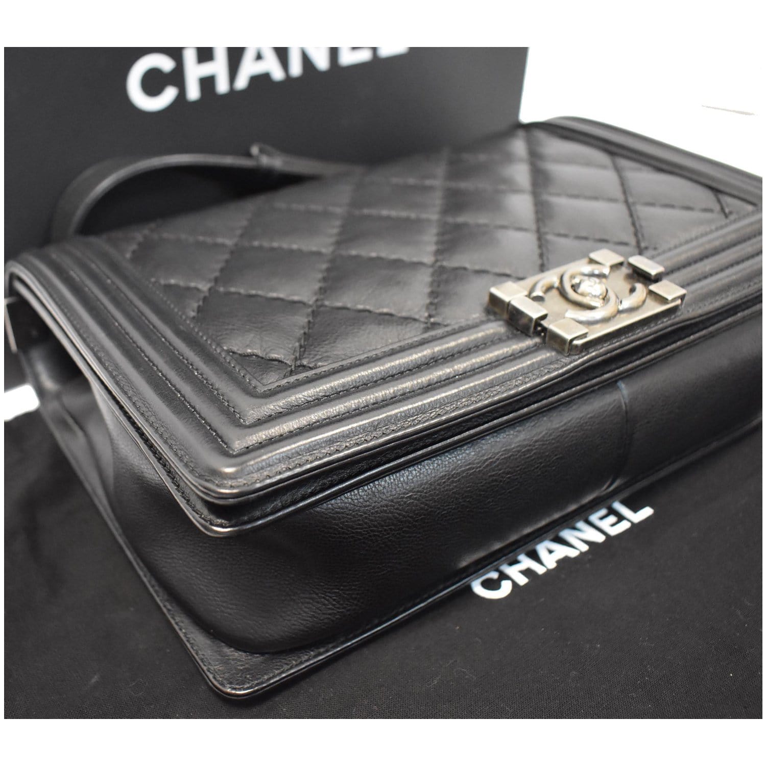 CHANEL Double Stitch Boy Flap Medium Calfskin Shoulder Bag Black