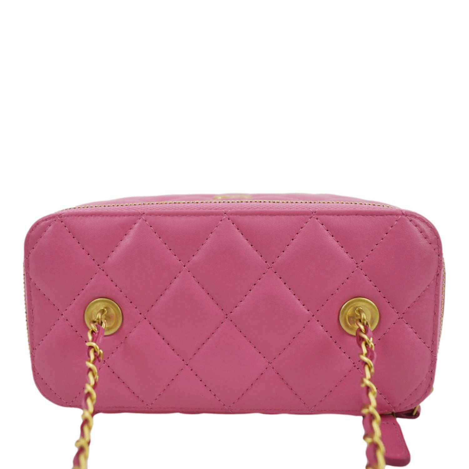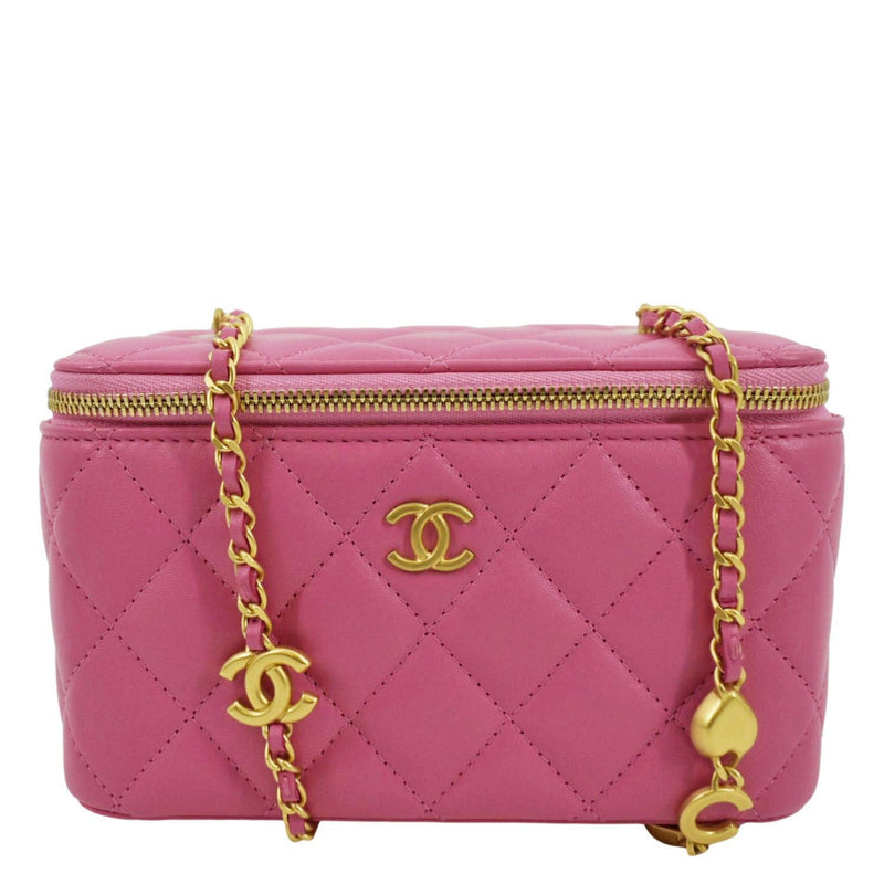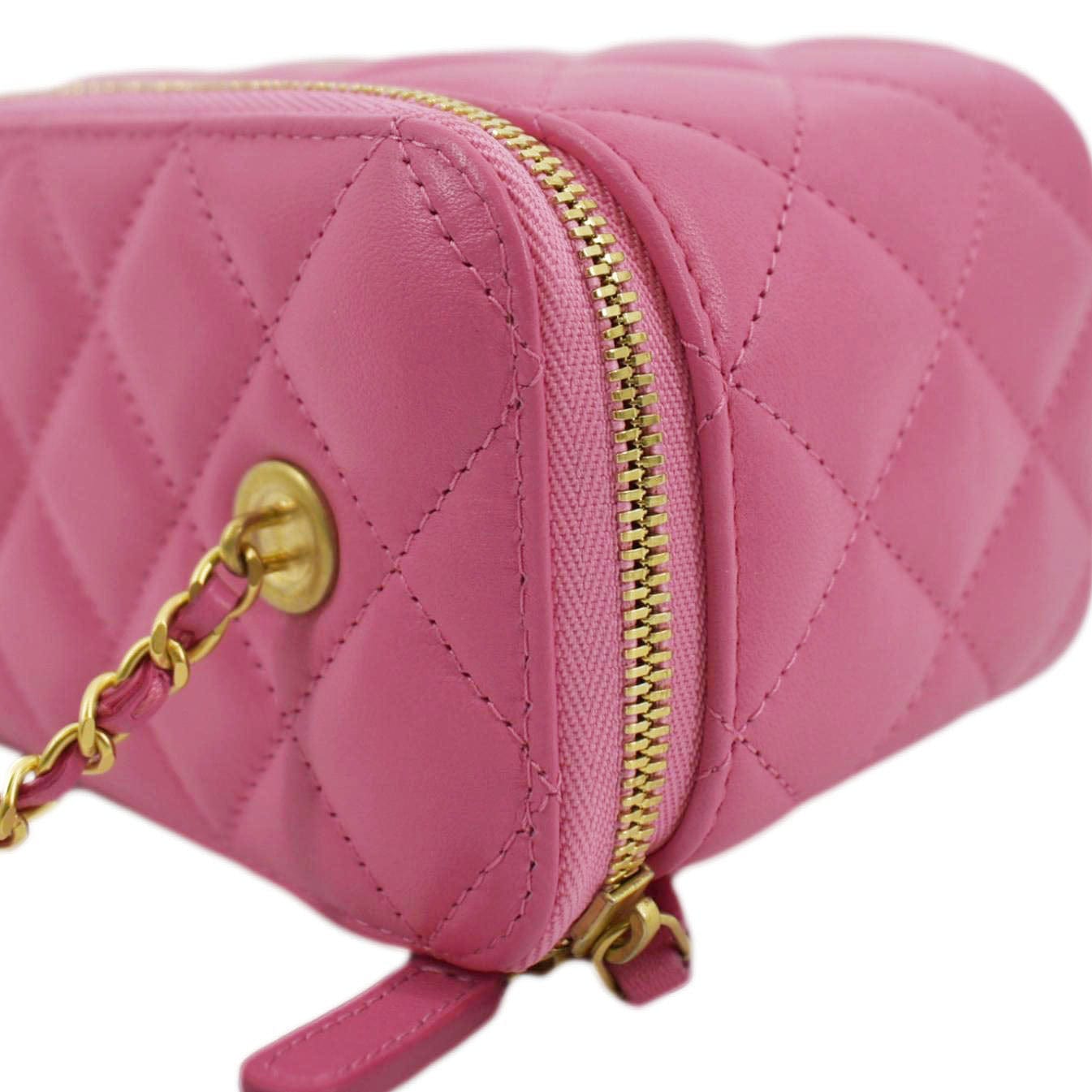 CHANEL Enamel Coco Hearts Small Quilted Leather Crossbody Vanity Case Pink