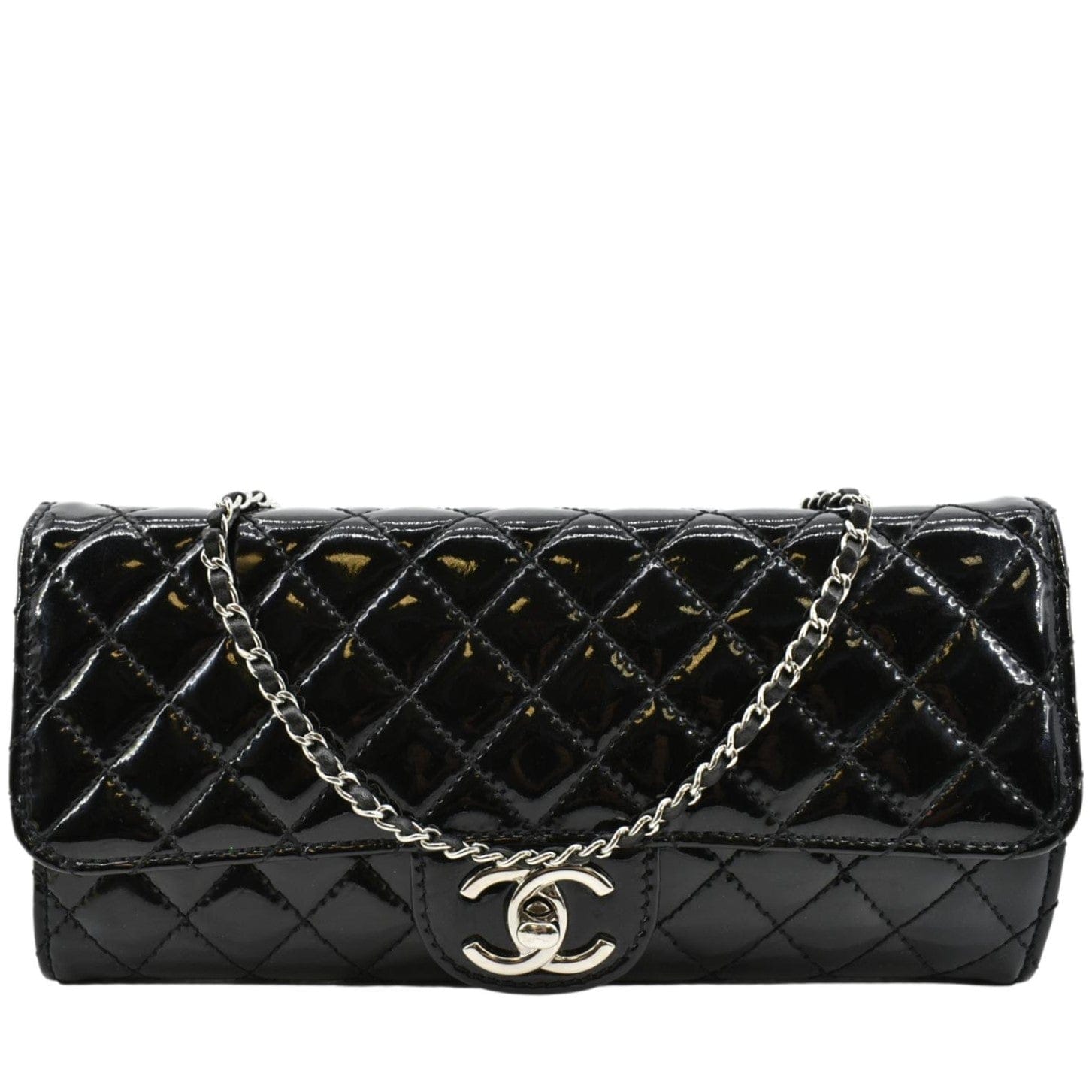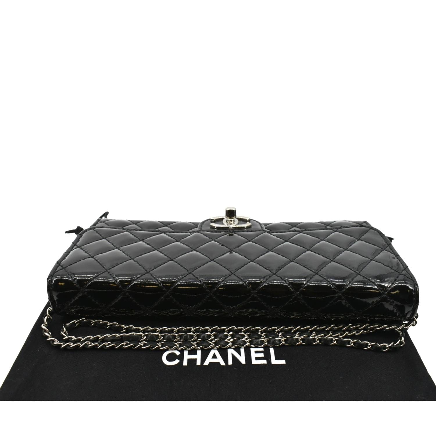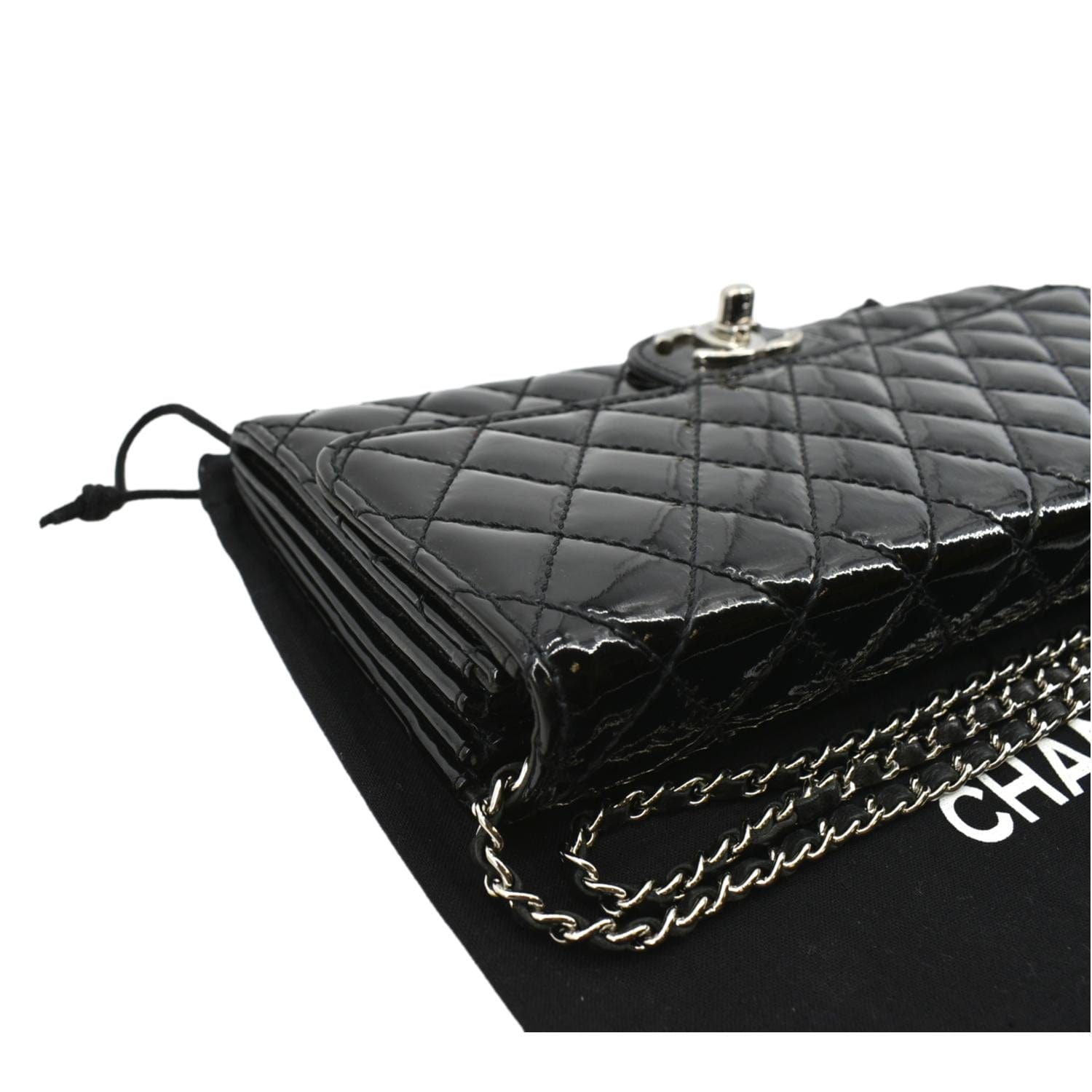 CHANEL Long Flap Quilted Patent Leather Chain Shoulder Bag Black