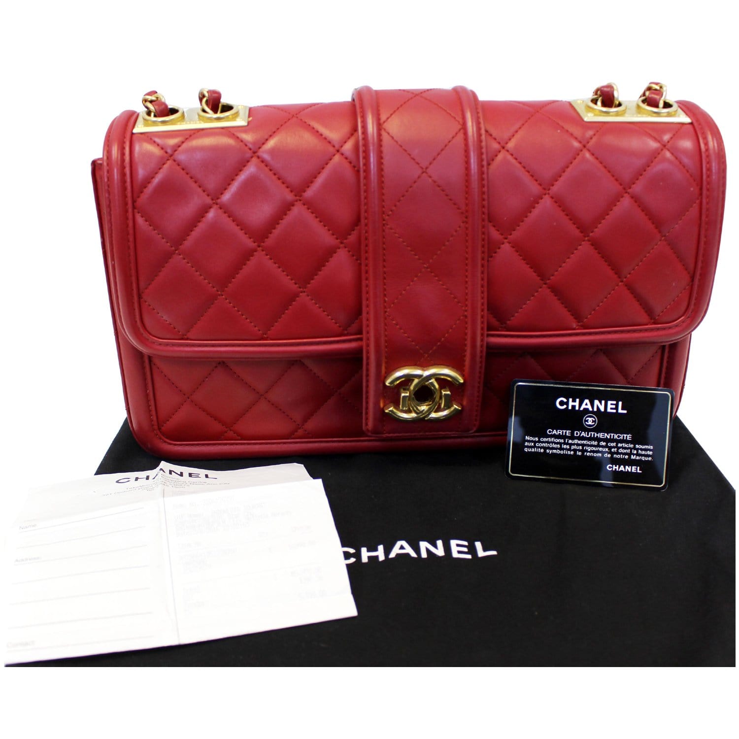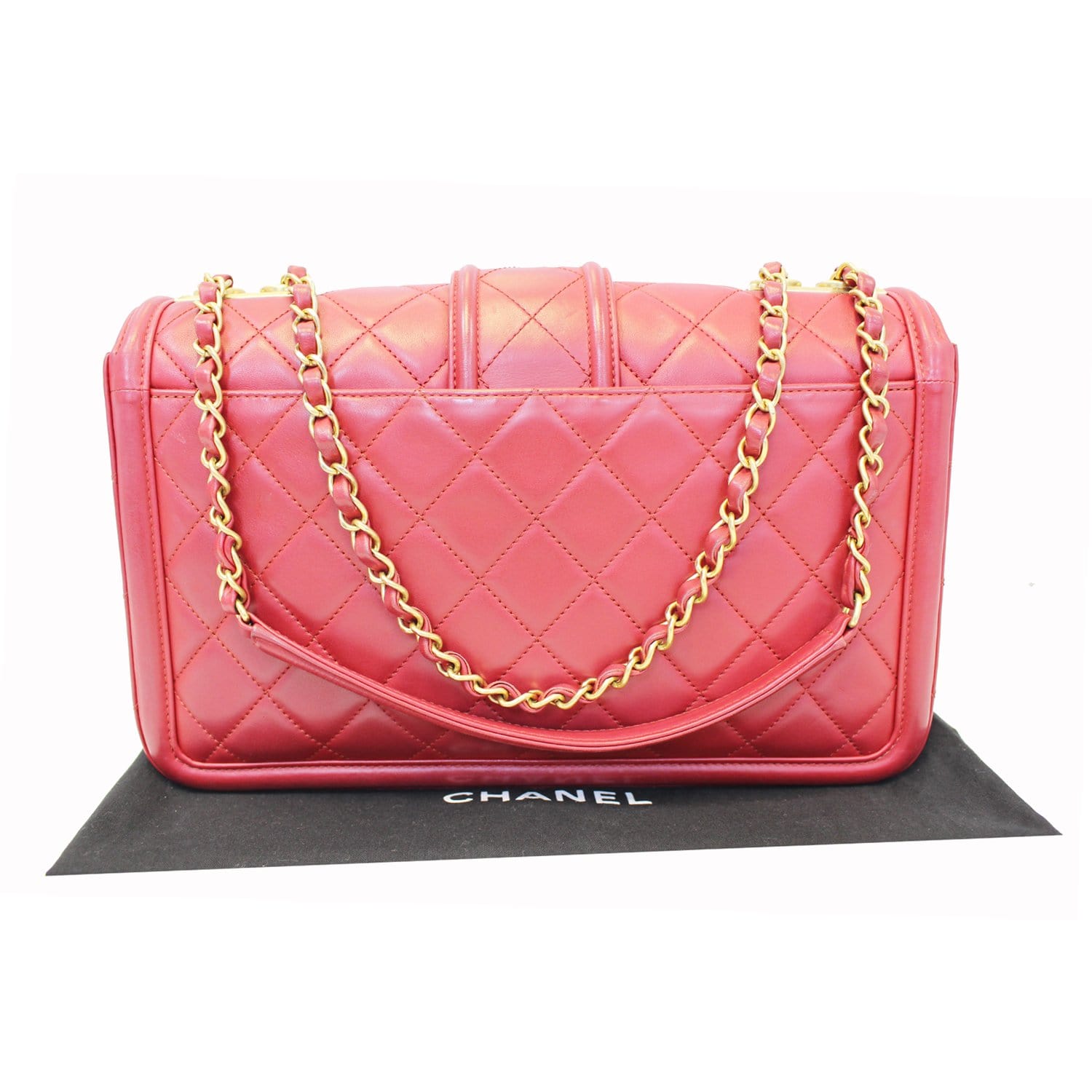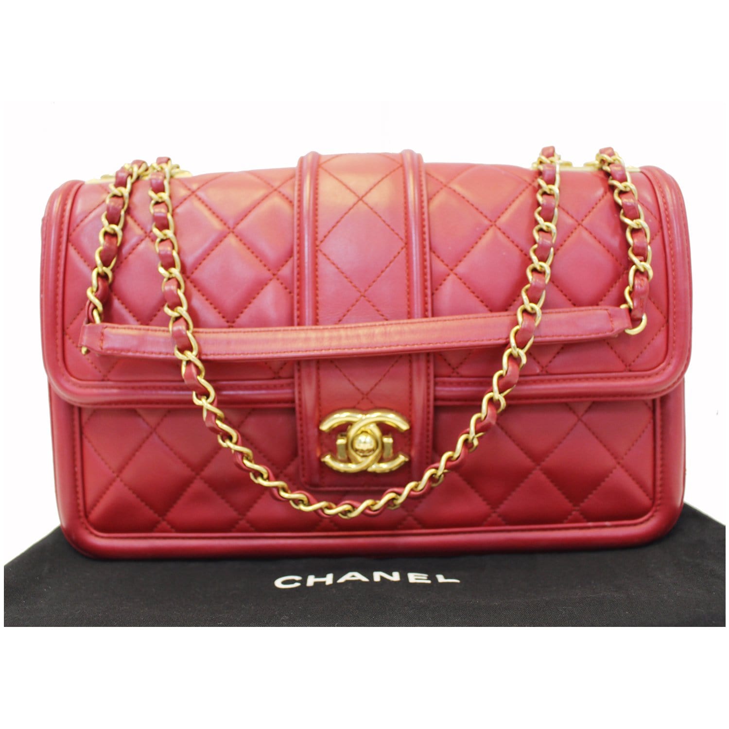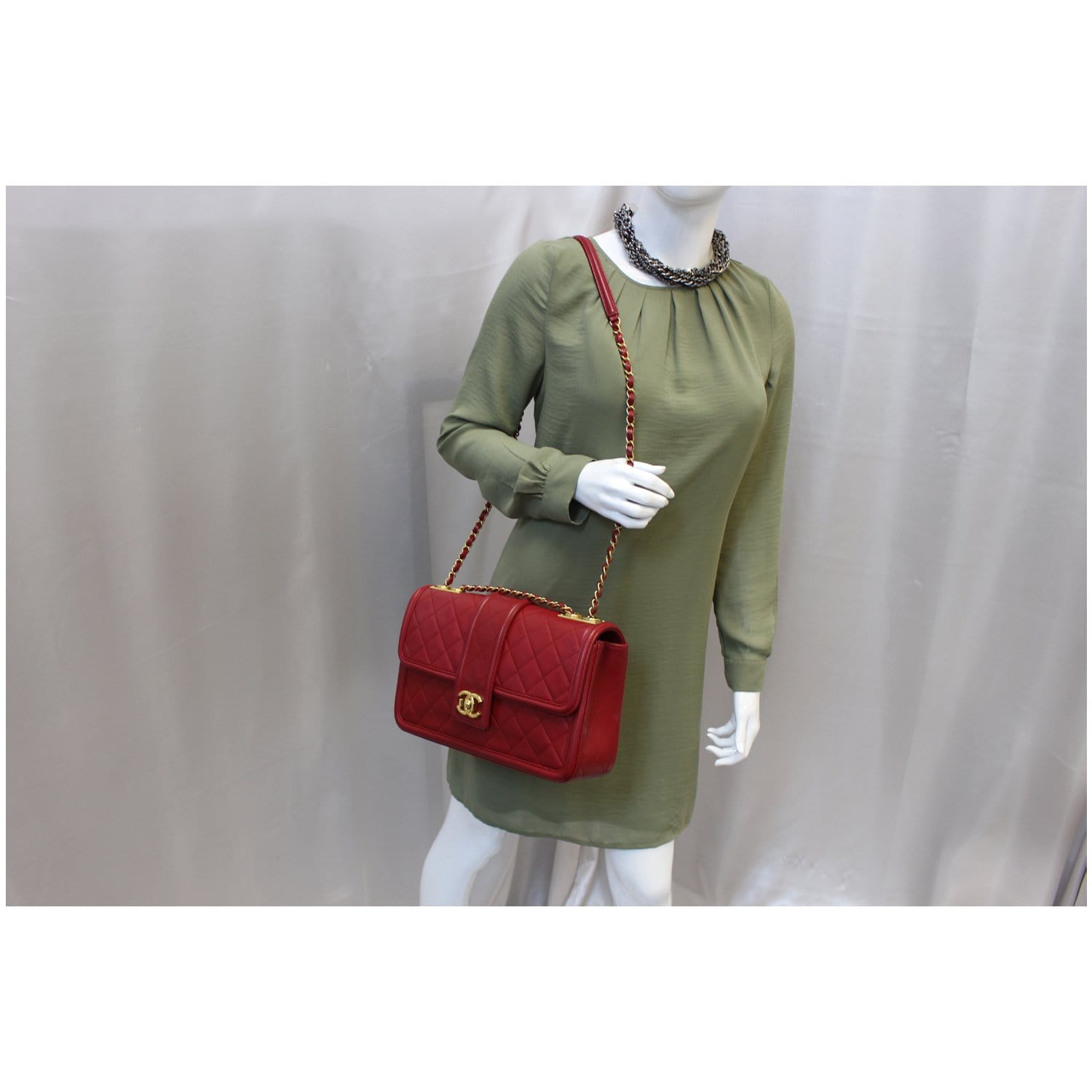 CHANEL Large Elegant CC Flap Calfskin Leather Shoulder Bag Red