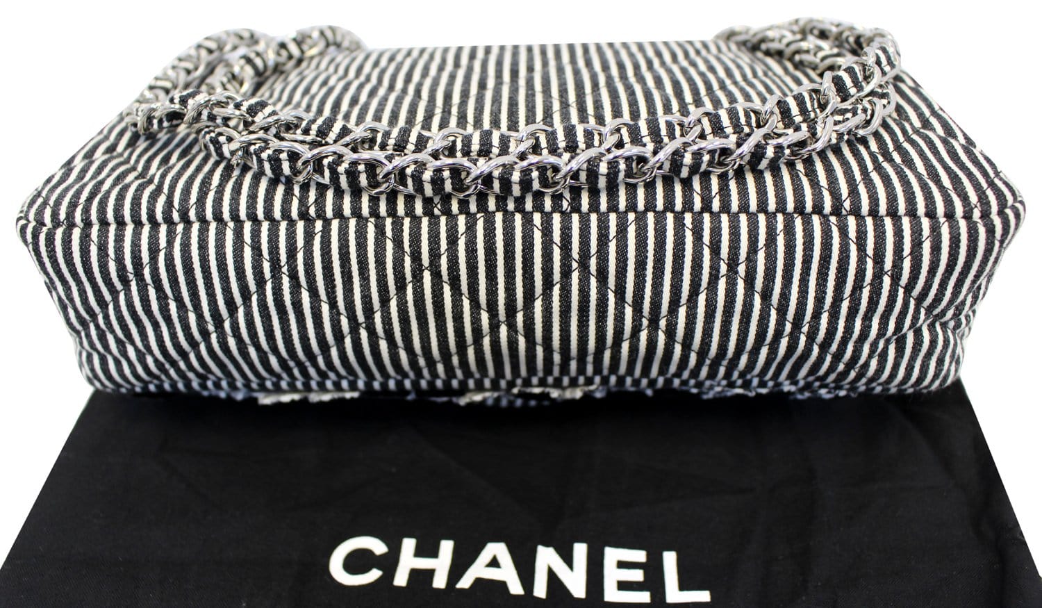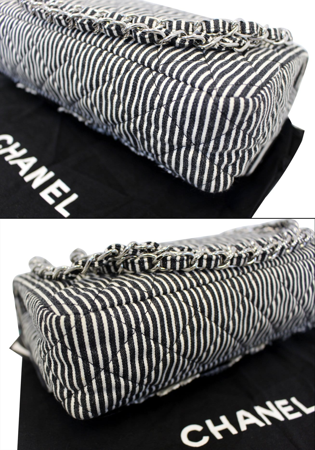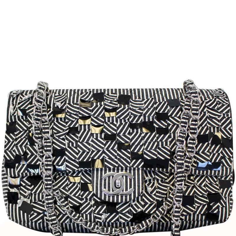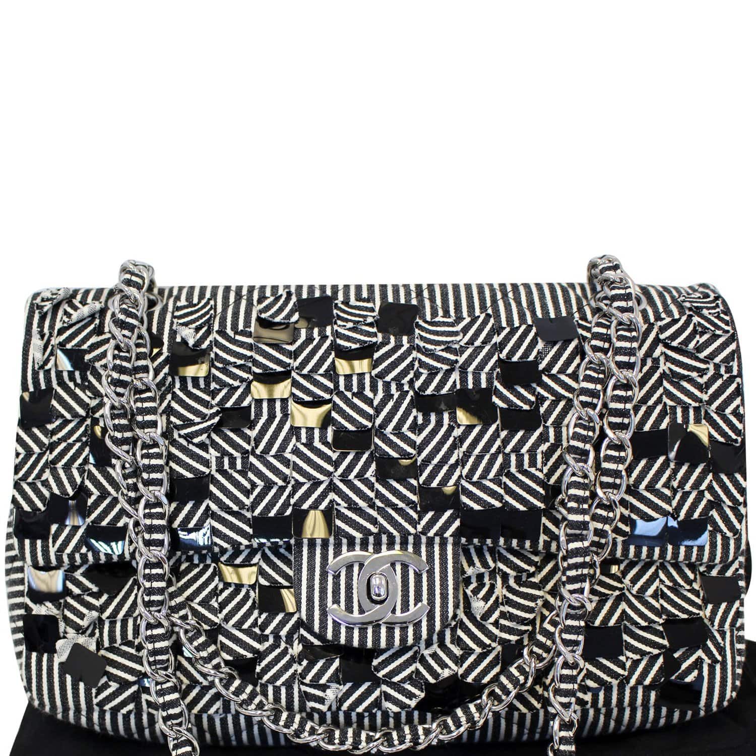 CHANEL Black/White Striped Medium Flap Shoulder Bag - Sale