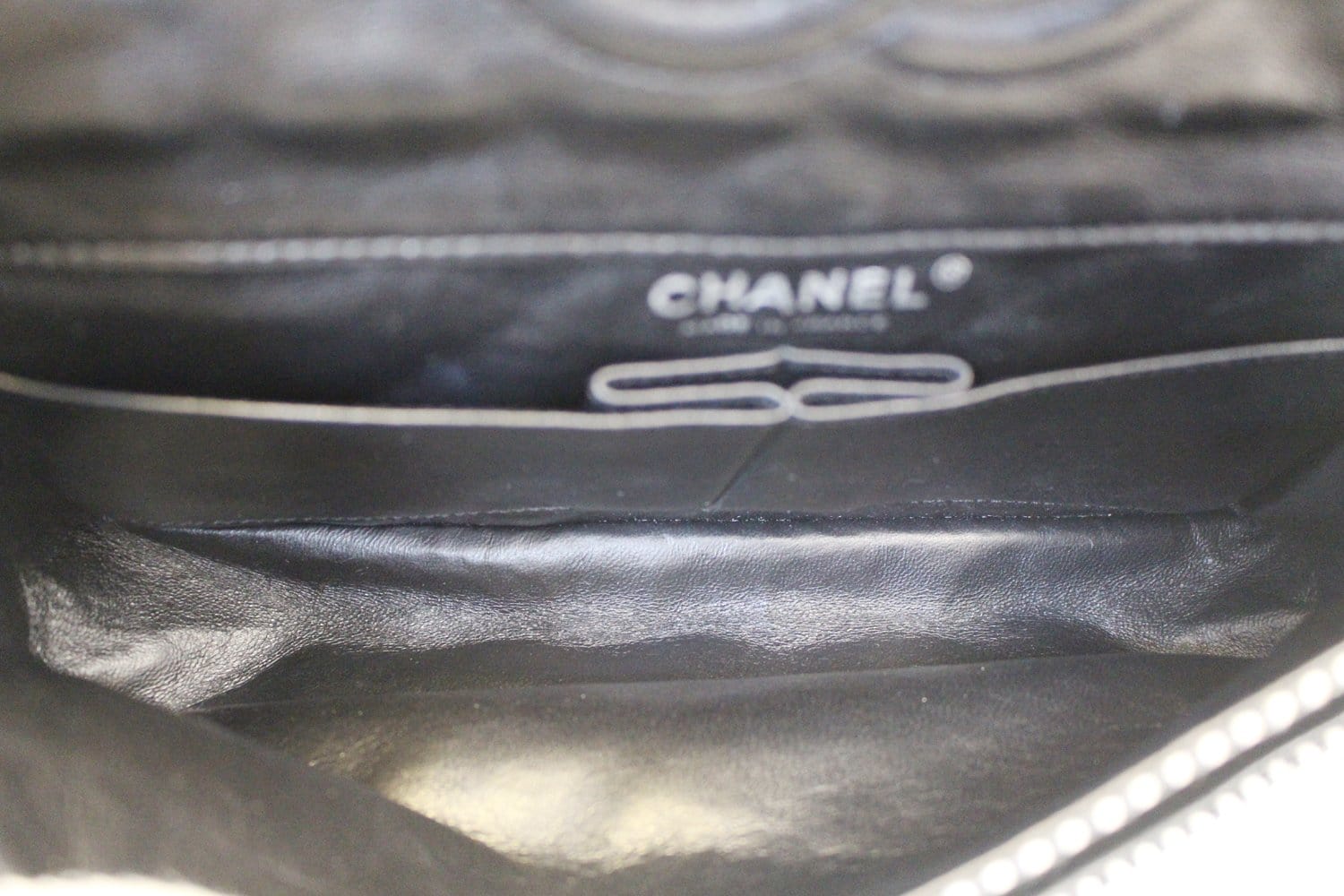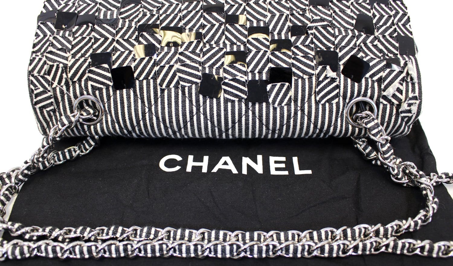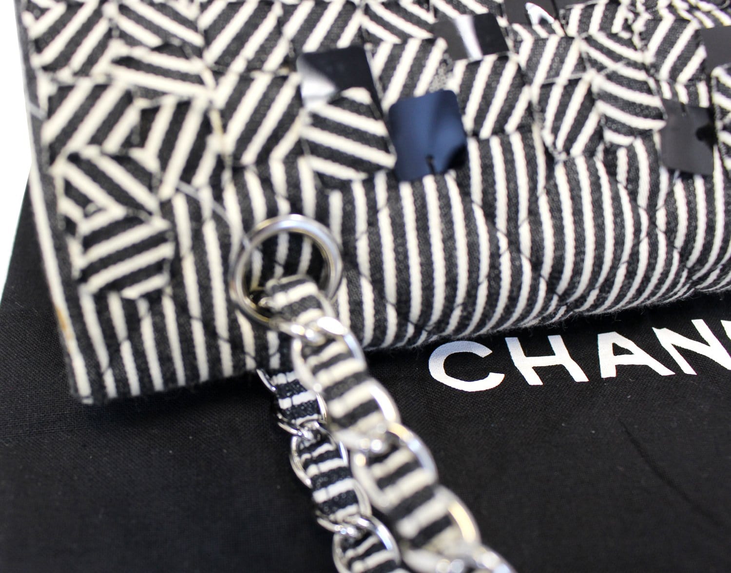 CHANEL Black/White Striped Medium Flap Shoulder Bag - Sale