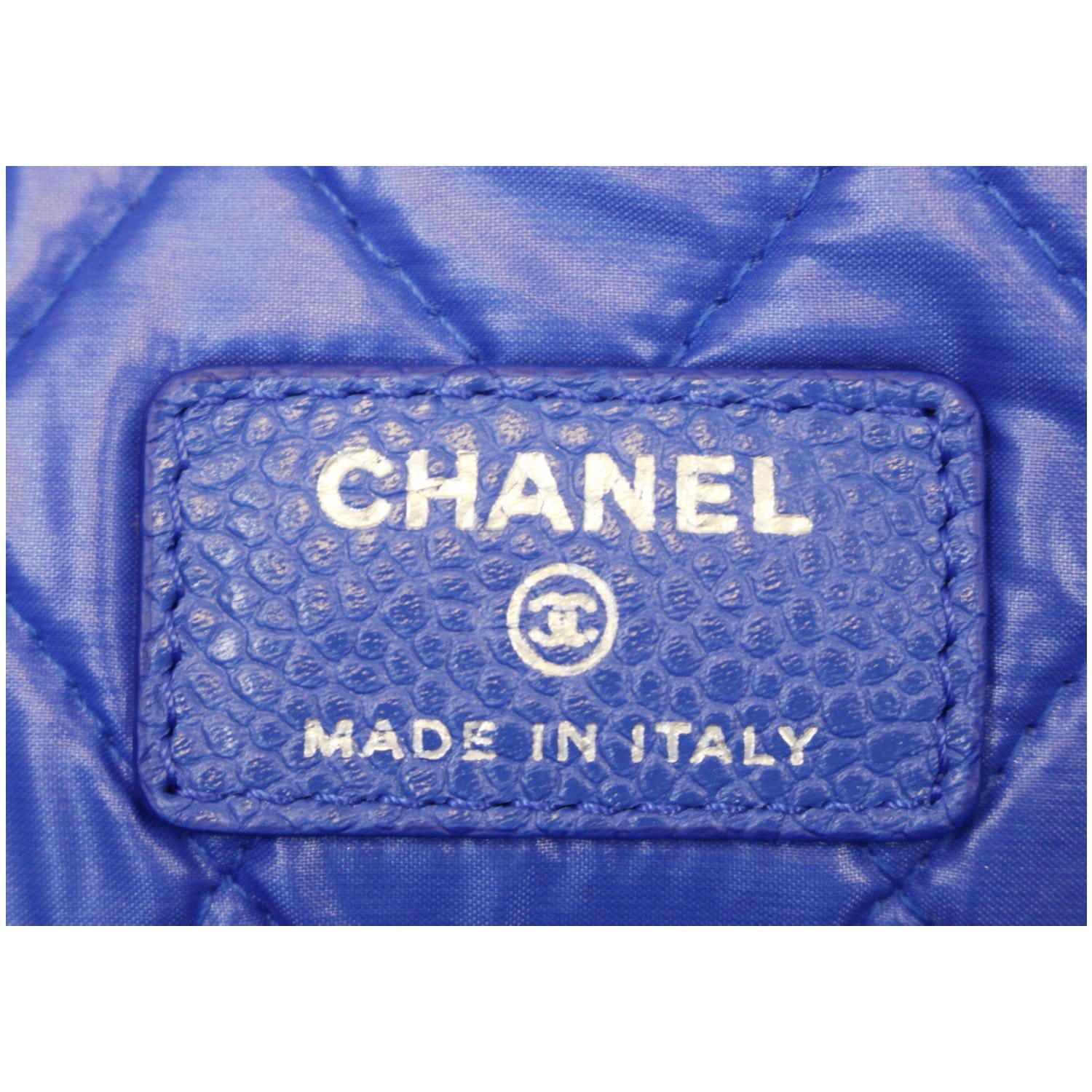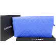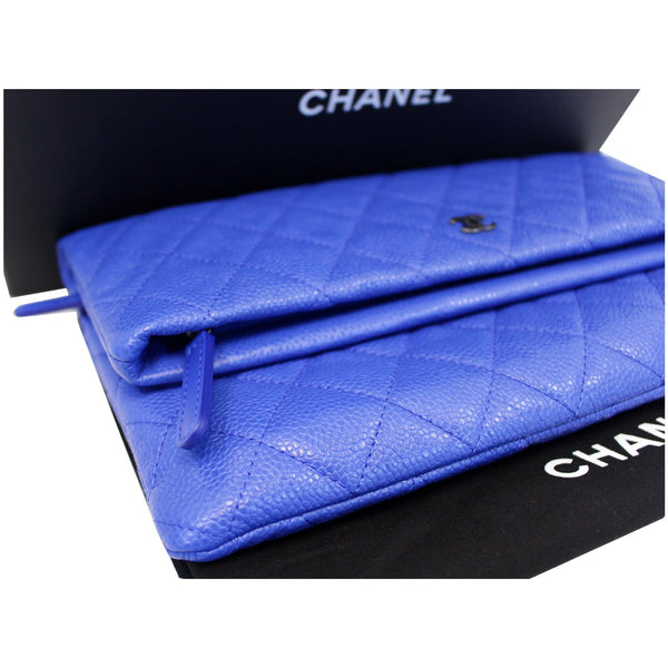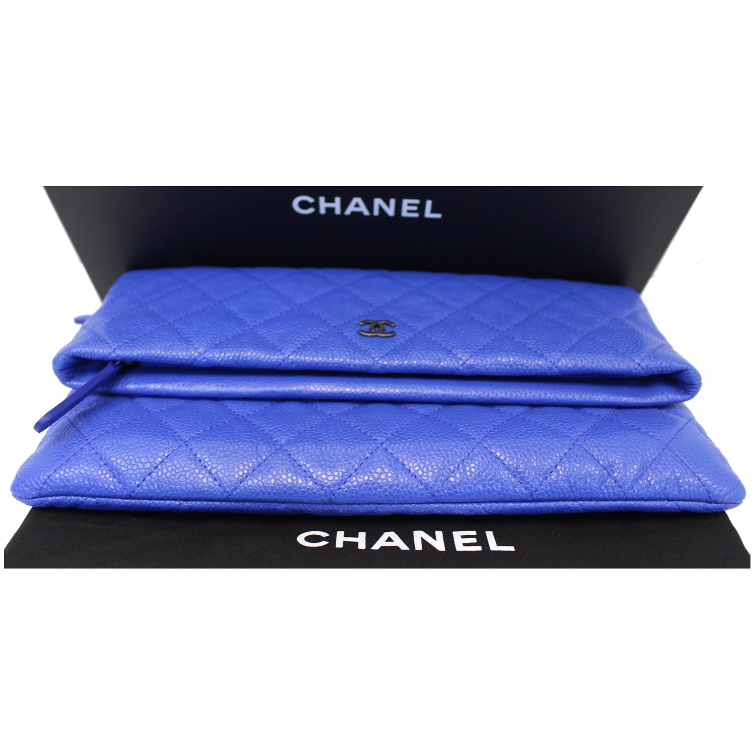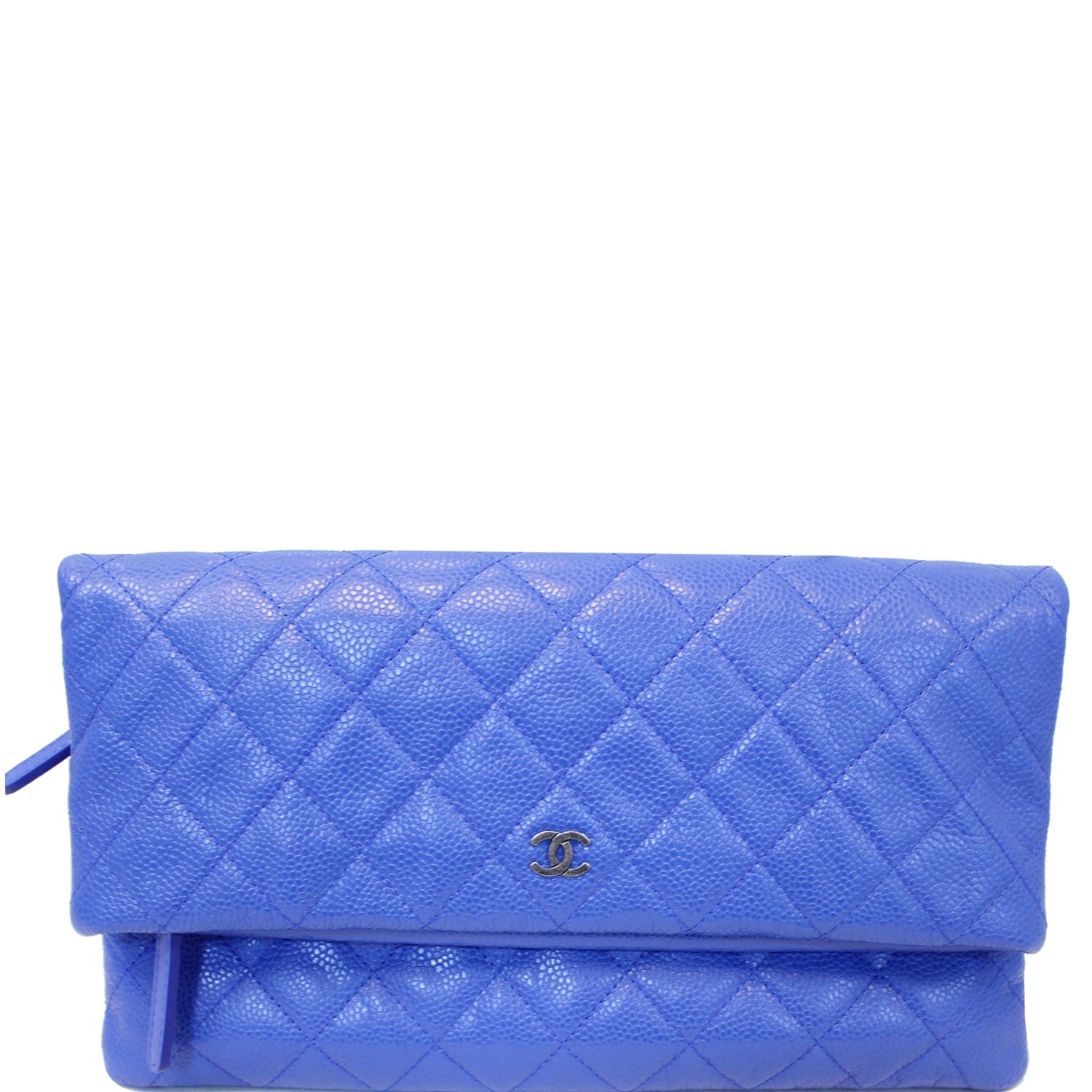 CHANEL Foldover Quilted Caviar Leather Clutch Bag Blue