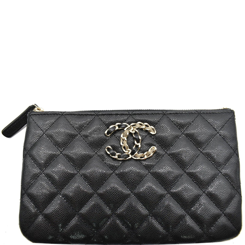 French New Wave CC Caviar Quilted Pouch Black