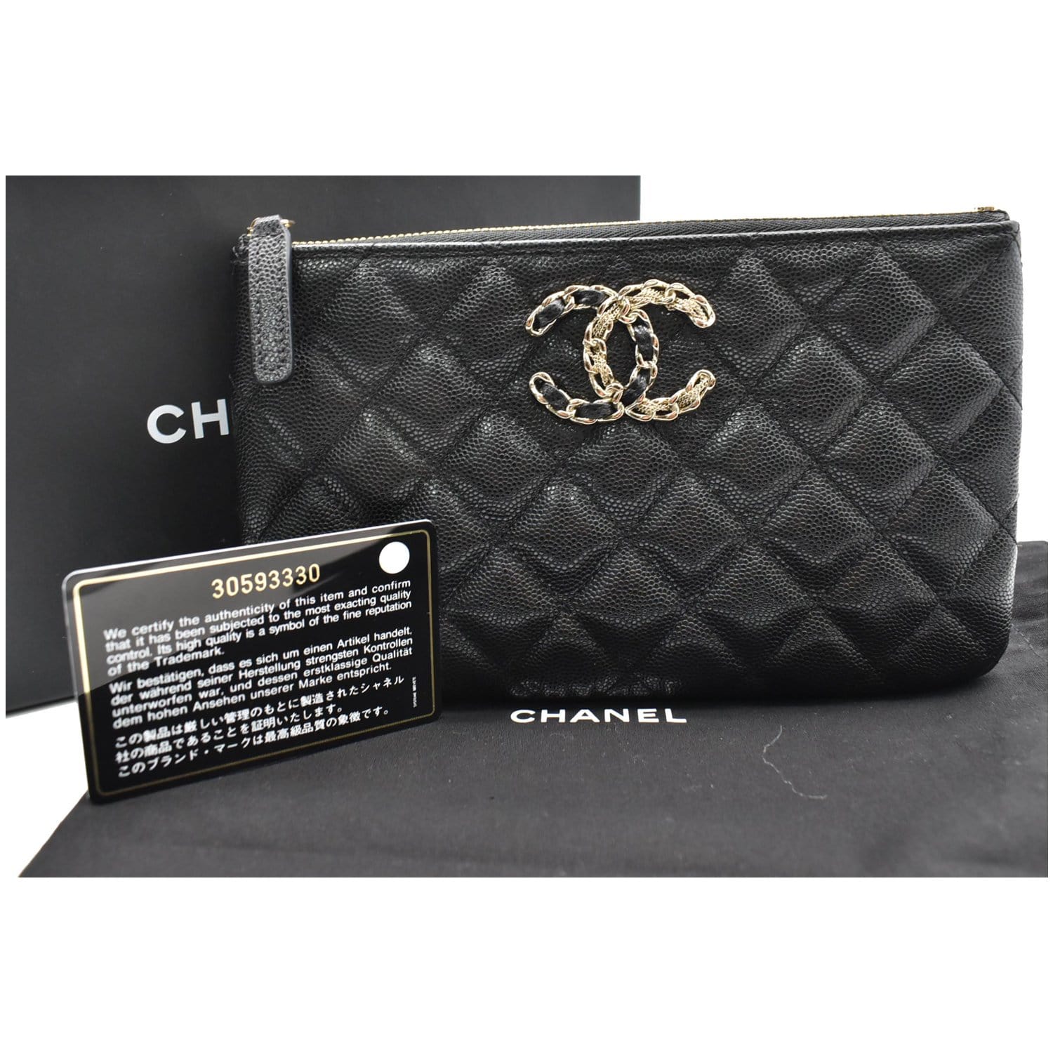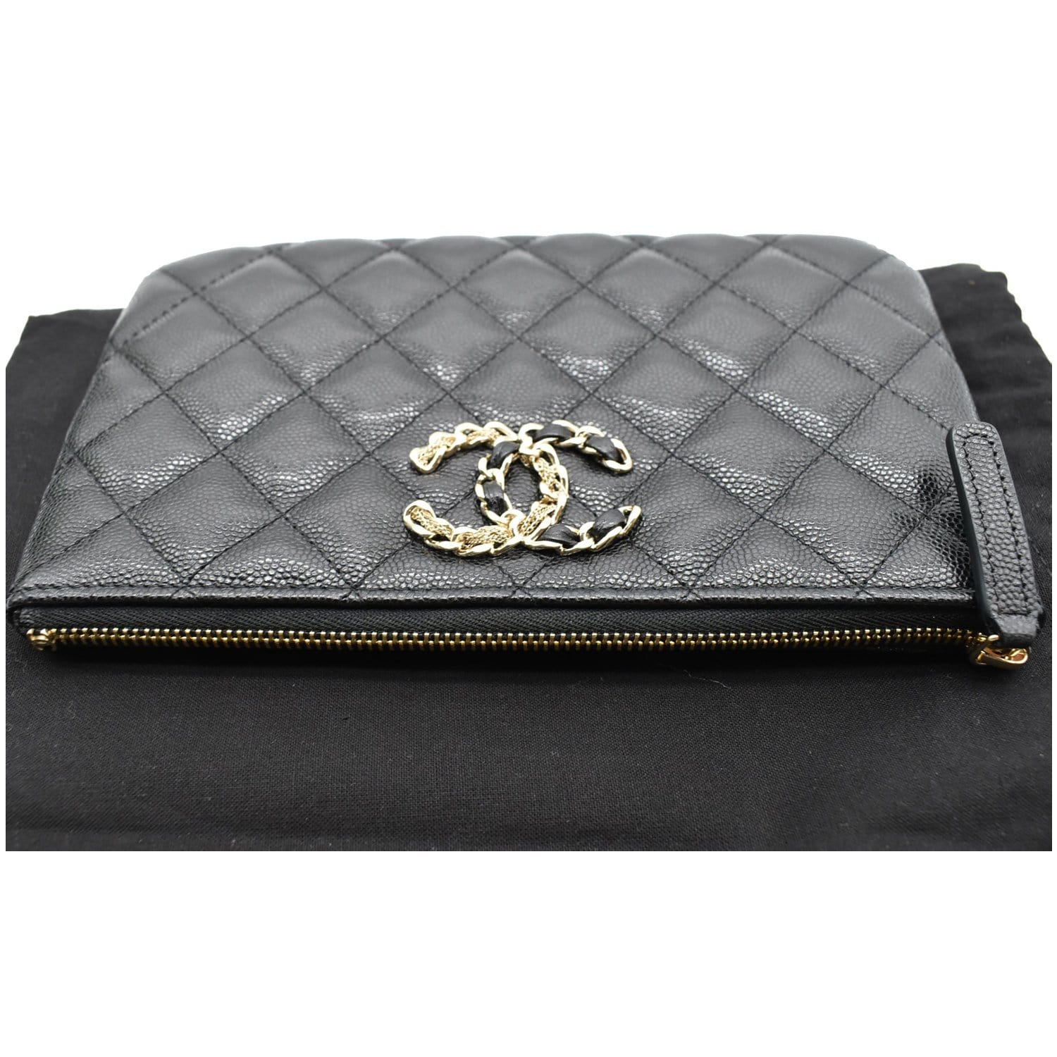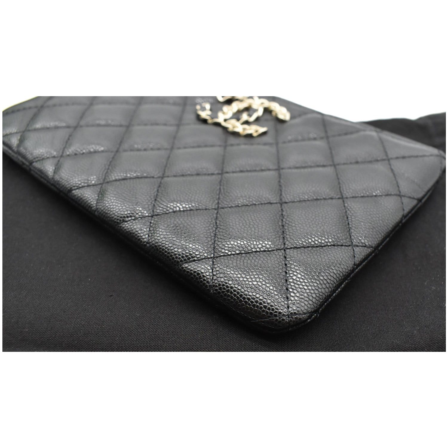 CHANEL French New Wave CC Caviar Quilted Pouch Black