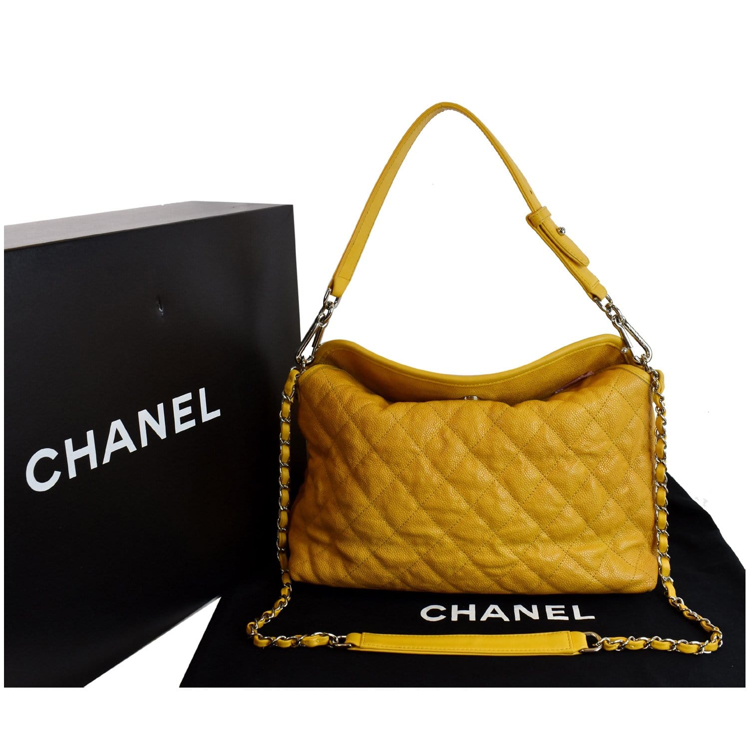 CHANEL French Riviera Quilted Caviar Leather Hobo Bag Yellow