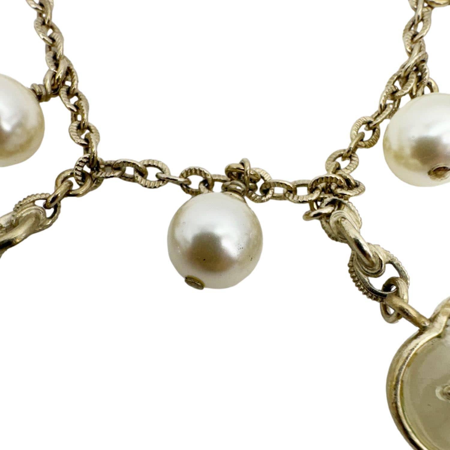 CHANEL Crystal Pearl Heart CC Charm Bracelet Off White