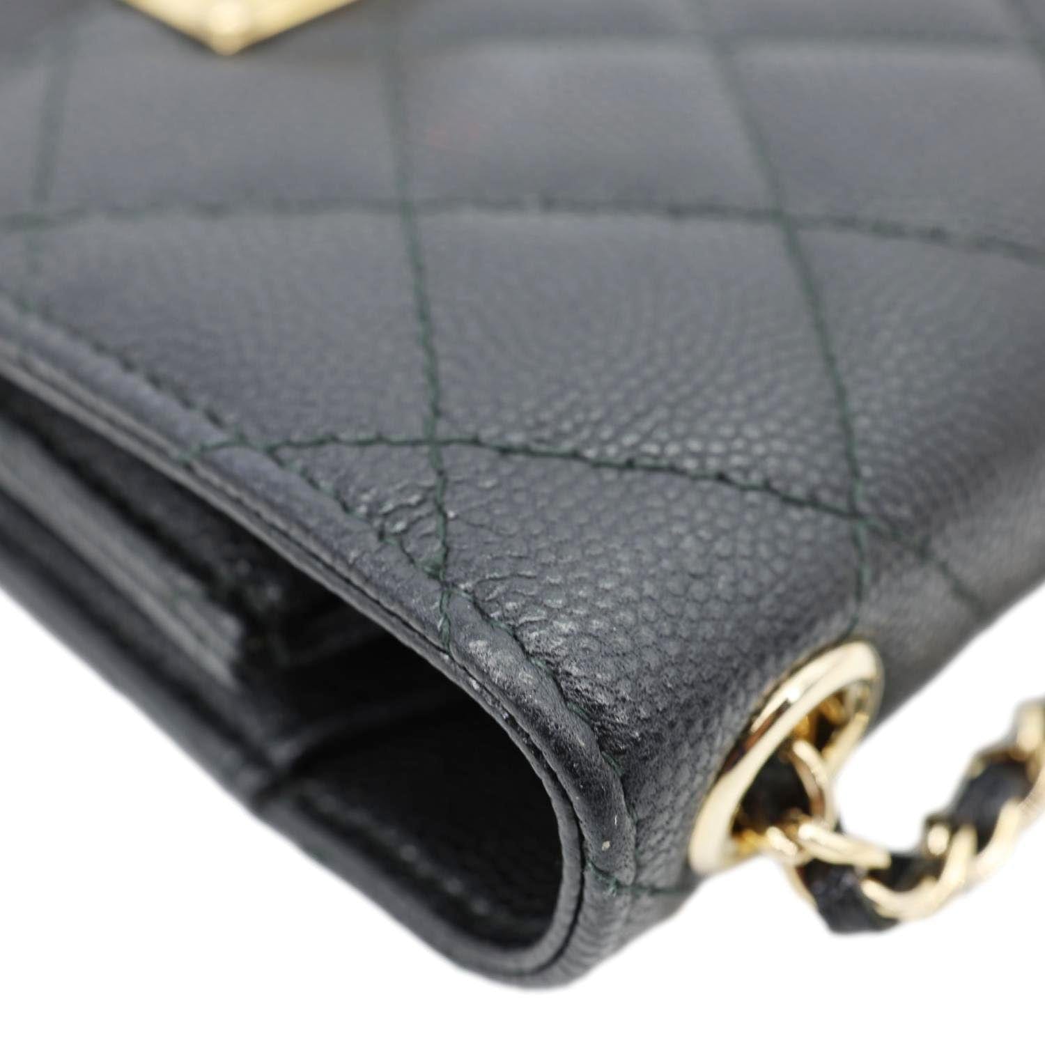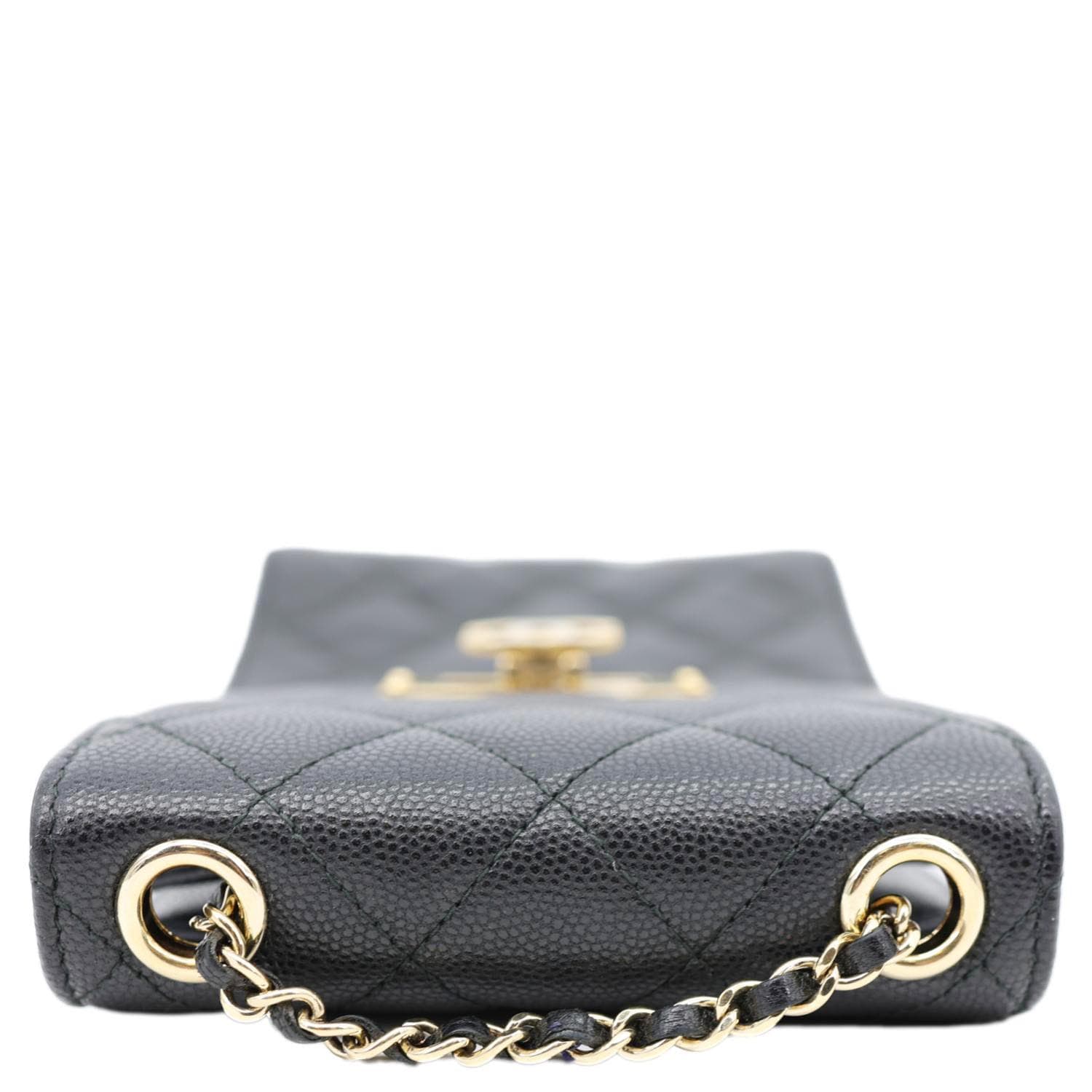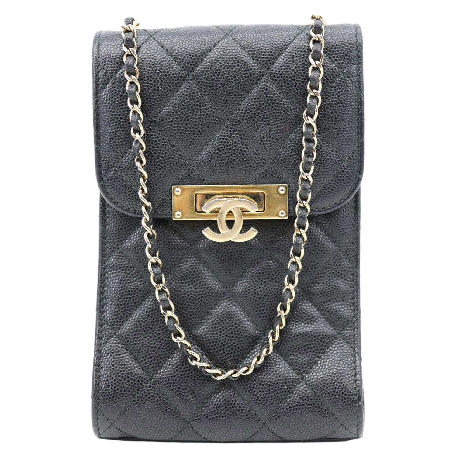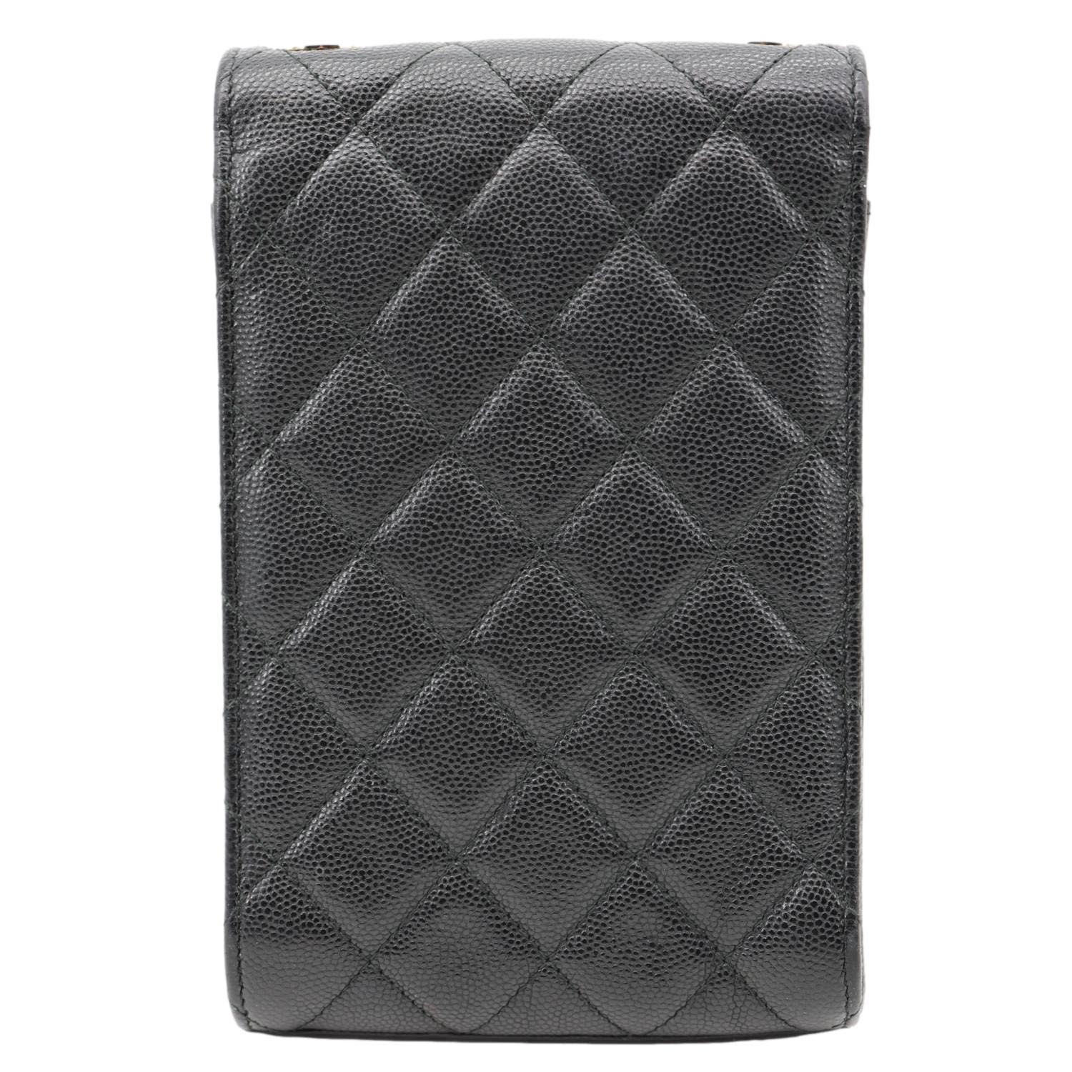 CHANEL Golden Class Quilted Caviar Leather Phone Holder Black