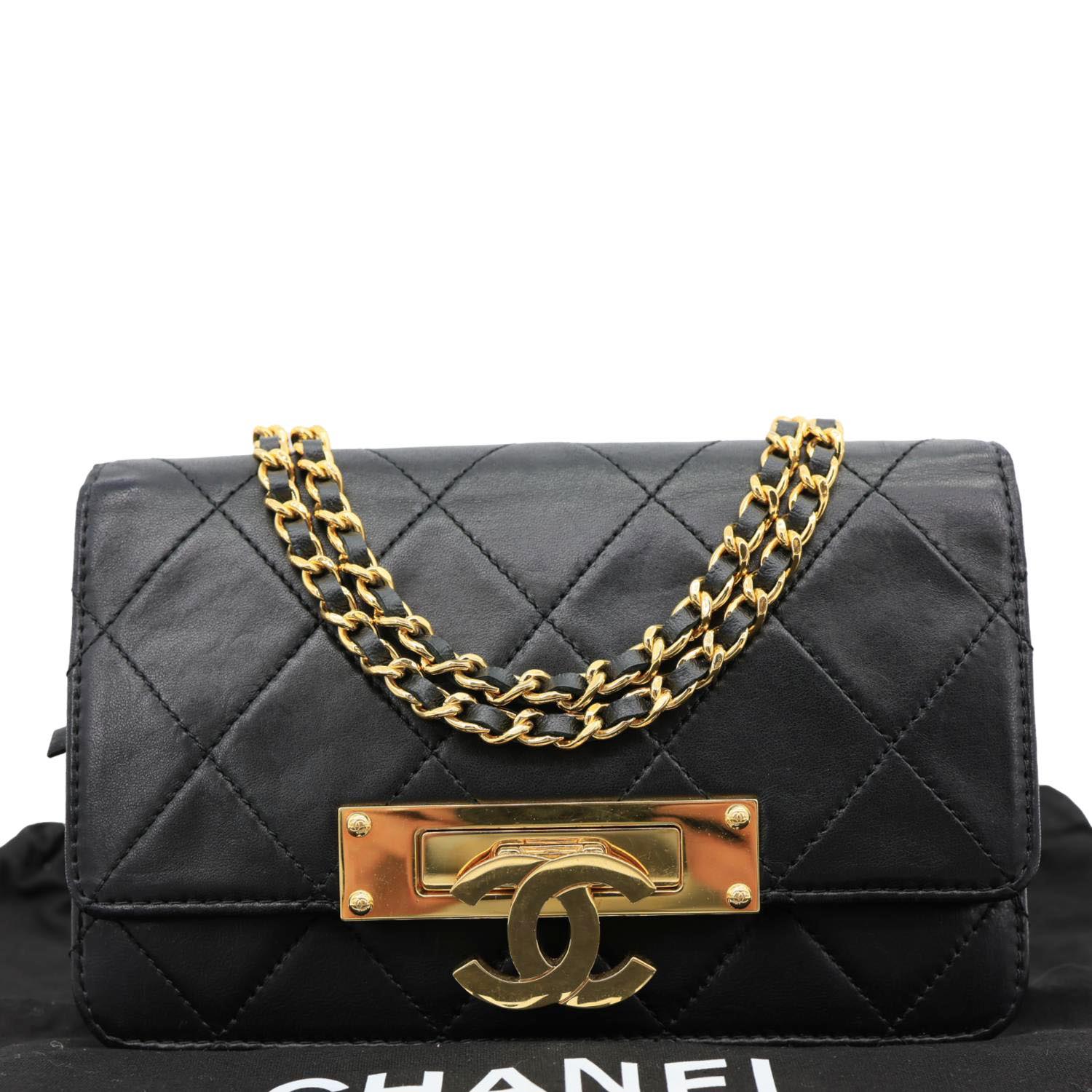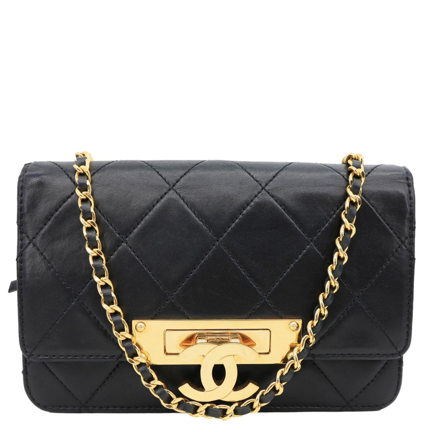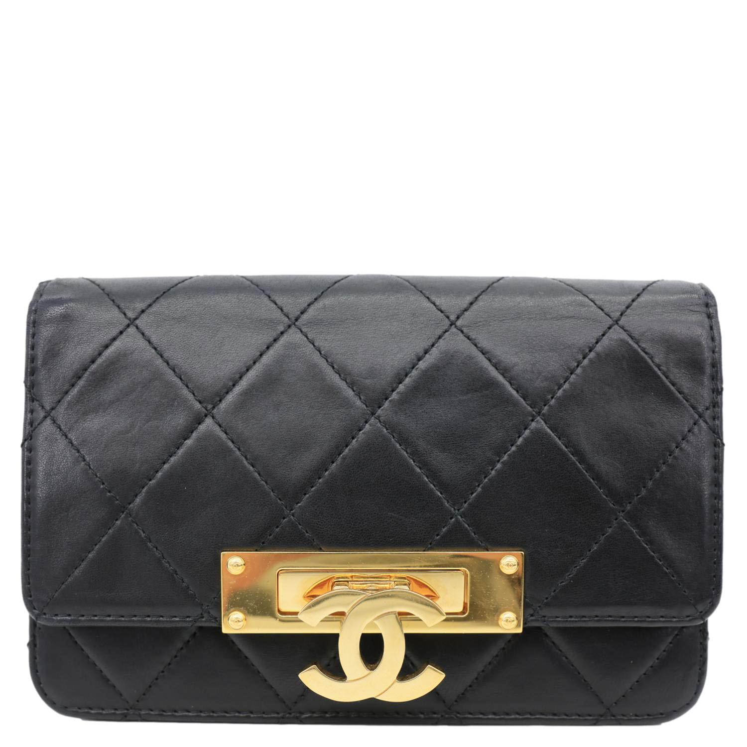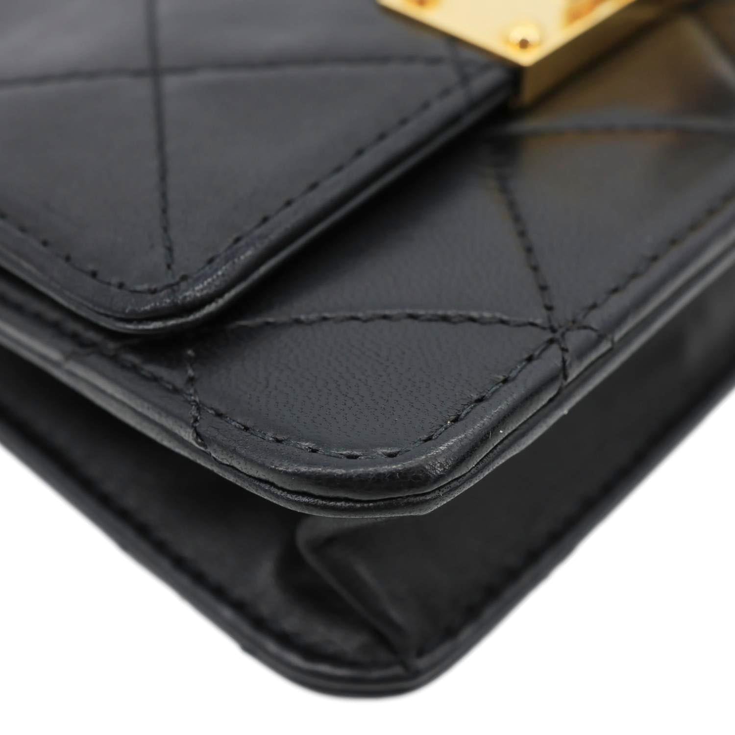 CHANEL Golden Class Quilted Leather Chain Wallet Crossbody Bag Black features classic quilted leather with gold-tone hardware and a sleek chain strap. Compact and stylish, it’s perfect for hands-free luxury with timeless Chanel elegance.