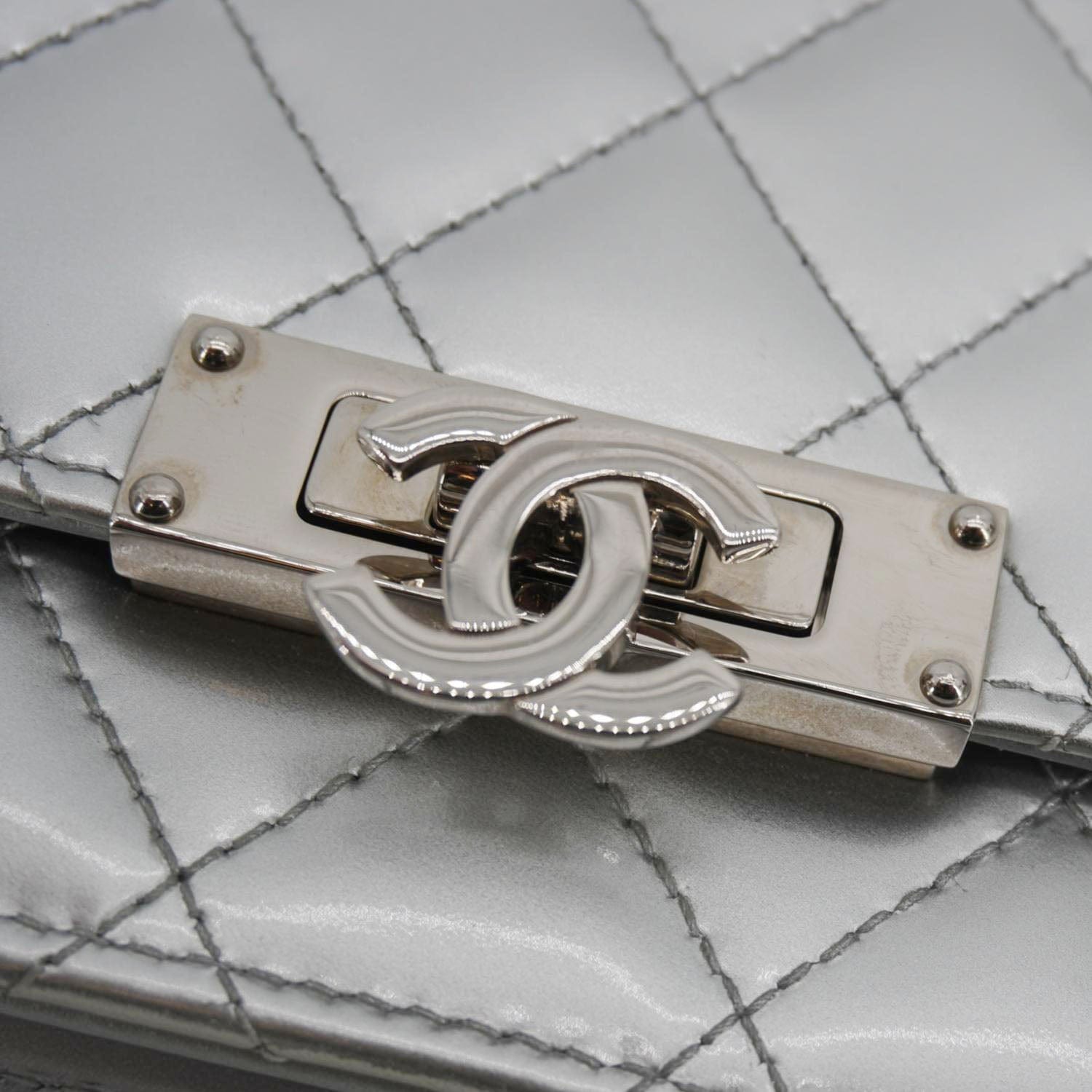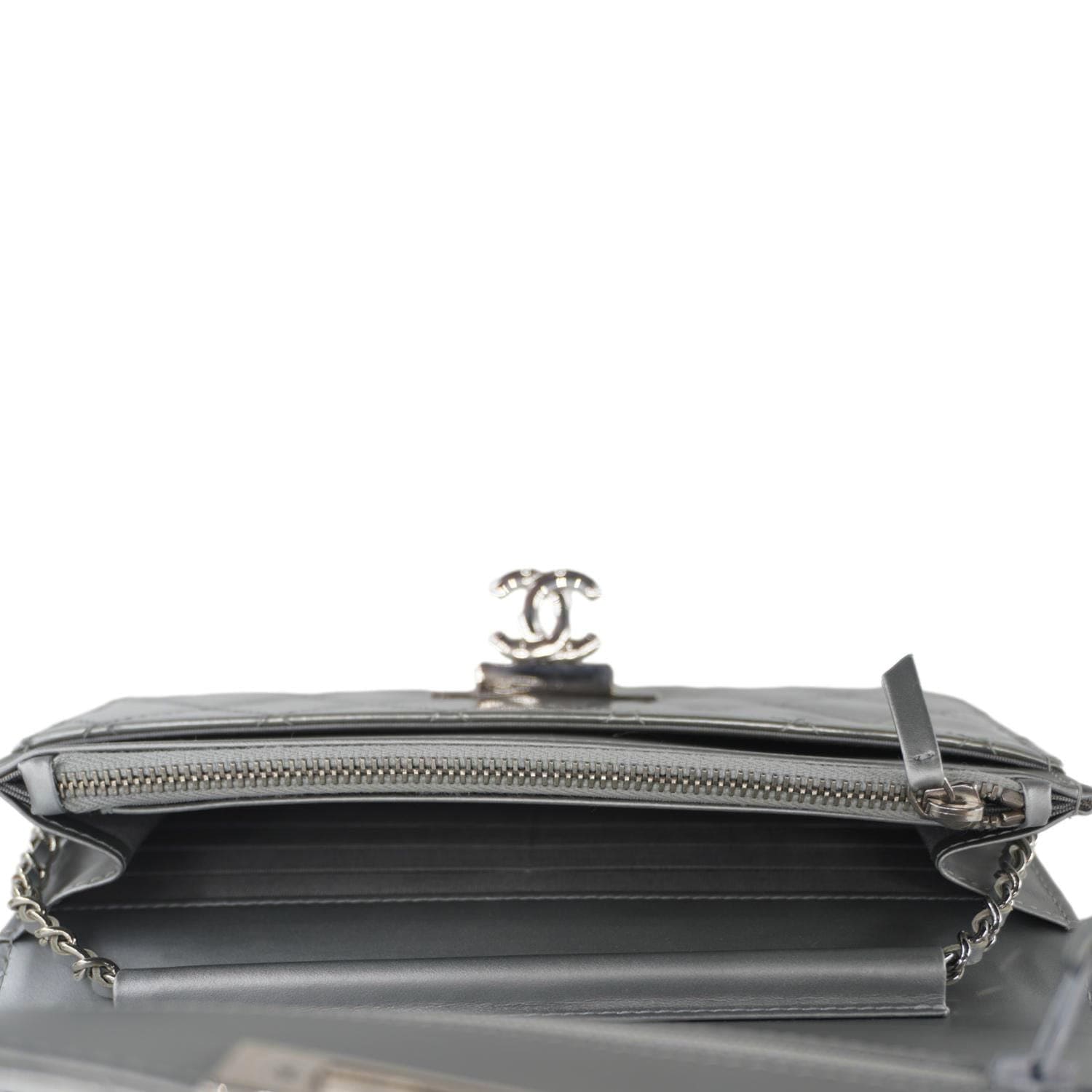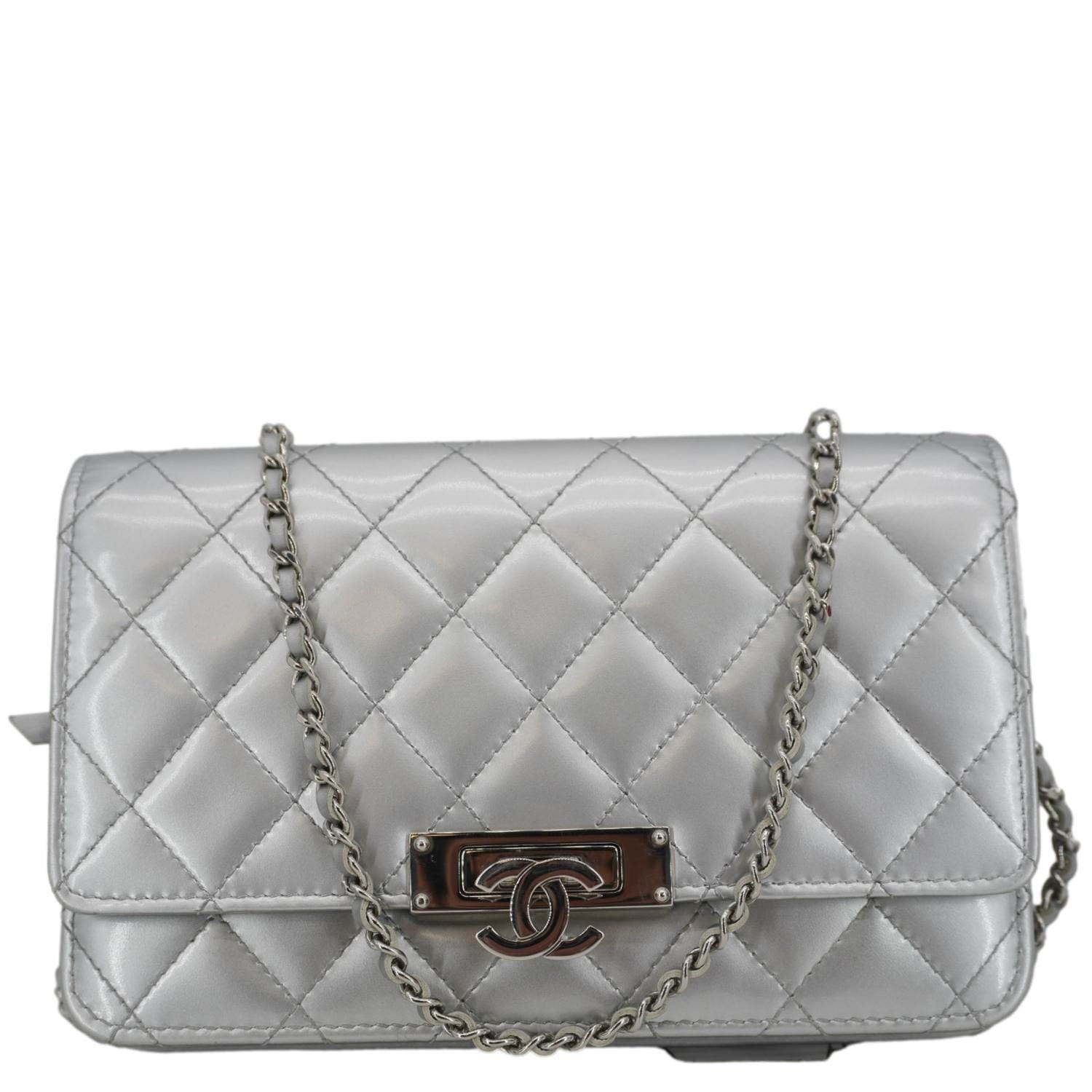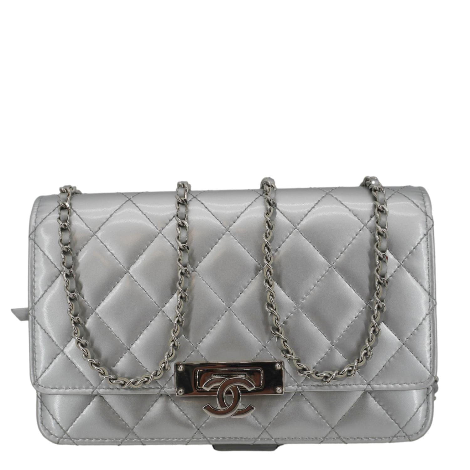 CHANEL Golden Class Quilted Leather Wallet on Chain Bag Silver