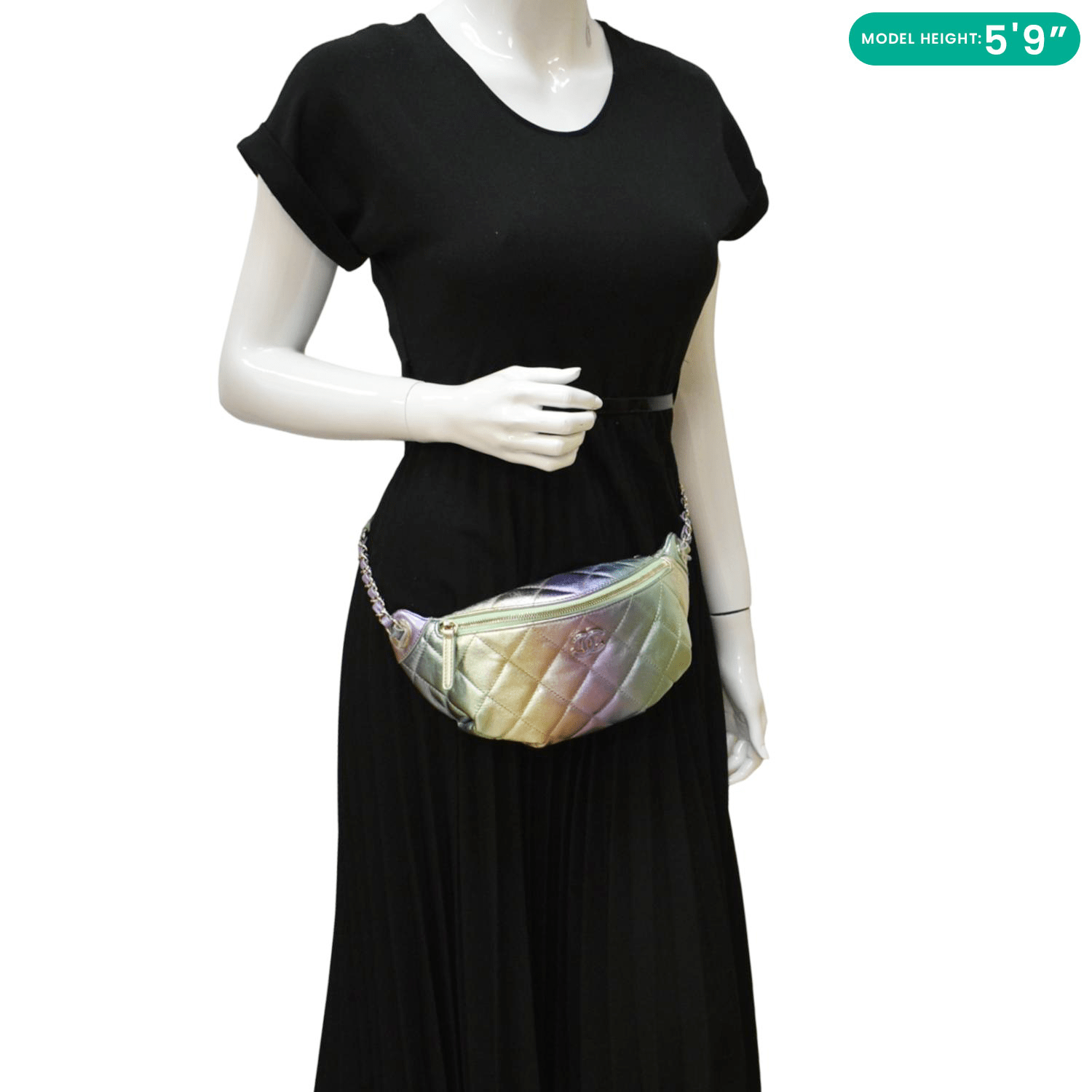 The Chanel Iridescent Rainbow Quilted Leather Bumbag in Multicolor showcases a vibrant, quilted leather design with an iridescent finish. This statement accessory combines luxury with practicality, offering a playful pop of color to any ensemble.