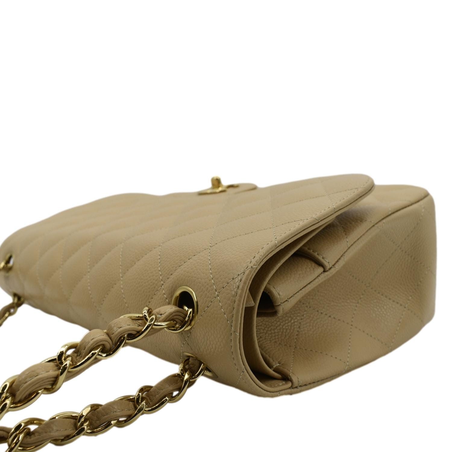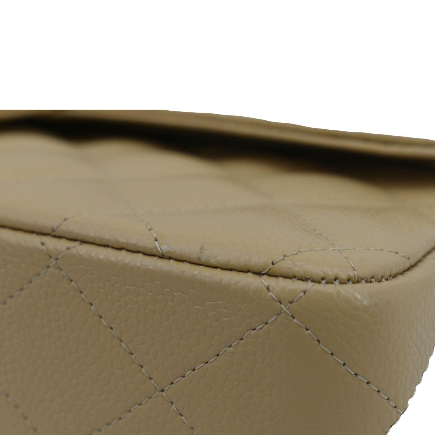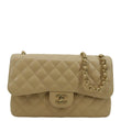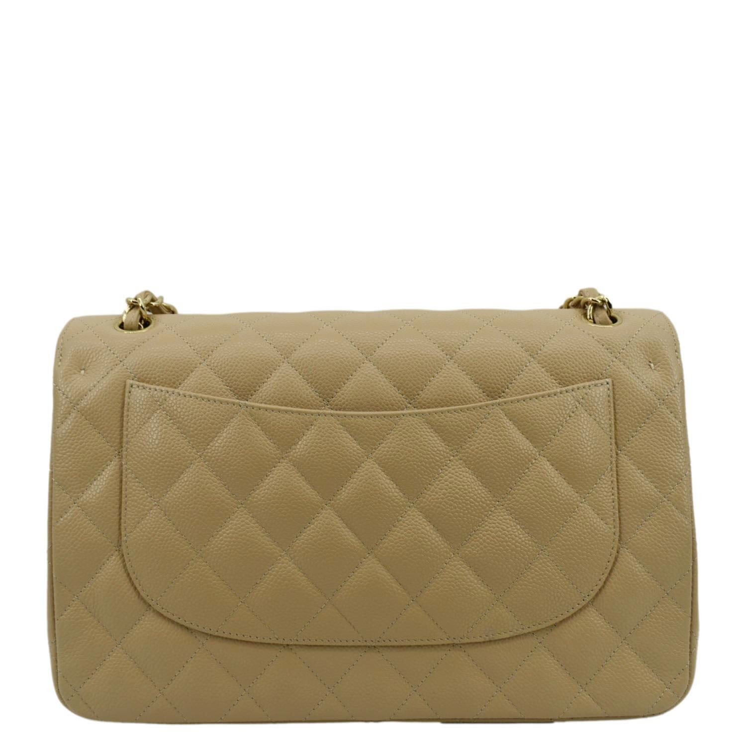 CHANEL Classic Jumbo Double Flap Quilted Caviar Leather Shoulder Bag Beige