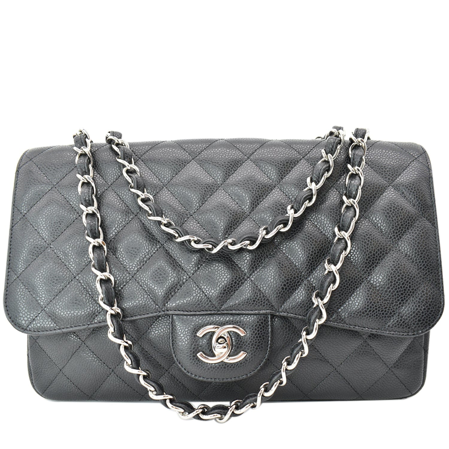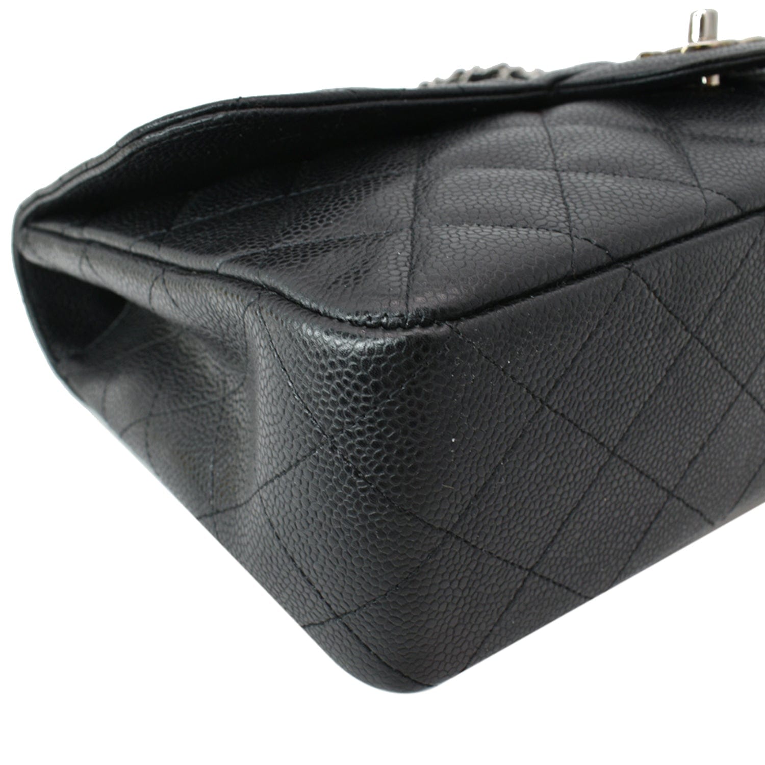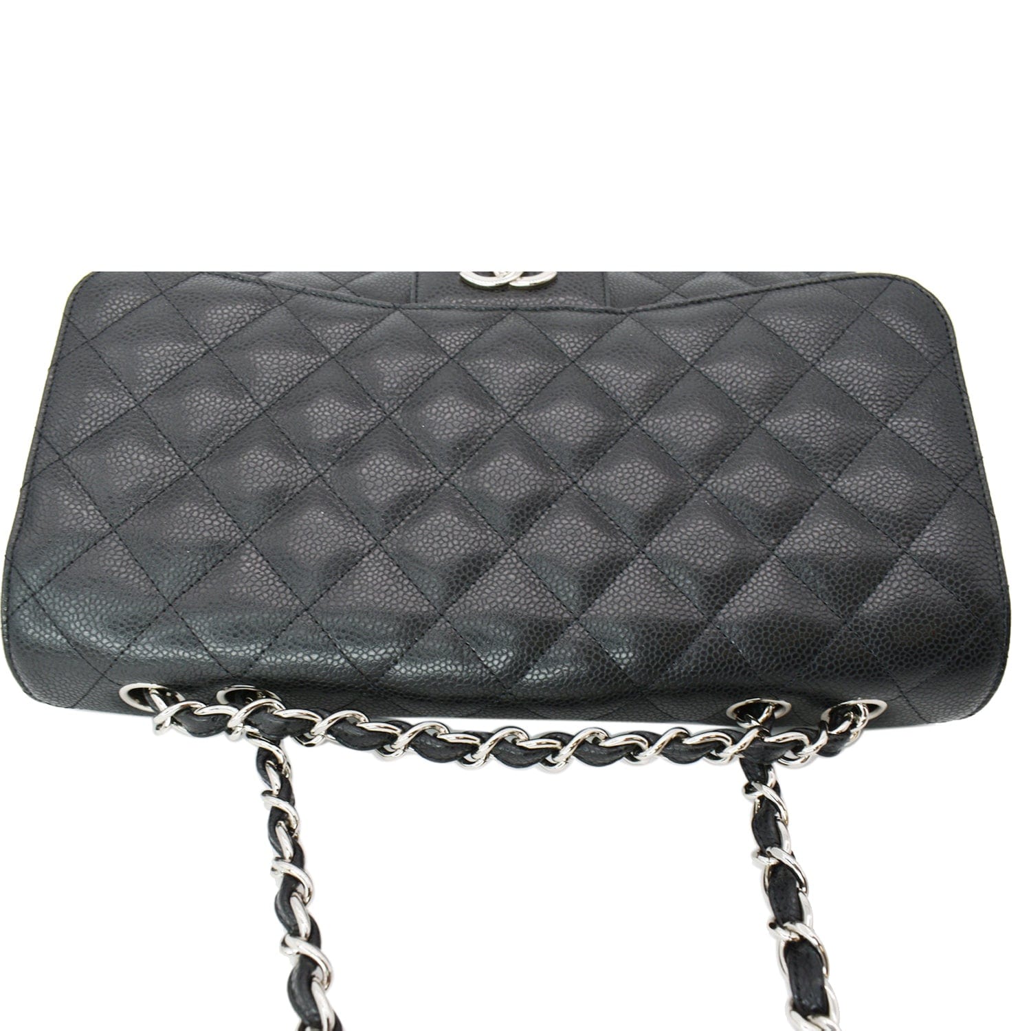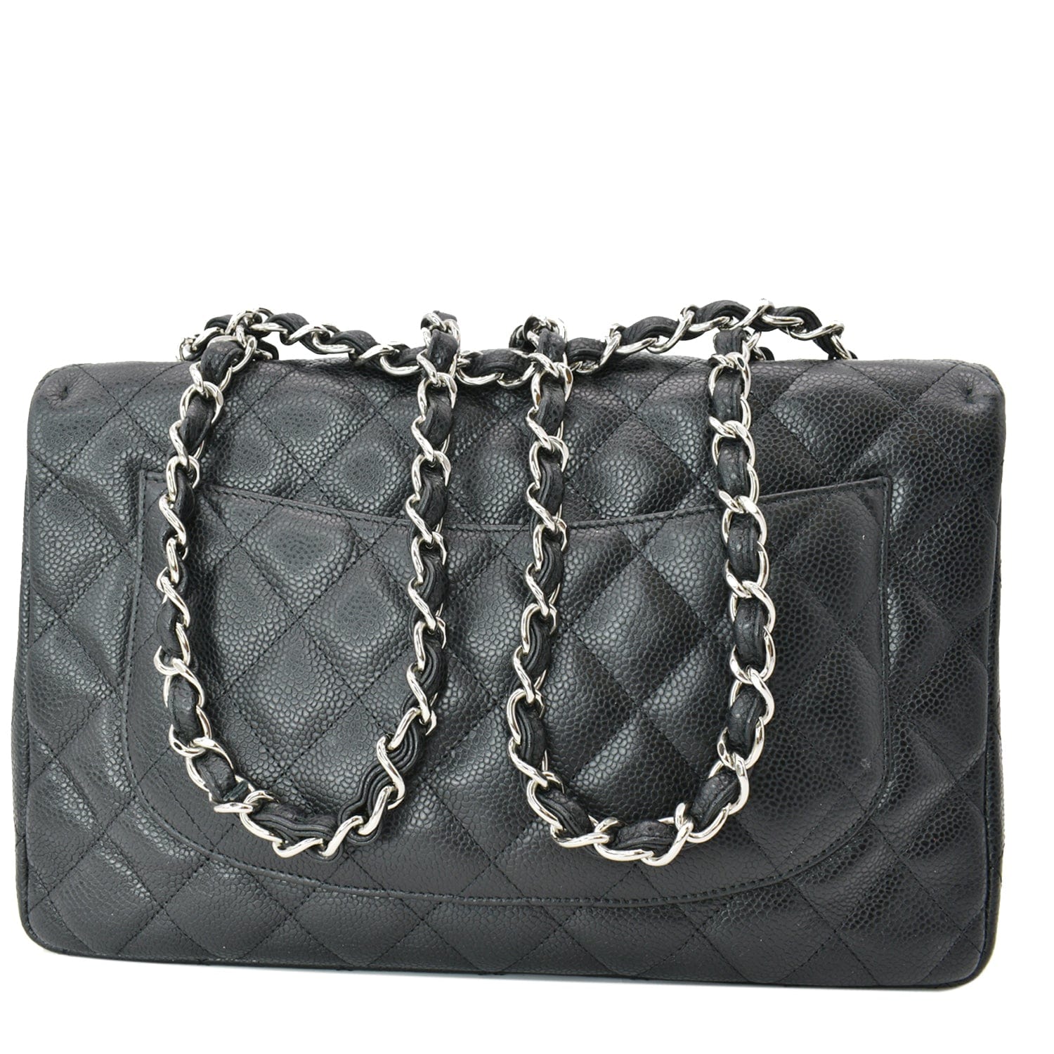 Jumbo Classic Single Flap Caviar Leather Shoulder Bag Black