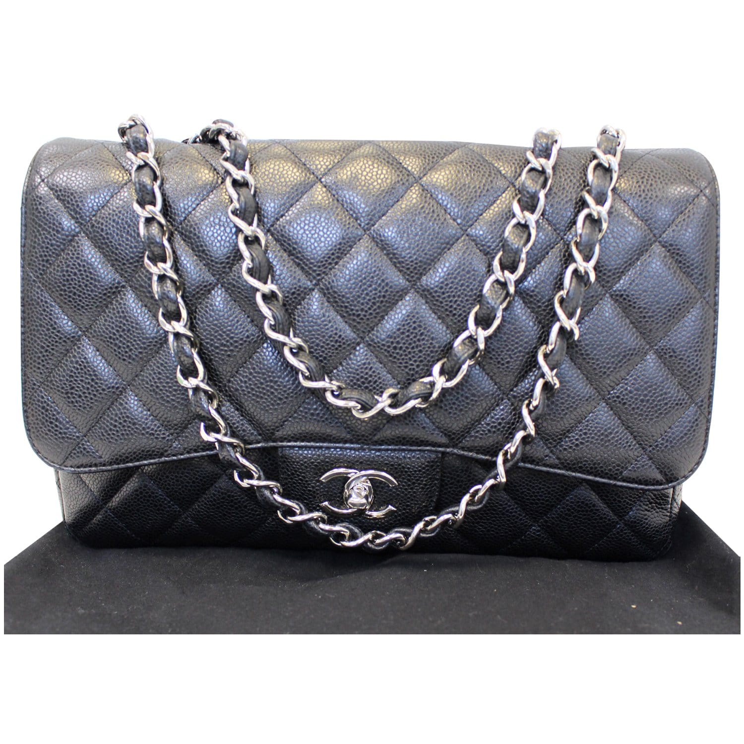 CHANEL Jumbo Classic Single Flap Caviar Leather Shoulder Bag Black