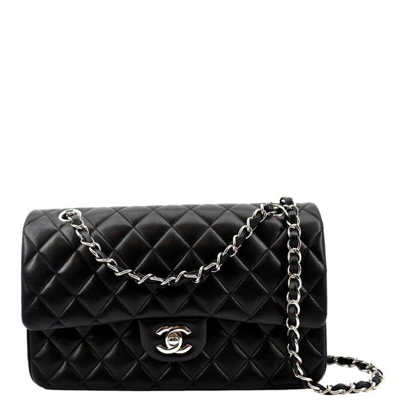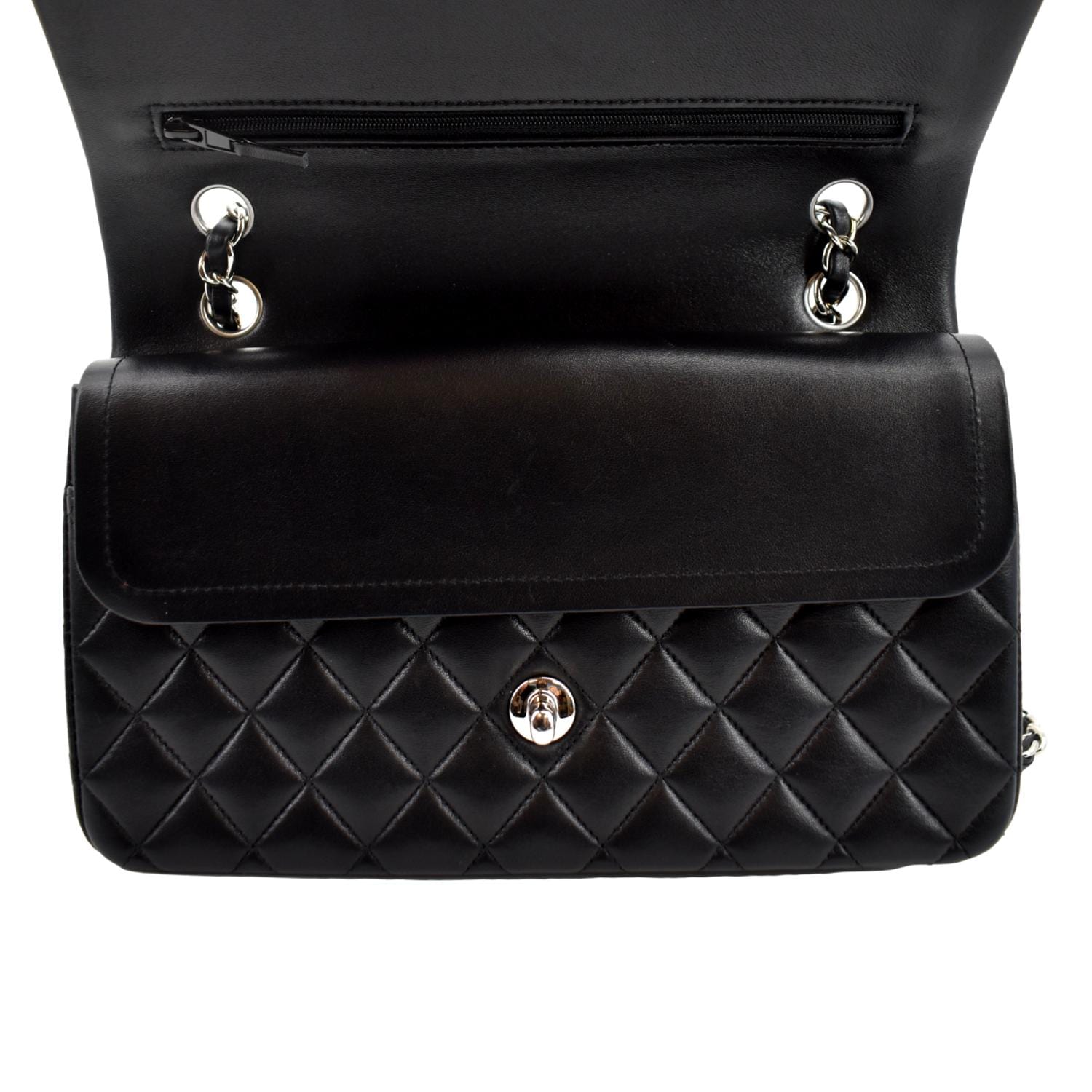 CHANEL Classic Medium Double Flap Quilted Leather Shoulder Bag Black