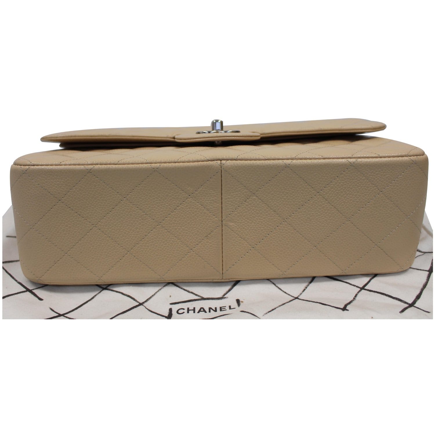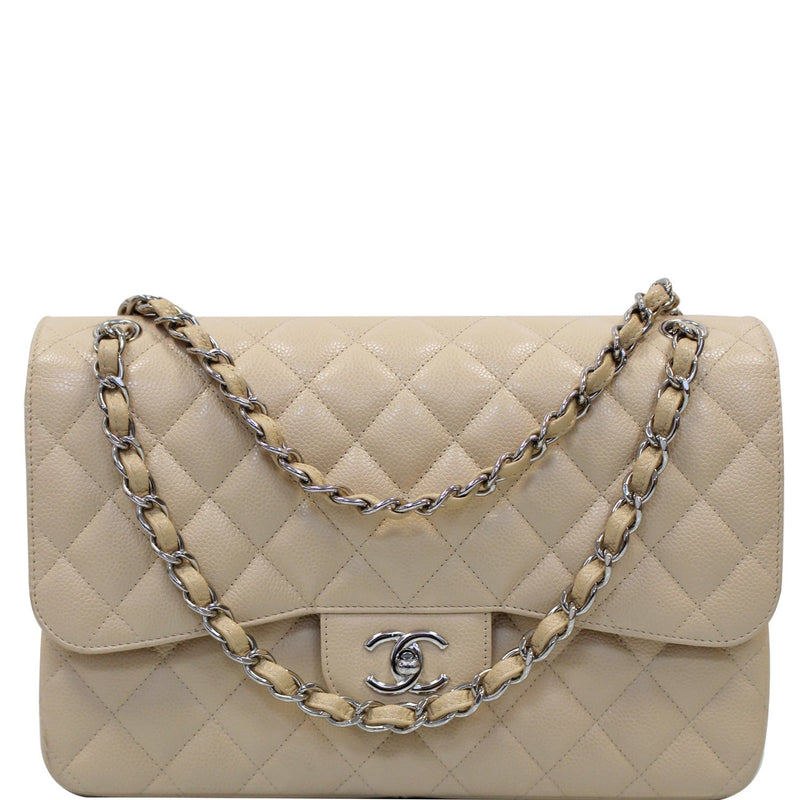 CHANEL Jumbo Double Flap Caviar Leather Shoulder Bag Beige