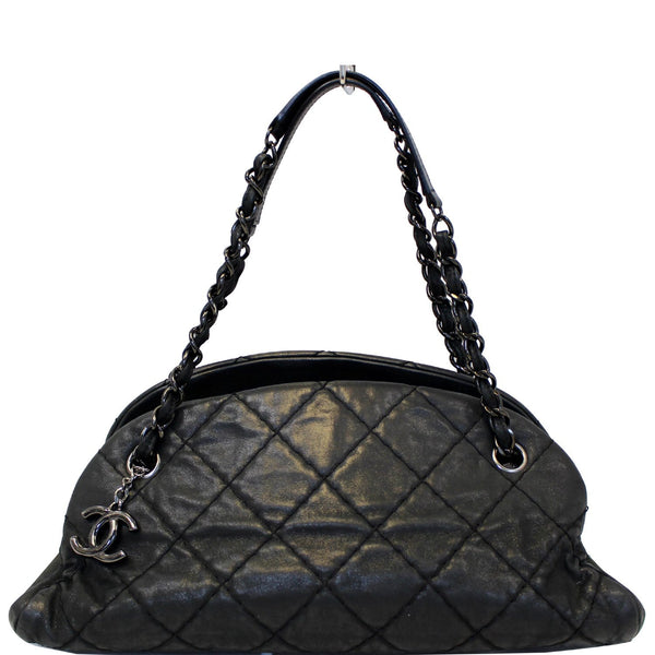 CHANEL Just Mademoiselle Calfskin Leather Bowling Bag Black