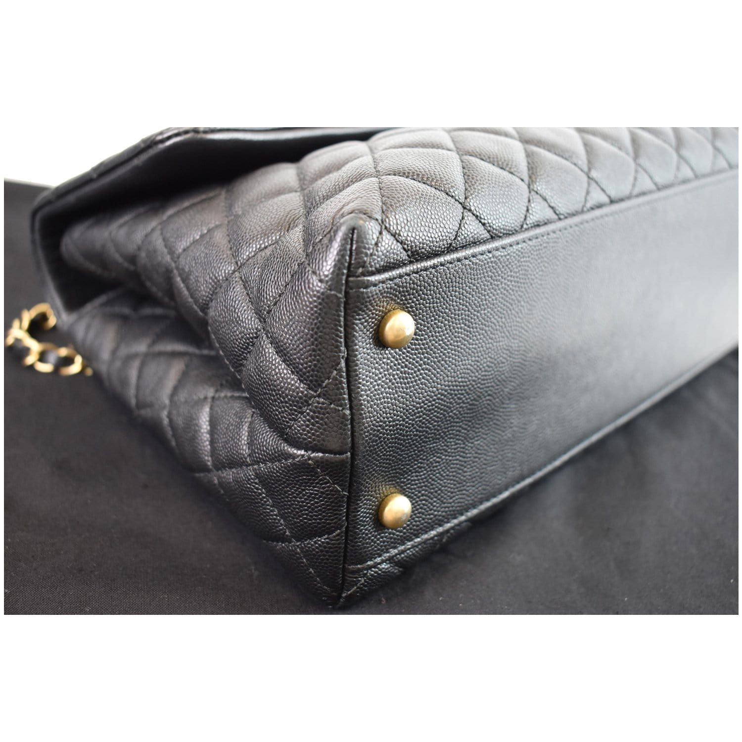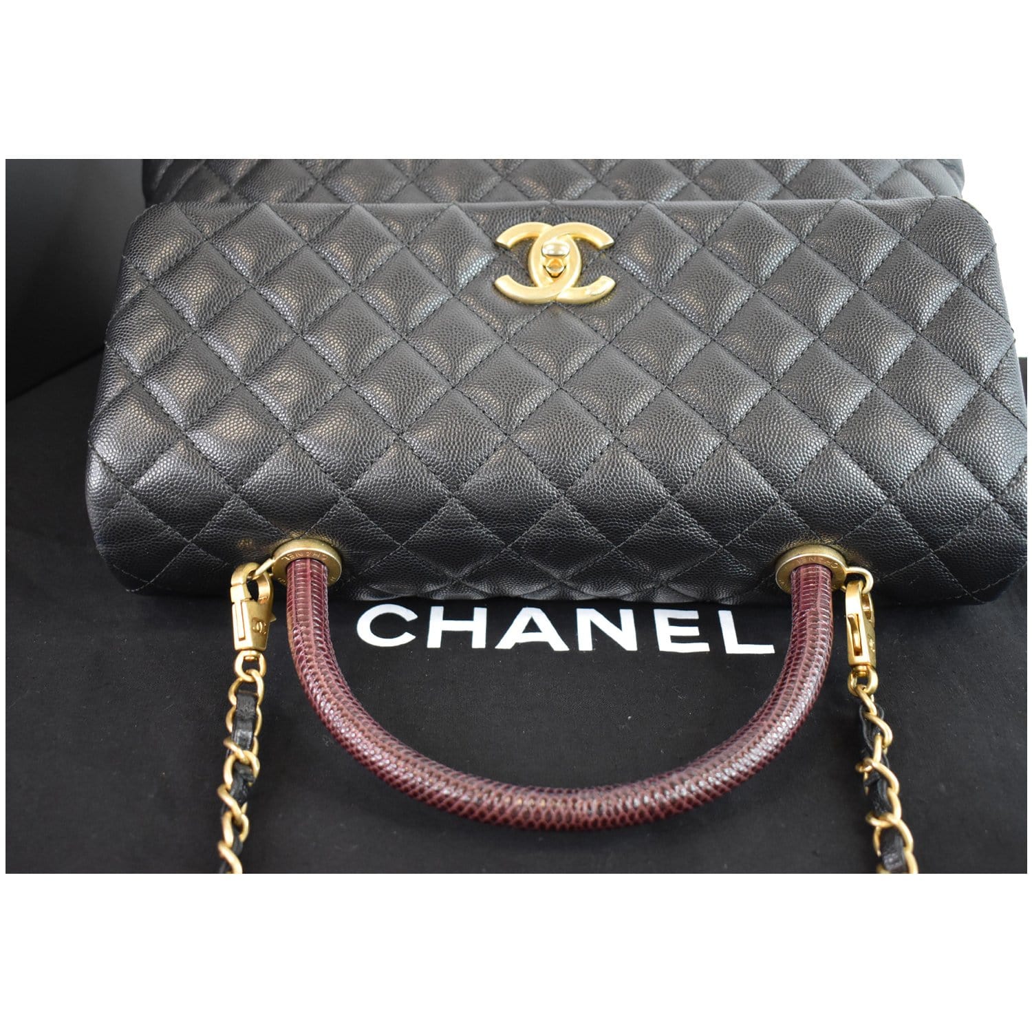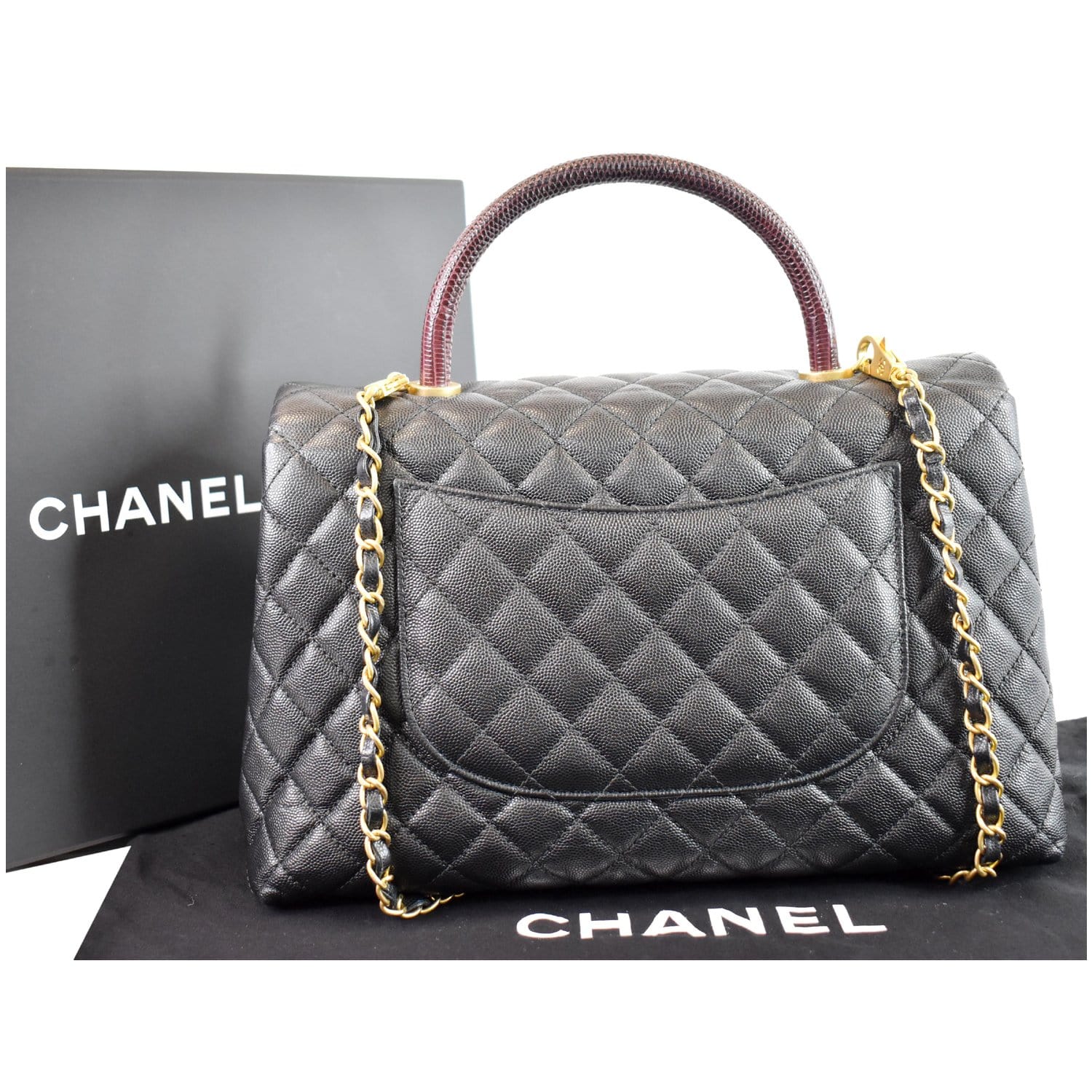 CHANEL Medium Coco Quilted Caviar Lizard Handle Shoulder Bag Black