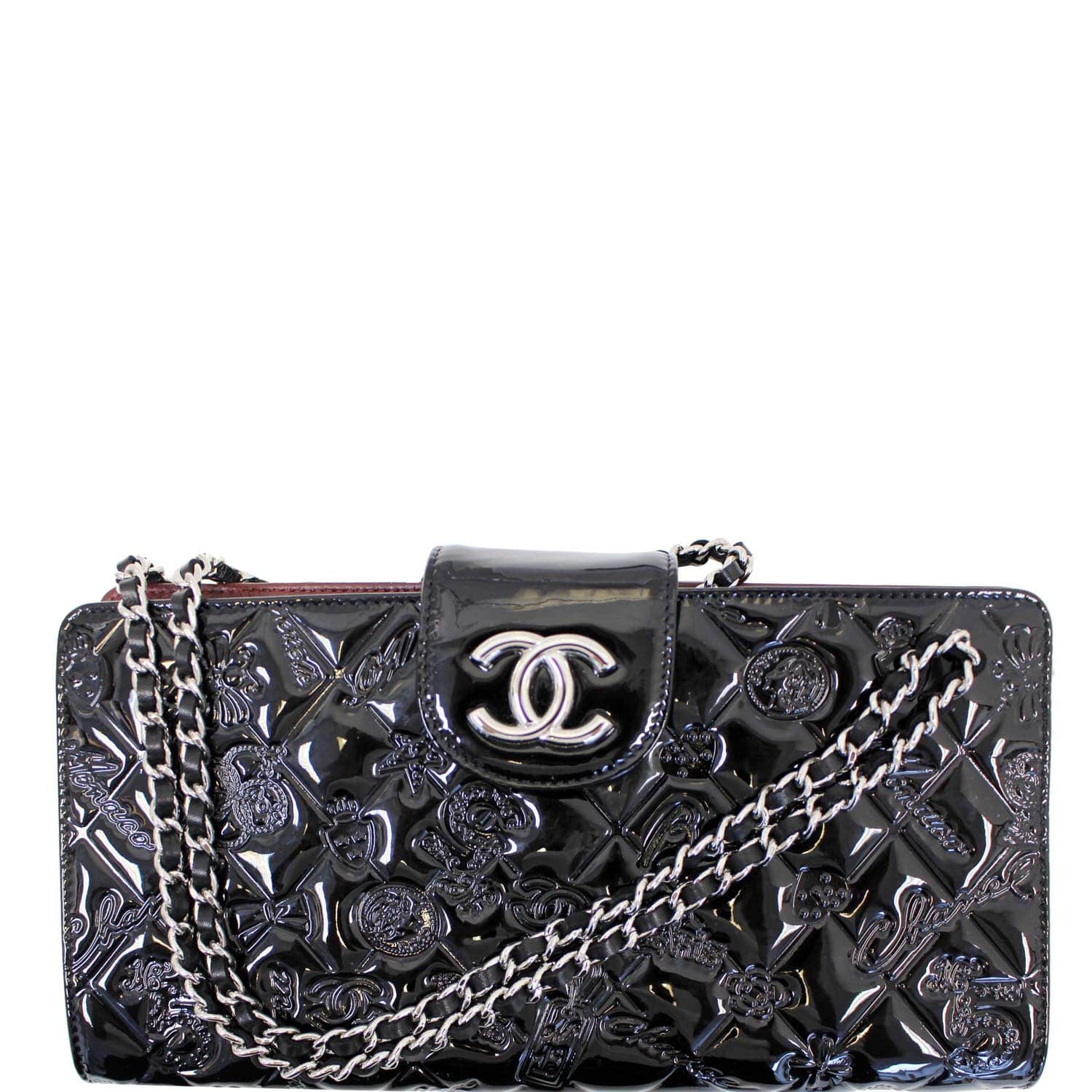 CHANEL Lucky Symbols Pochette Patent Leather Wallet on a Chain Black