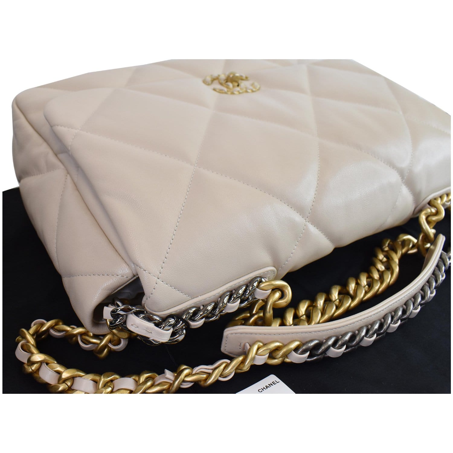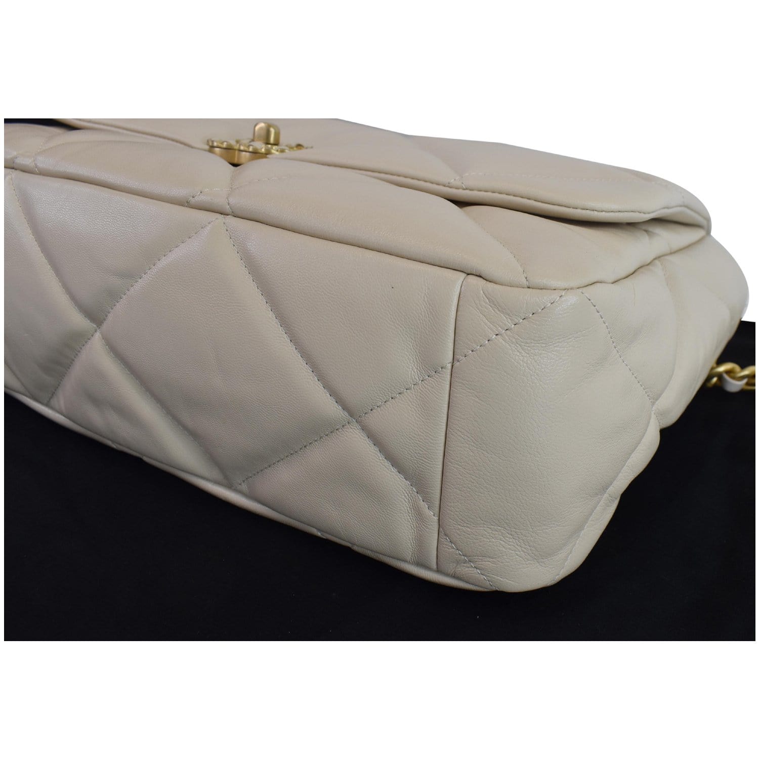 CHANEL Maxi 19 Quilted Goatskin Leather Shoulder Bag Beige