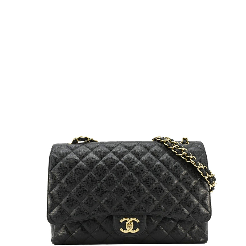 CHANEL Maxi Double Flap Leather Shoulder Bag Black