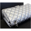 Jumbo Calfskin Leather Double Flap Silver Shoulder Bag