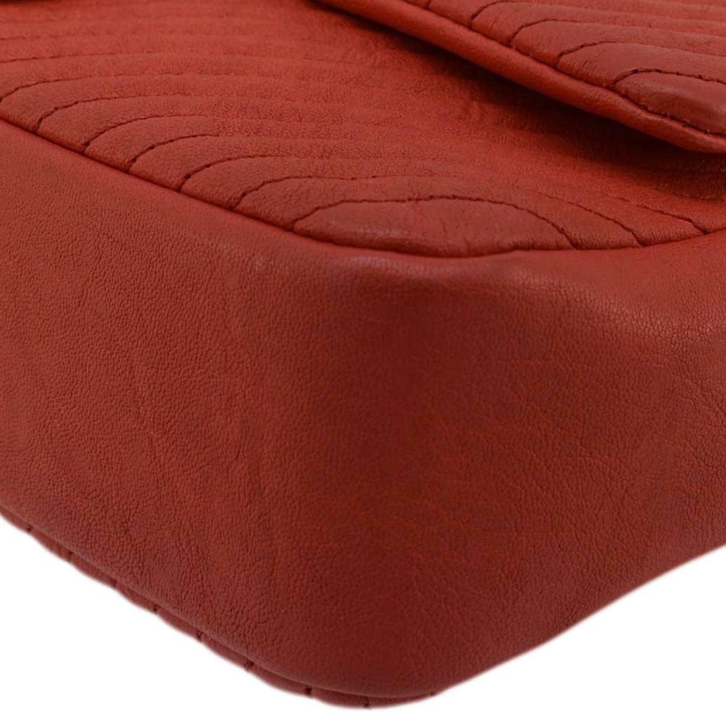 CHANEL Medallion Charm Flap Medium Wrinkled Chevron Leather Crossbody Bag Red