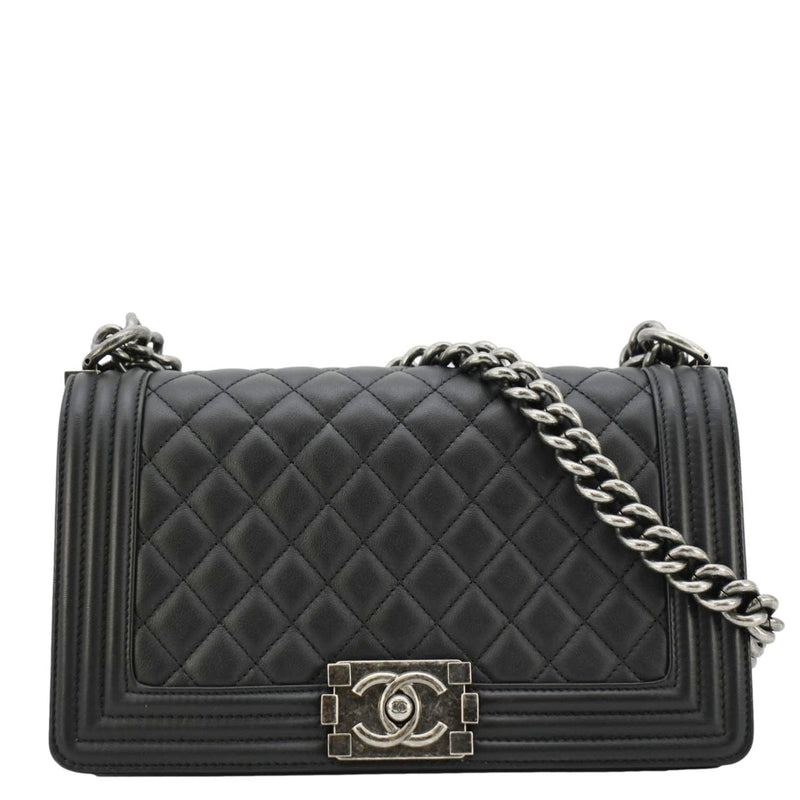 CHANEL Boy Flap Medium Quilted Leather Shoulder Bag Black