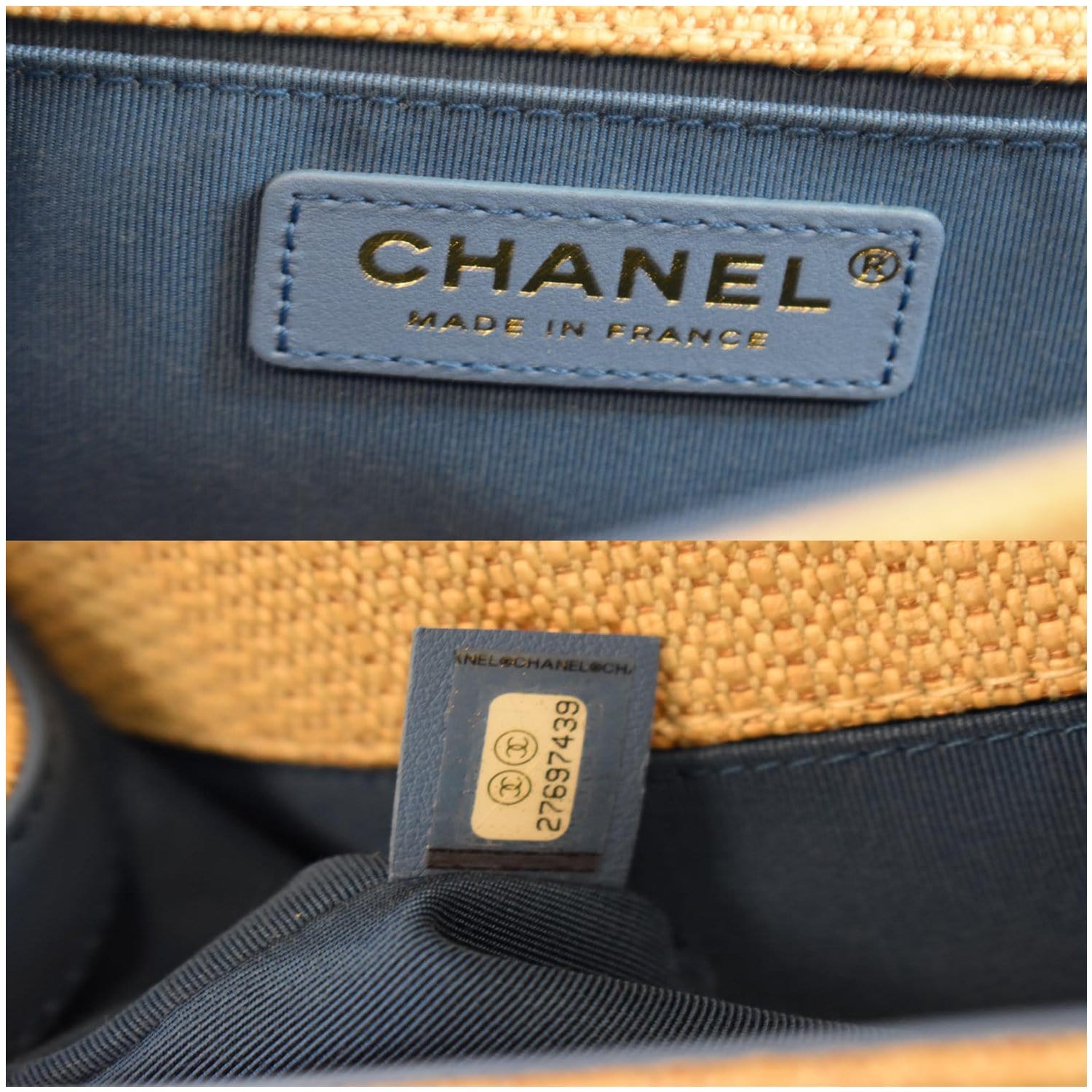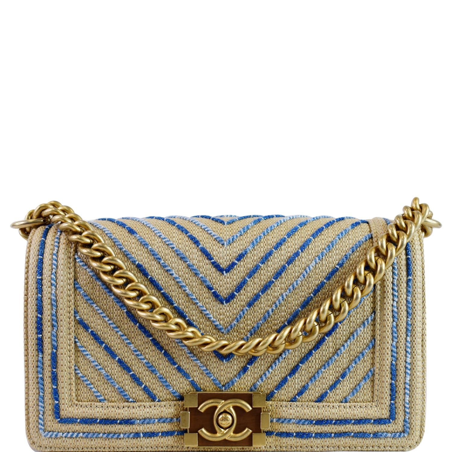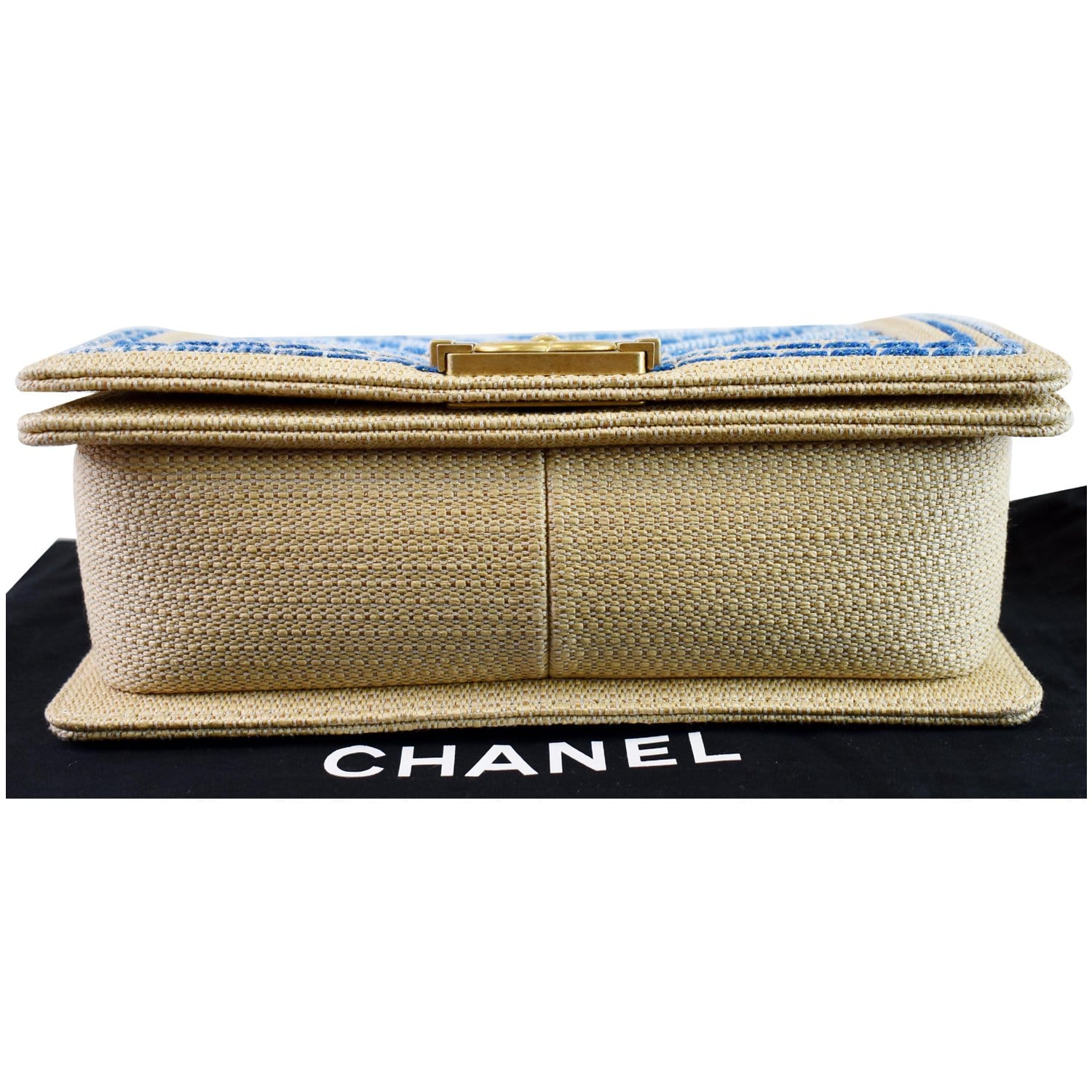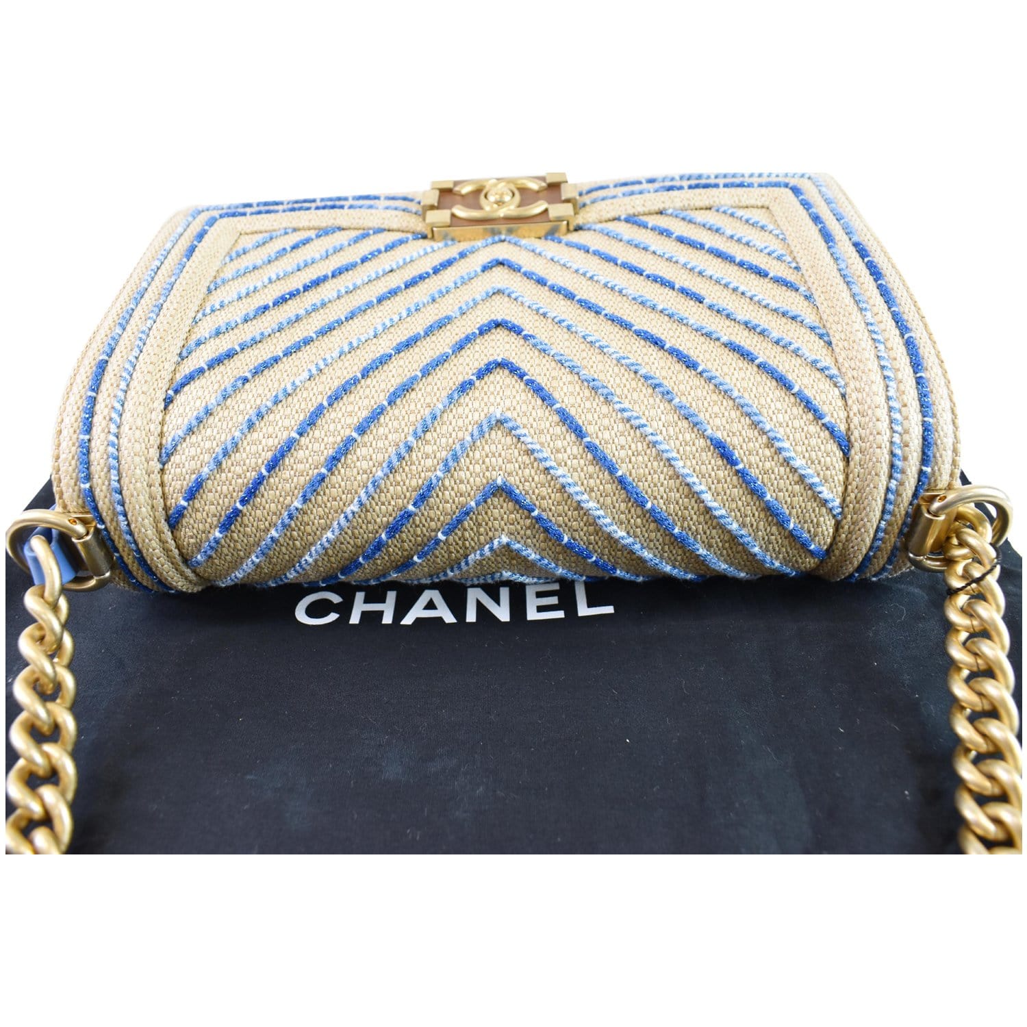 CHANEL Medium Boy Chevron Cotton Mixed Fibers Shoulder Bag Beige