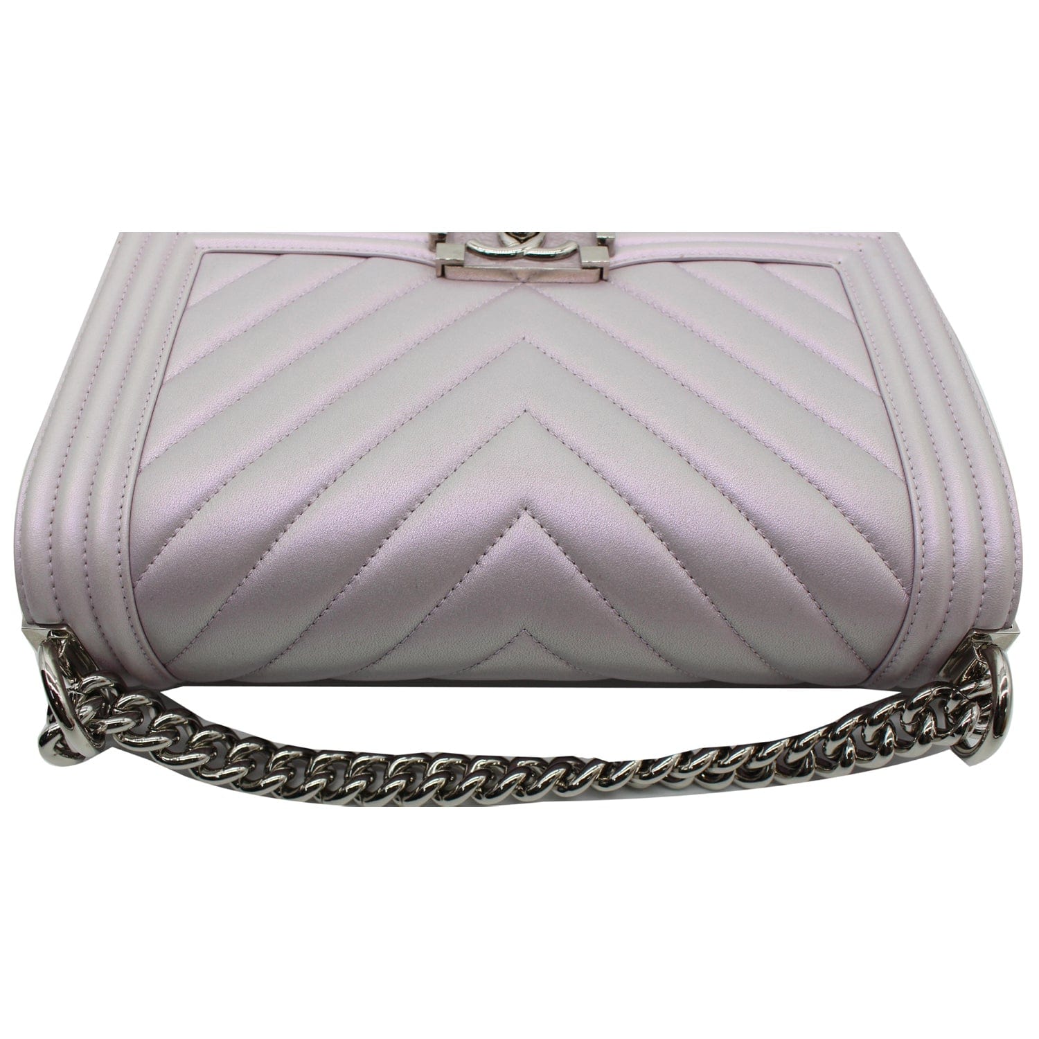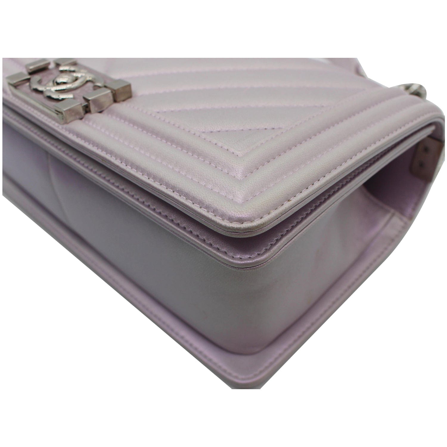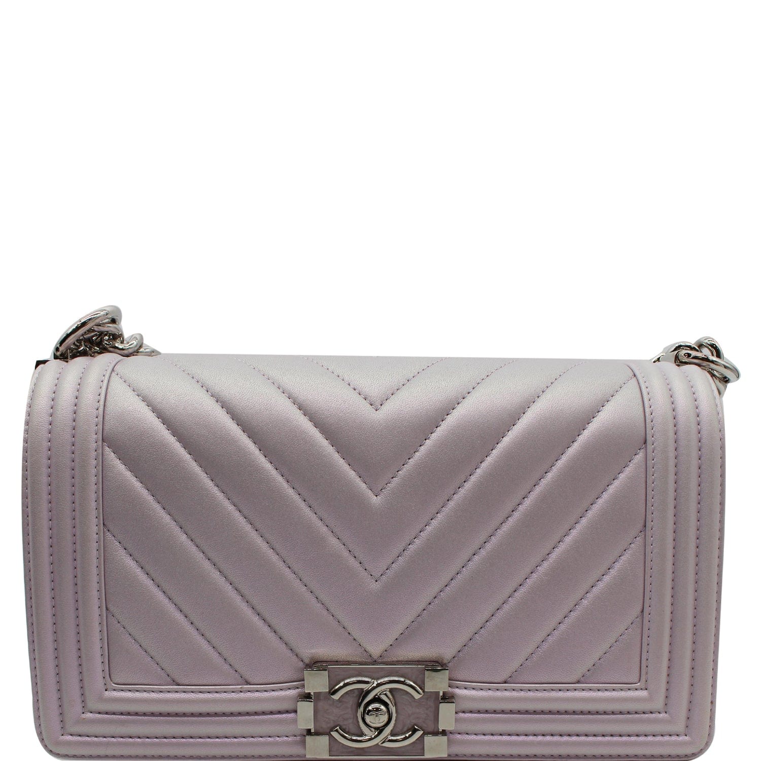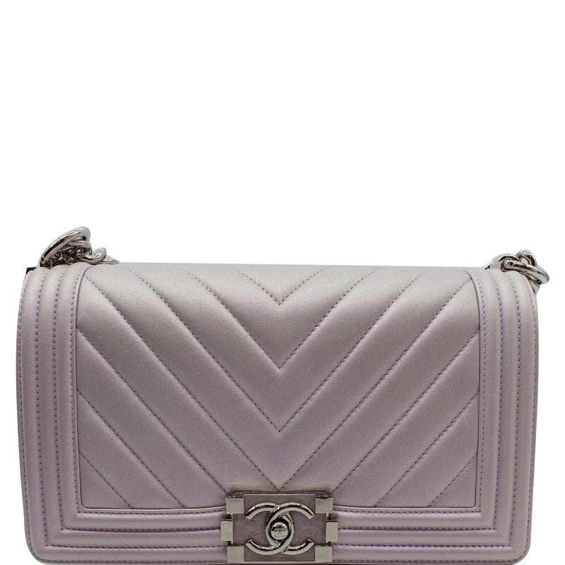 CHANEL Medium Boy Flap Chevron Leather Shoulder Bag Iridescent Lilac